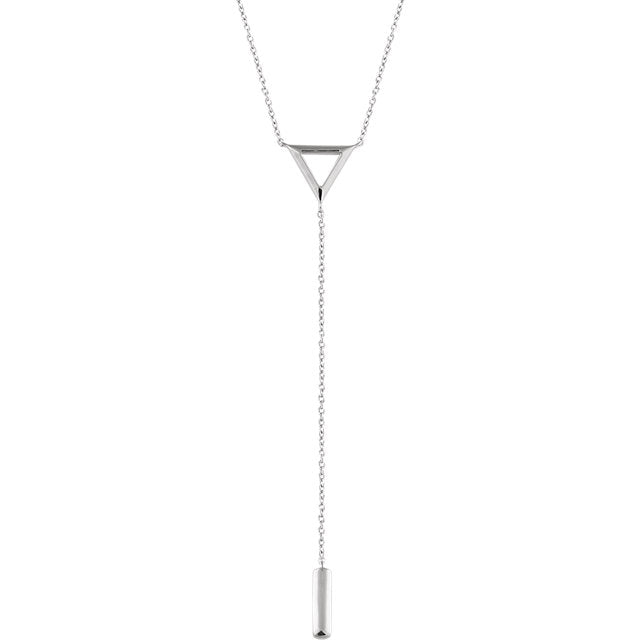 14K white gold triangle + bar "Y" lariat style necklace. Beautiful piece to layer with other necklaces!