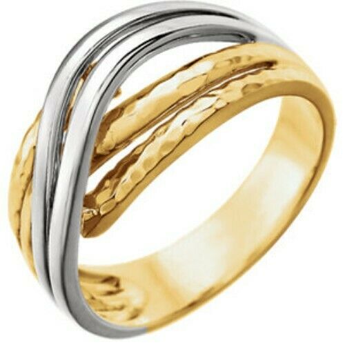 14KT white gold + yellow gold hammered domed ring. Wear this cool band with a mixture of gold colors!