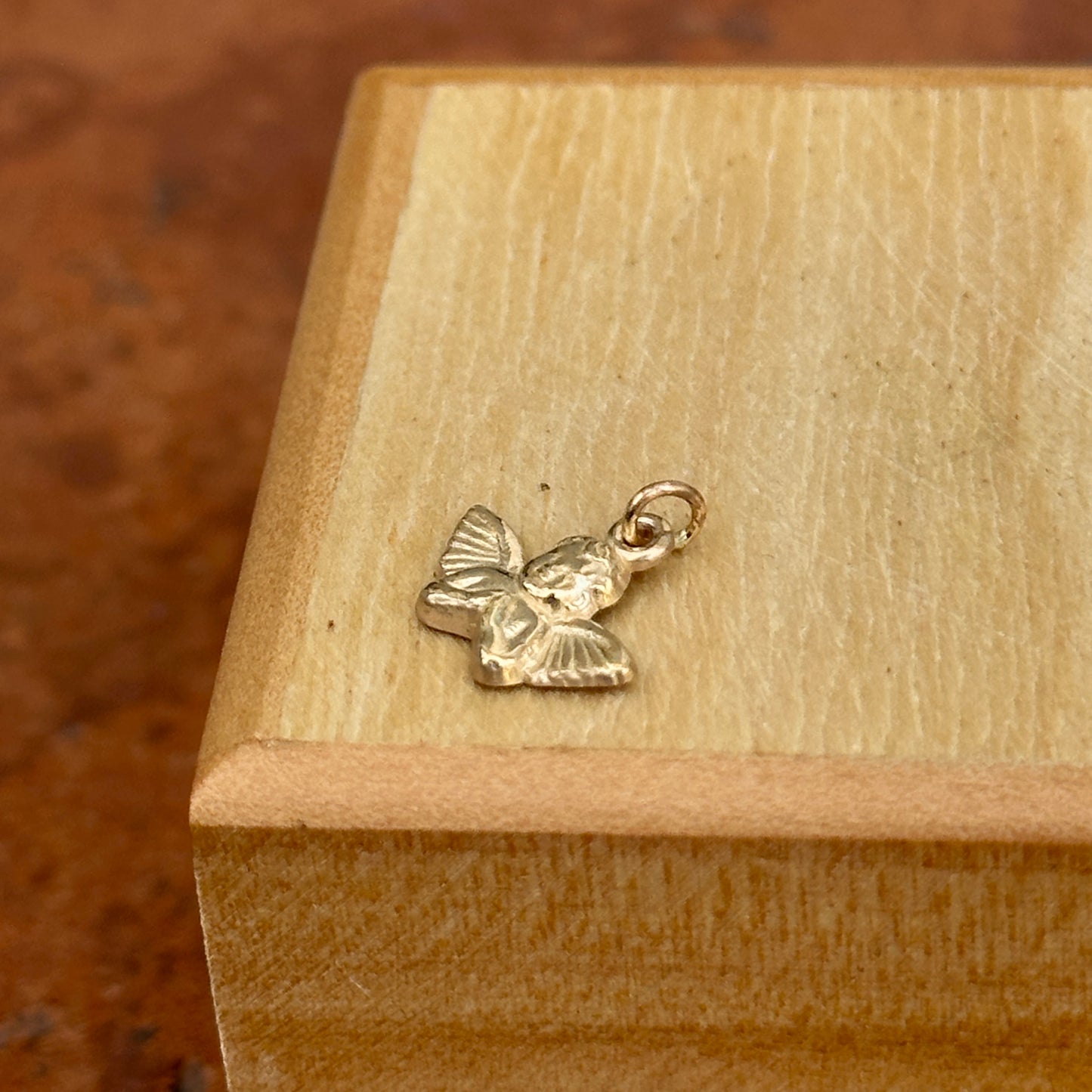 14KT yellow 2D Praying Hands Cherub Baby Angel Pendant Charm