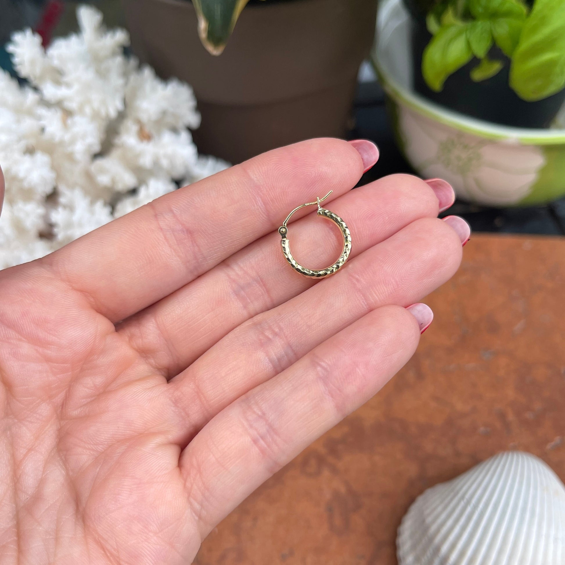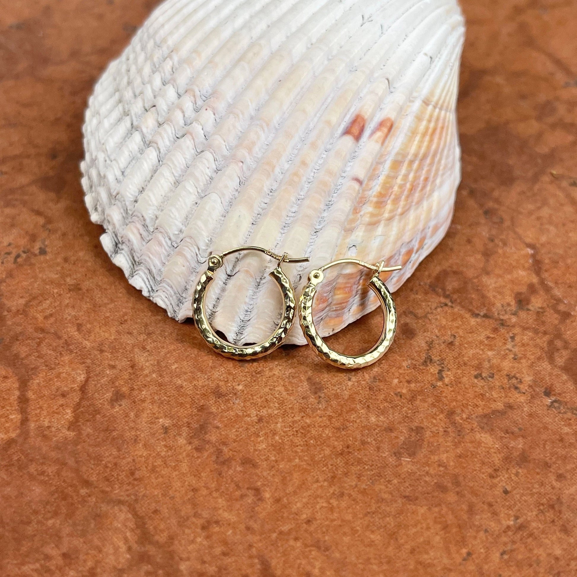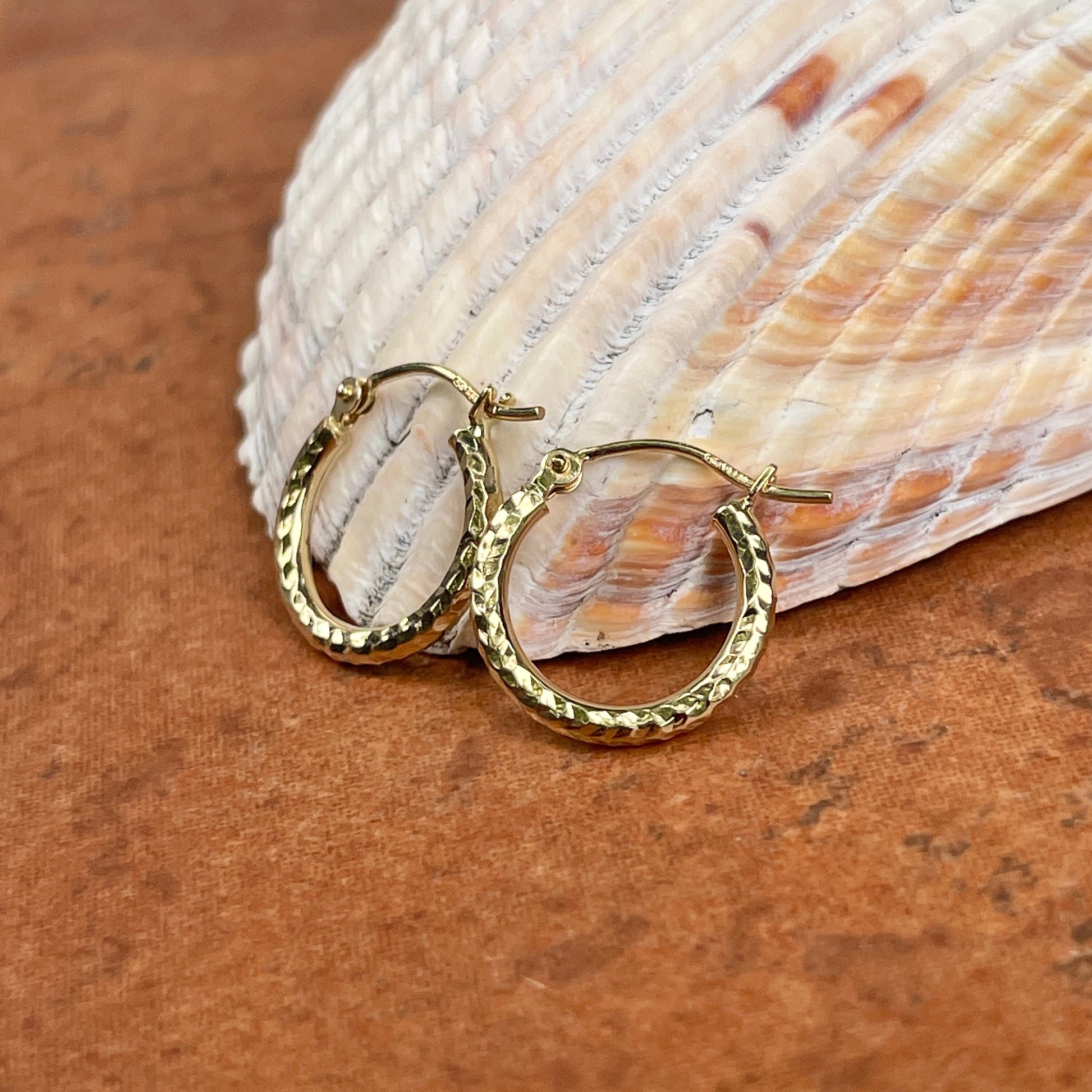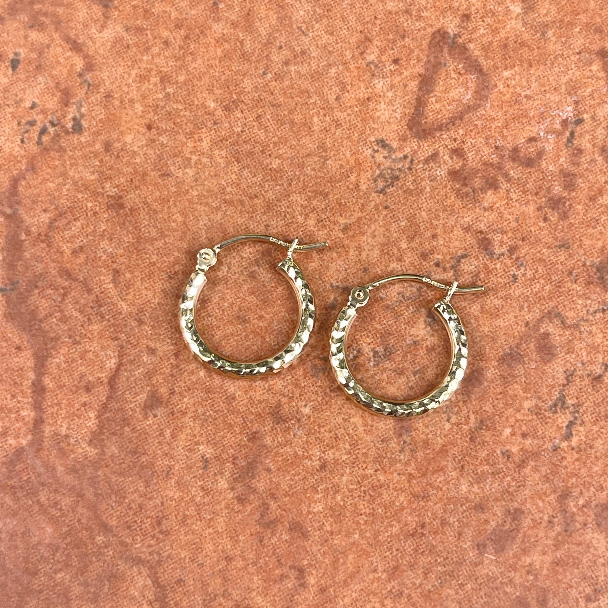 14KT Yellow Gold Diamond-Cut Finish Hoop Earrings