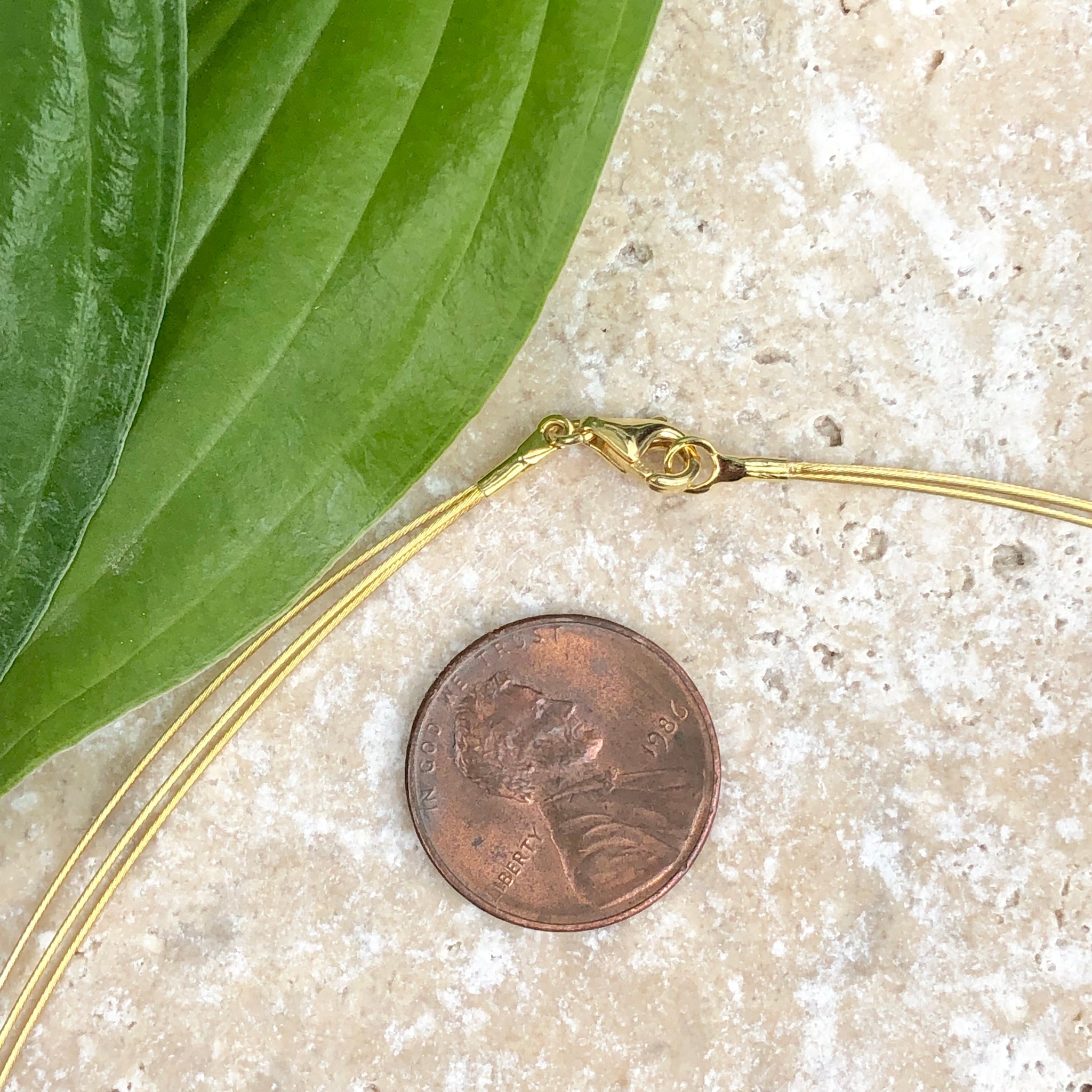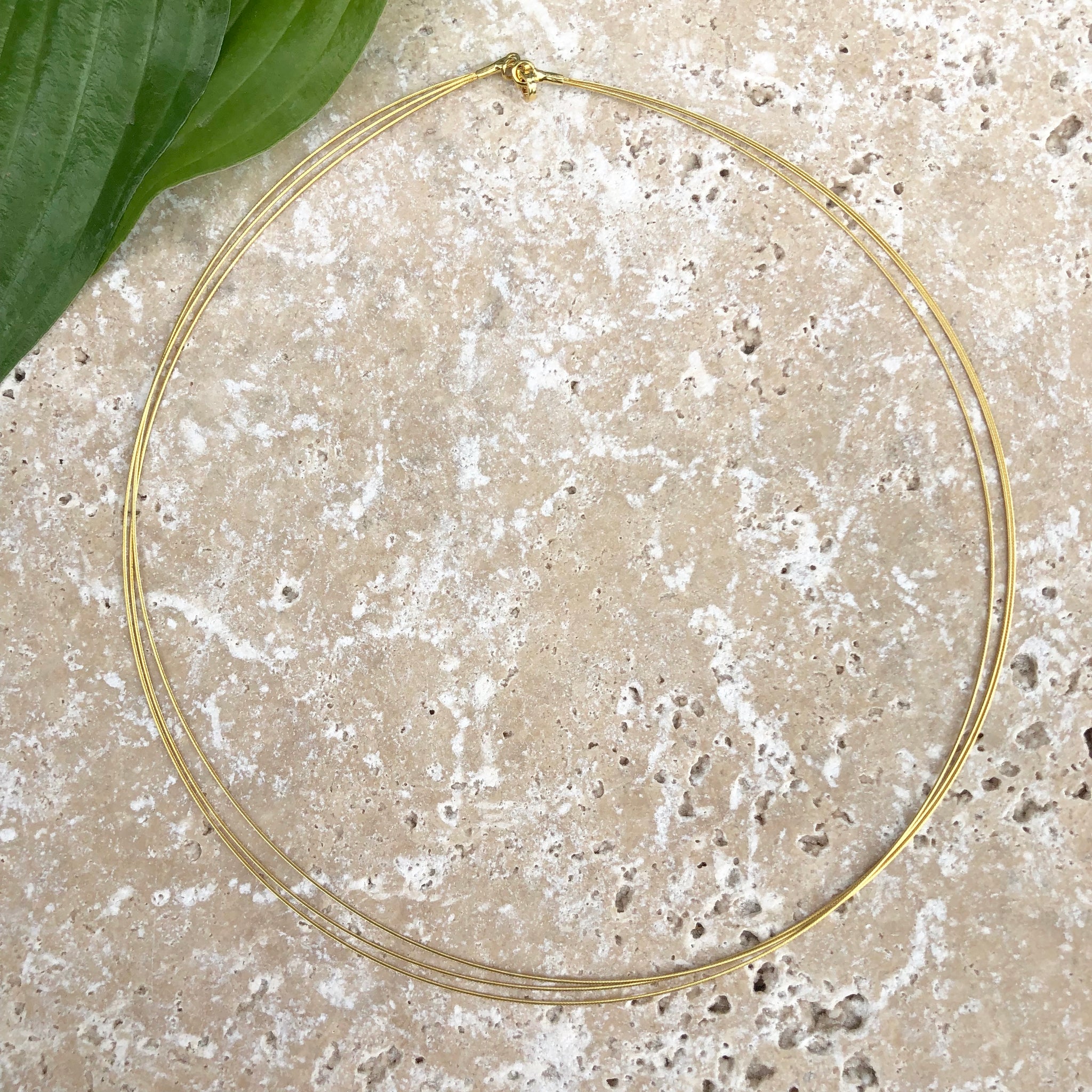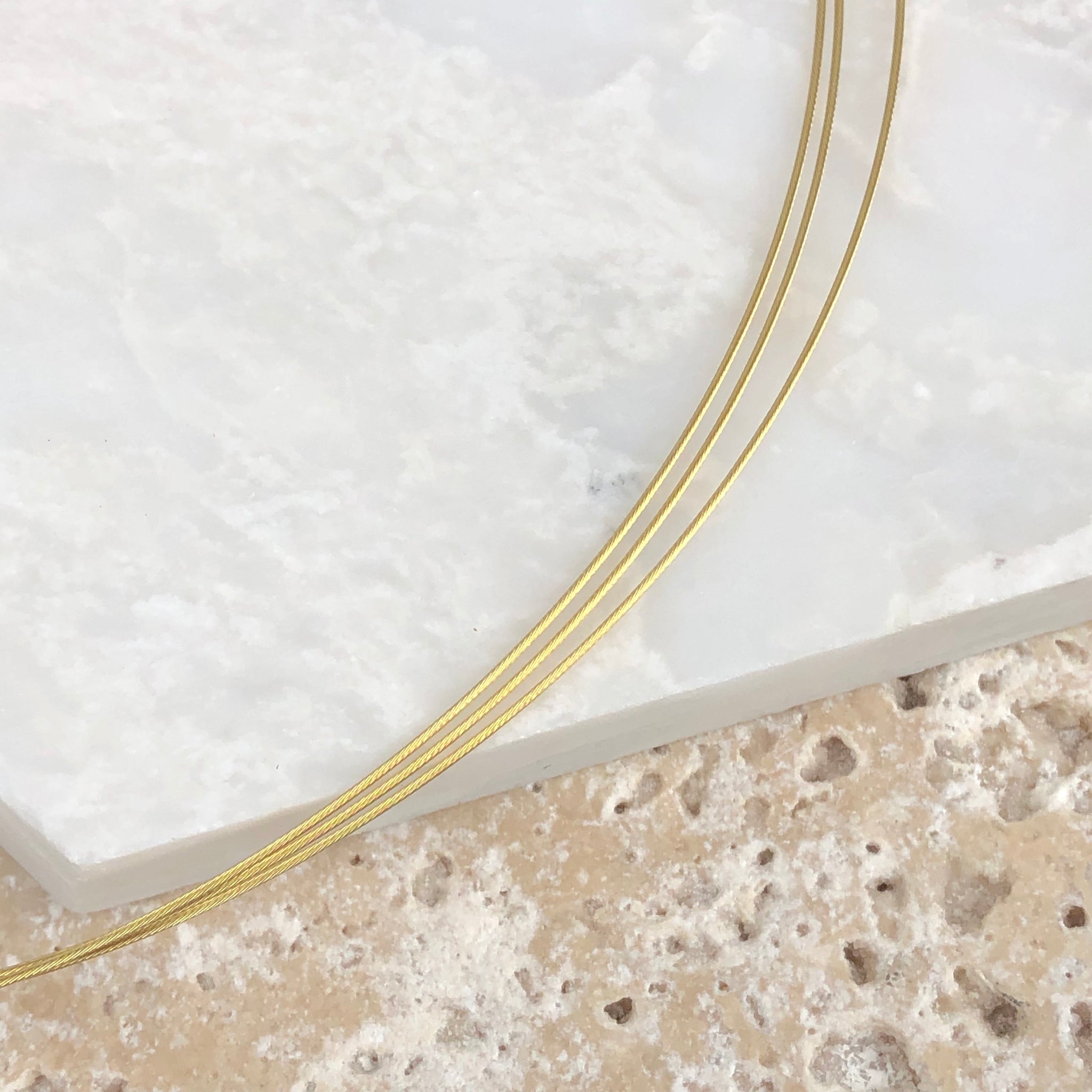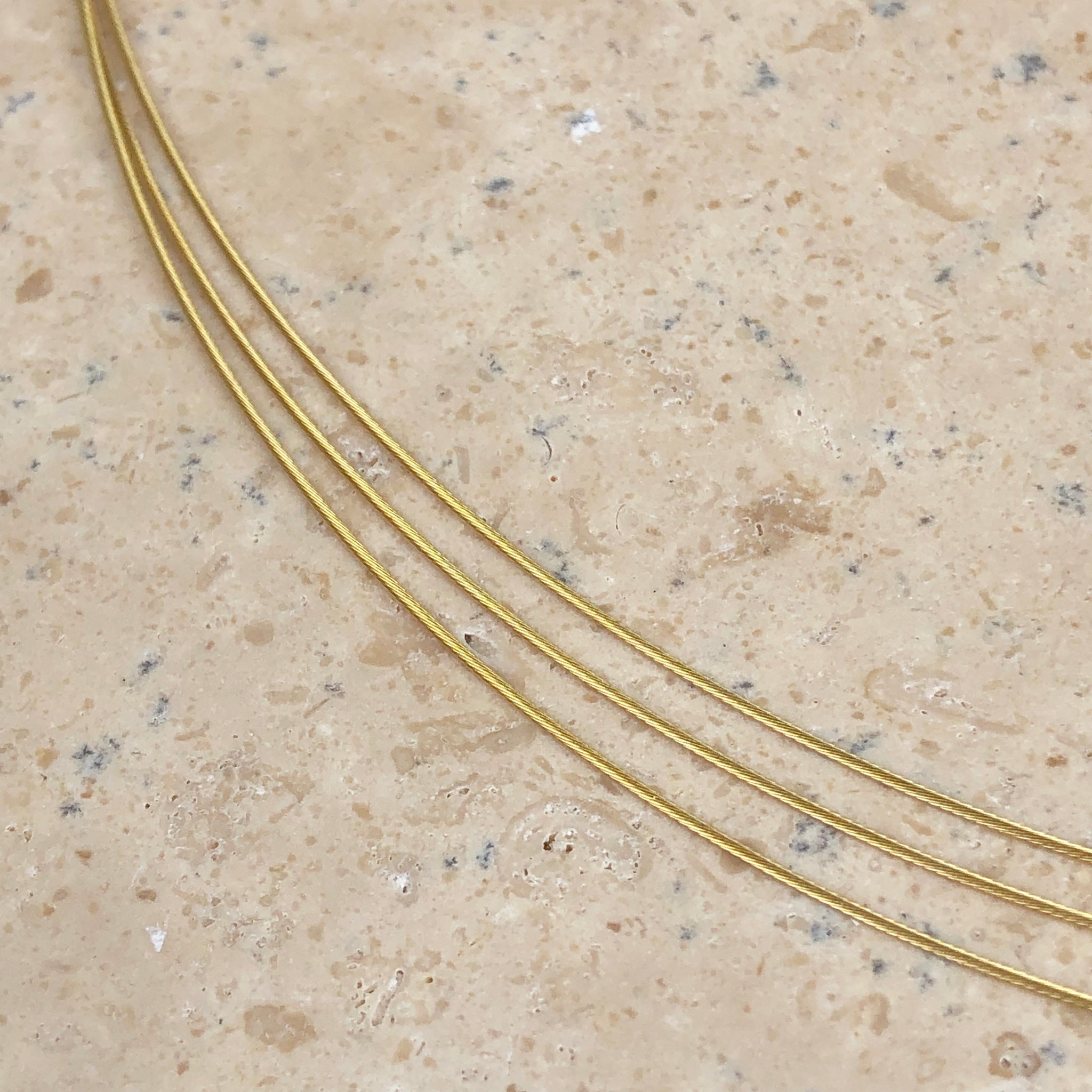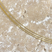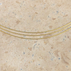 14KT yellow gold 3-strand cable wire collar necklace. Add on your favorite pendant to this neck wire or simply wear alone for a light, wispy look!
