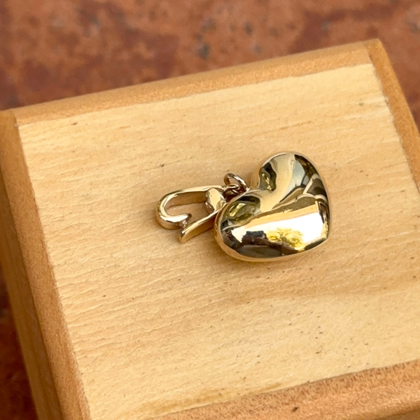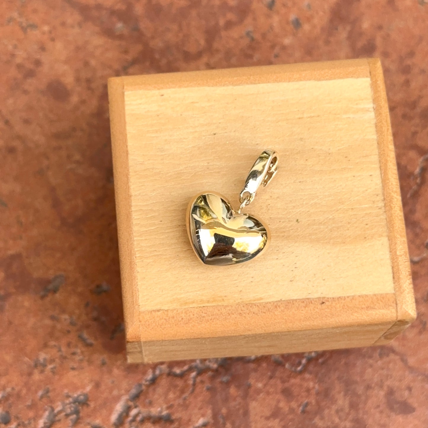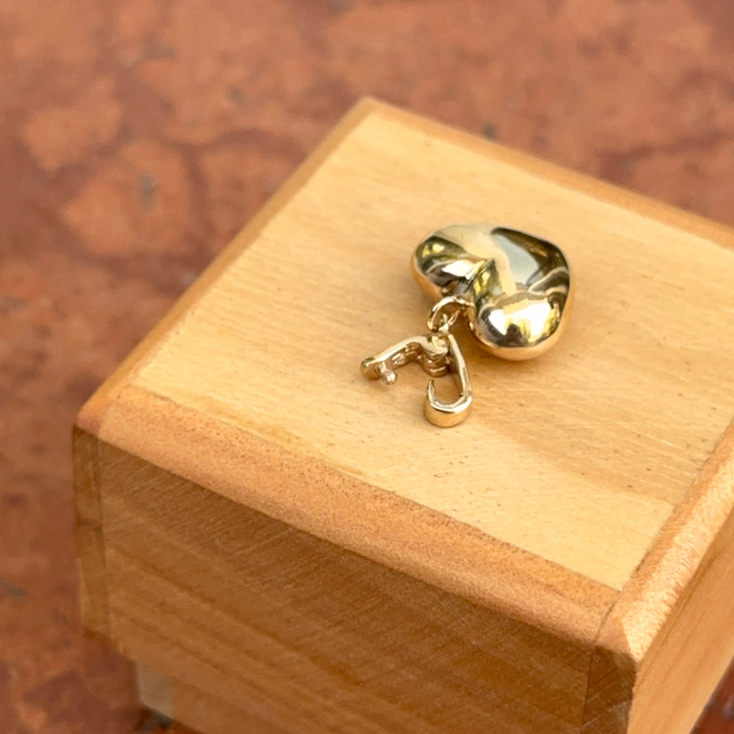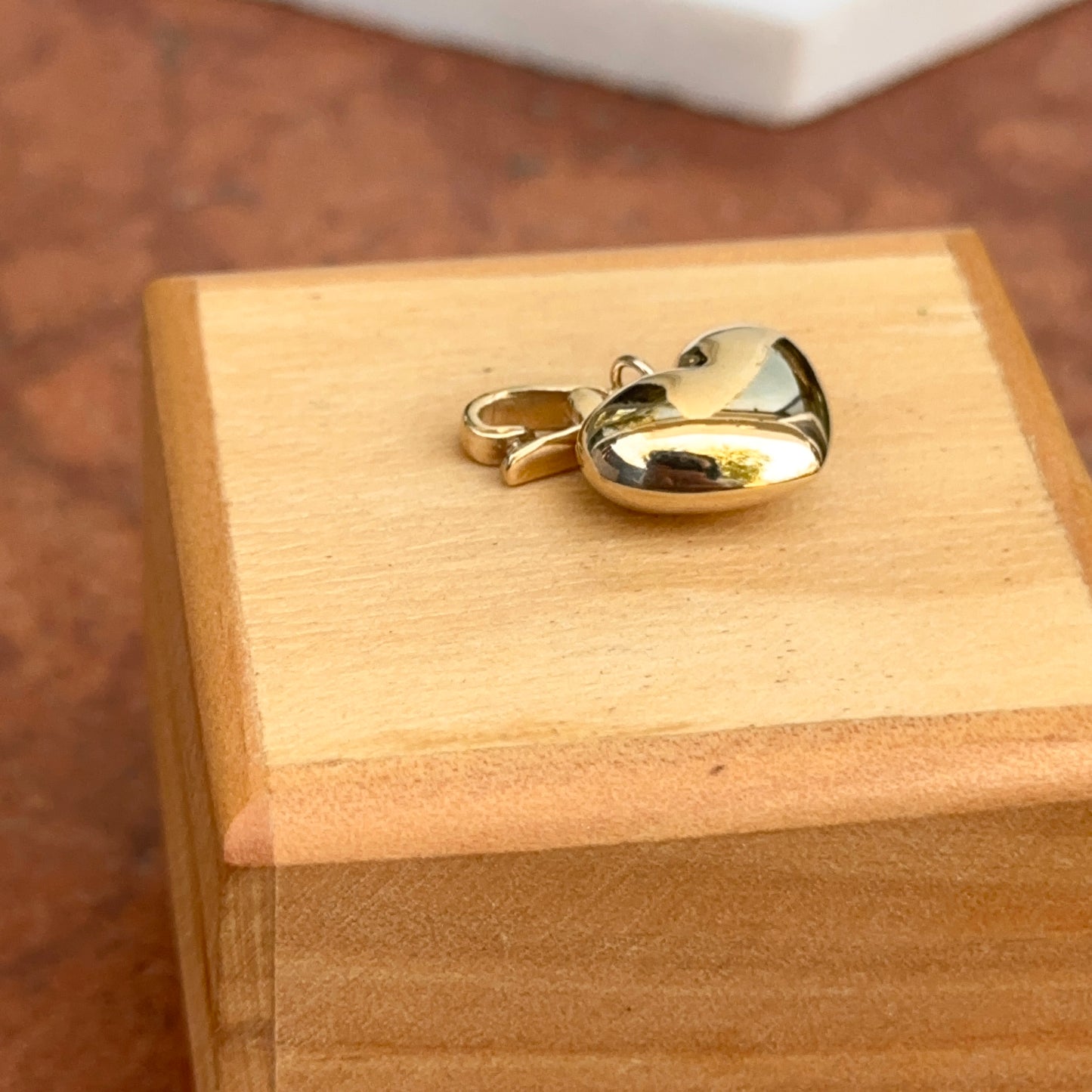 14KT Yellow Gold 3D Puffed Heart Clip On Pendant Charm 15mm