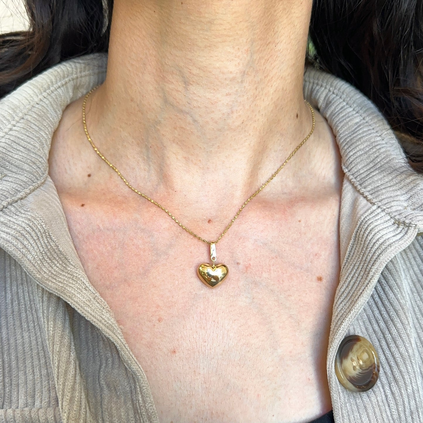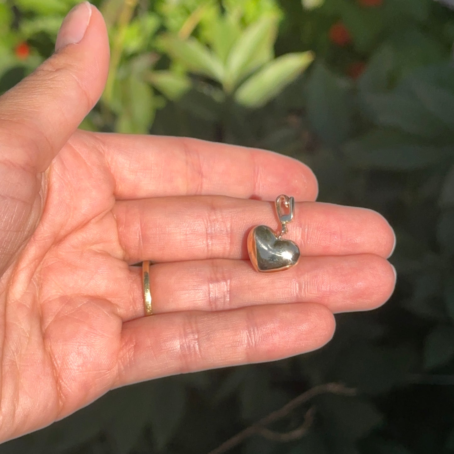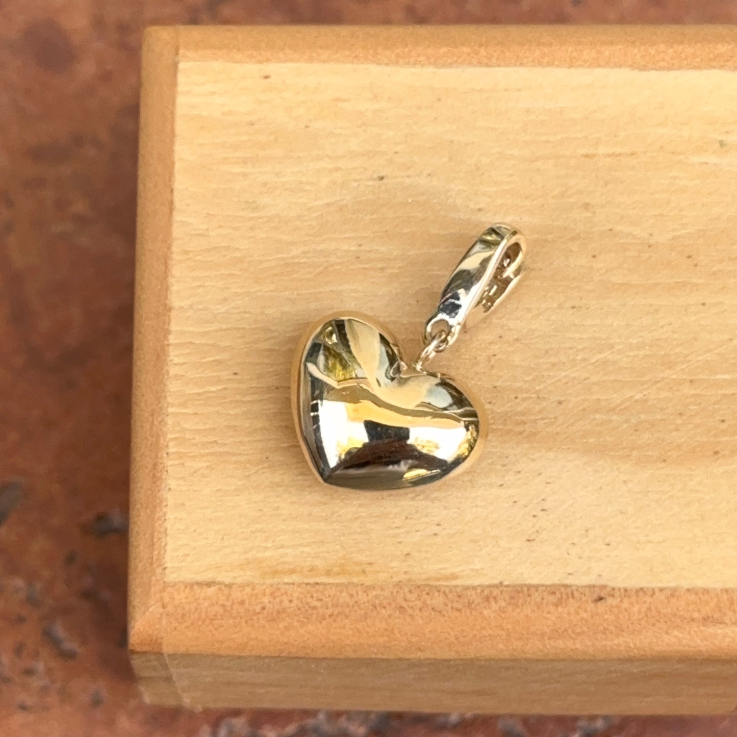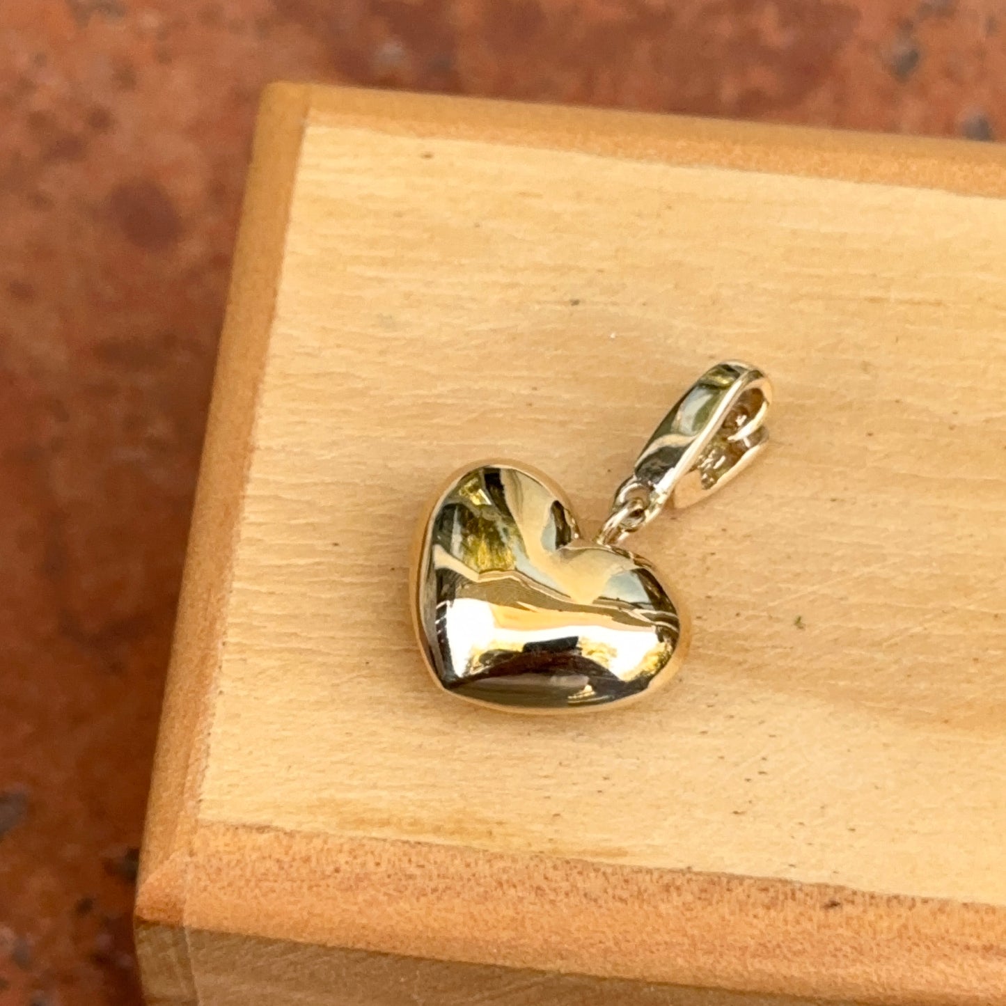 14KT Yellow Gold 3D Puffed Heart Clip On Pendant Charm 15mm
