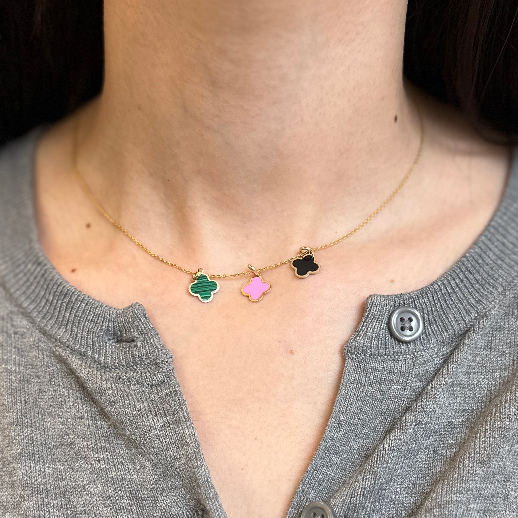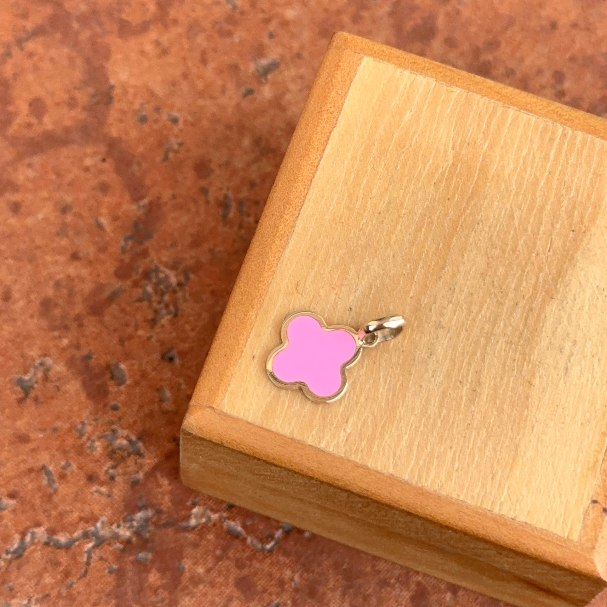 14KT Yellow Gold Pink Enamel Inlayed Irish Lucky Charm 4-Leaf Clover Charm/Pendant