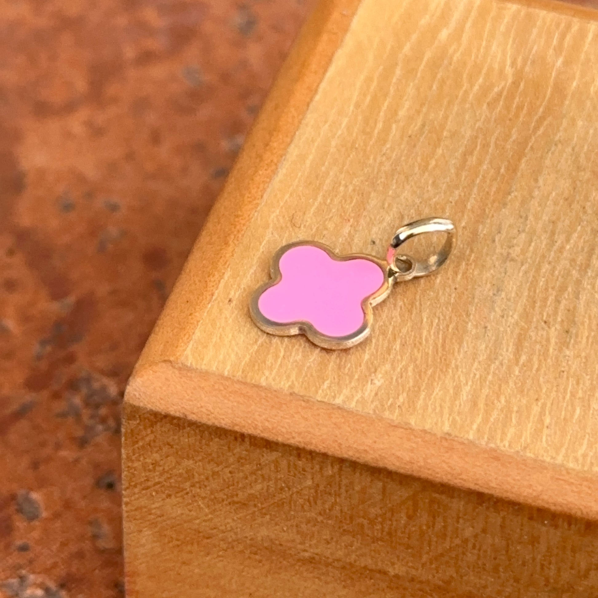 14KT Yellow Gold 4-Leaf Dark Pink Enamel Inlay Clover Pendant Charm 10mm