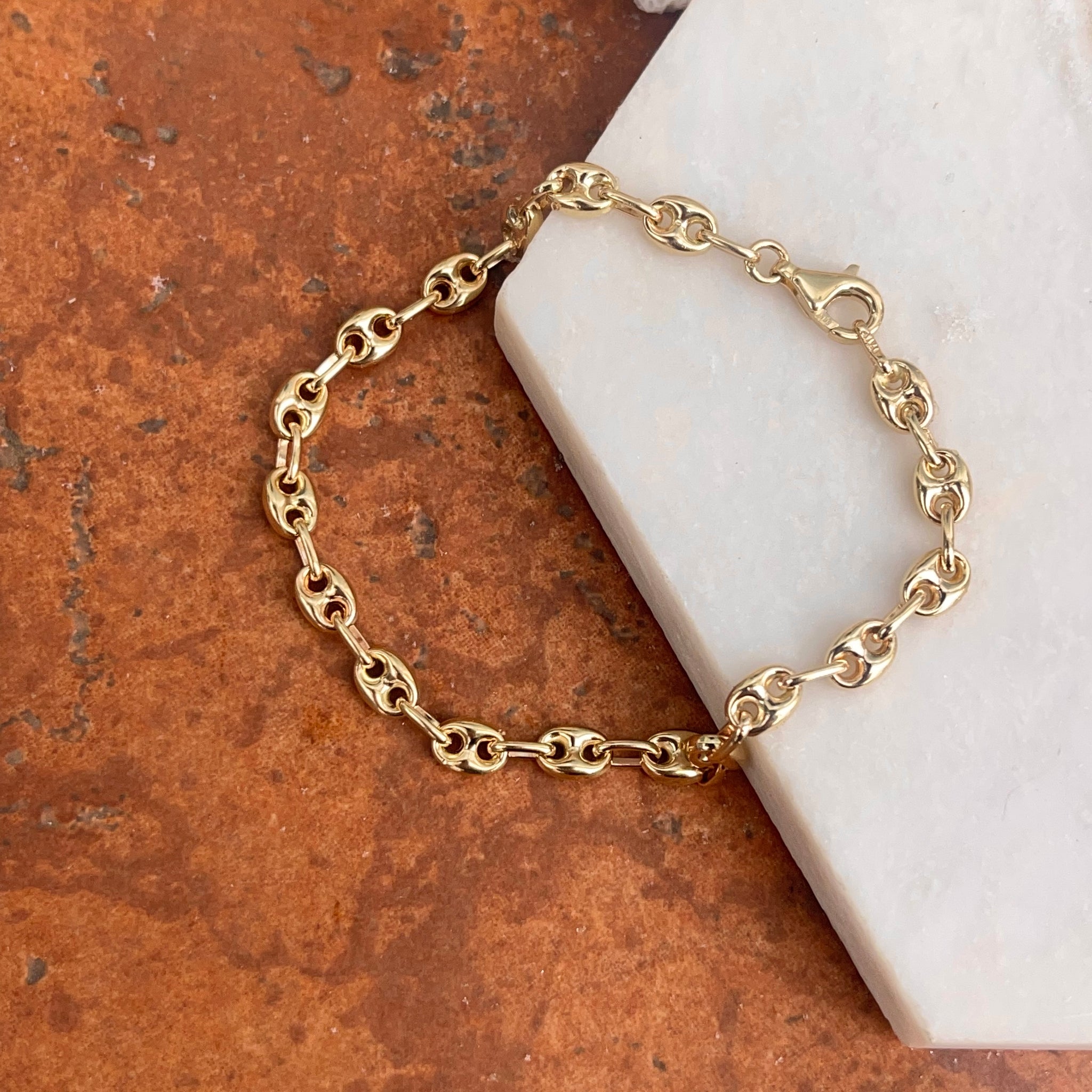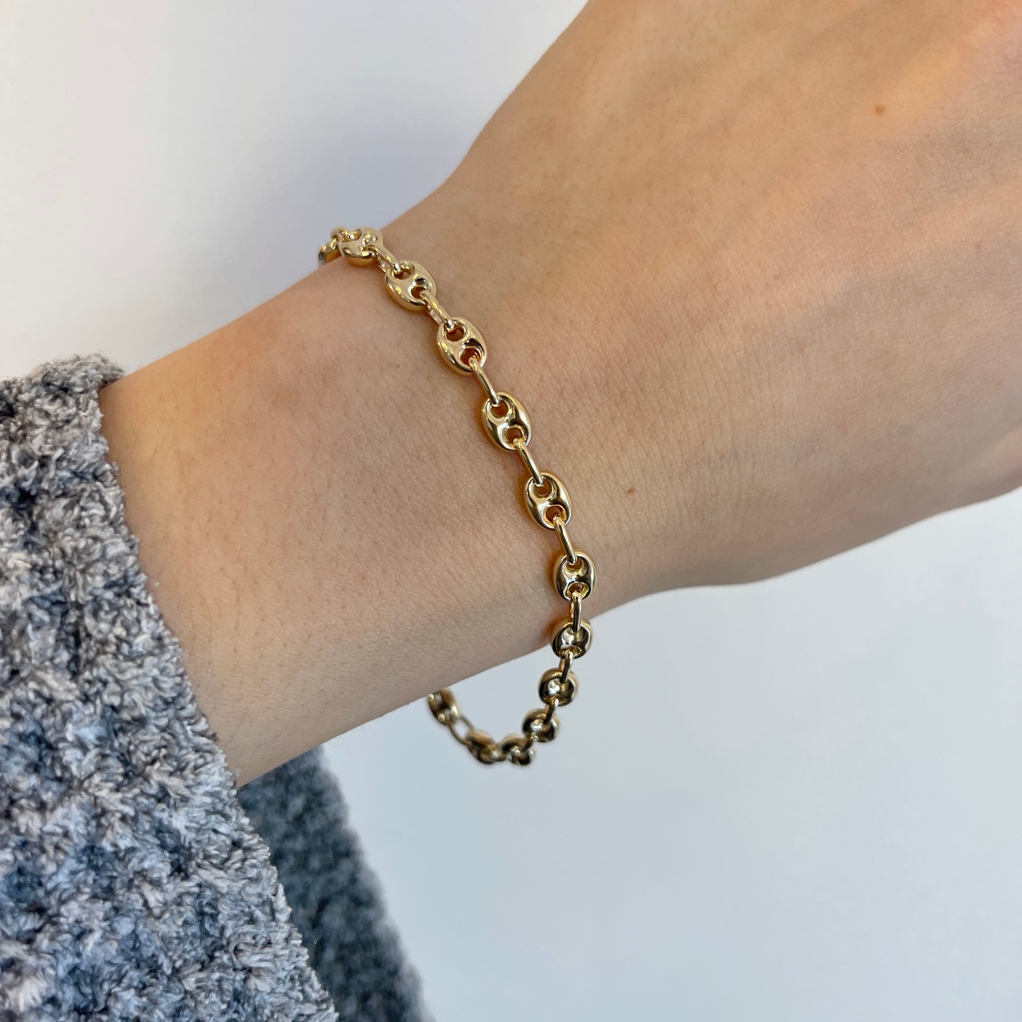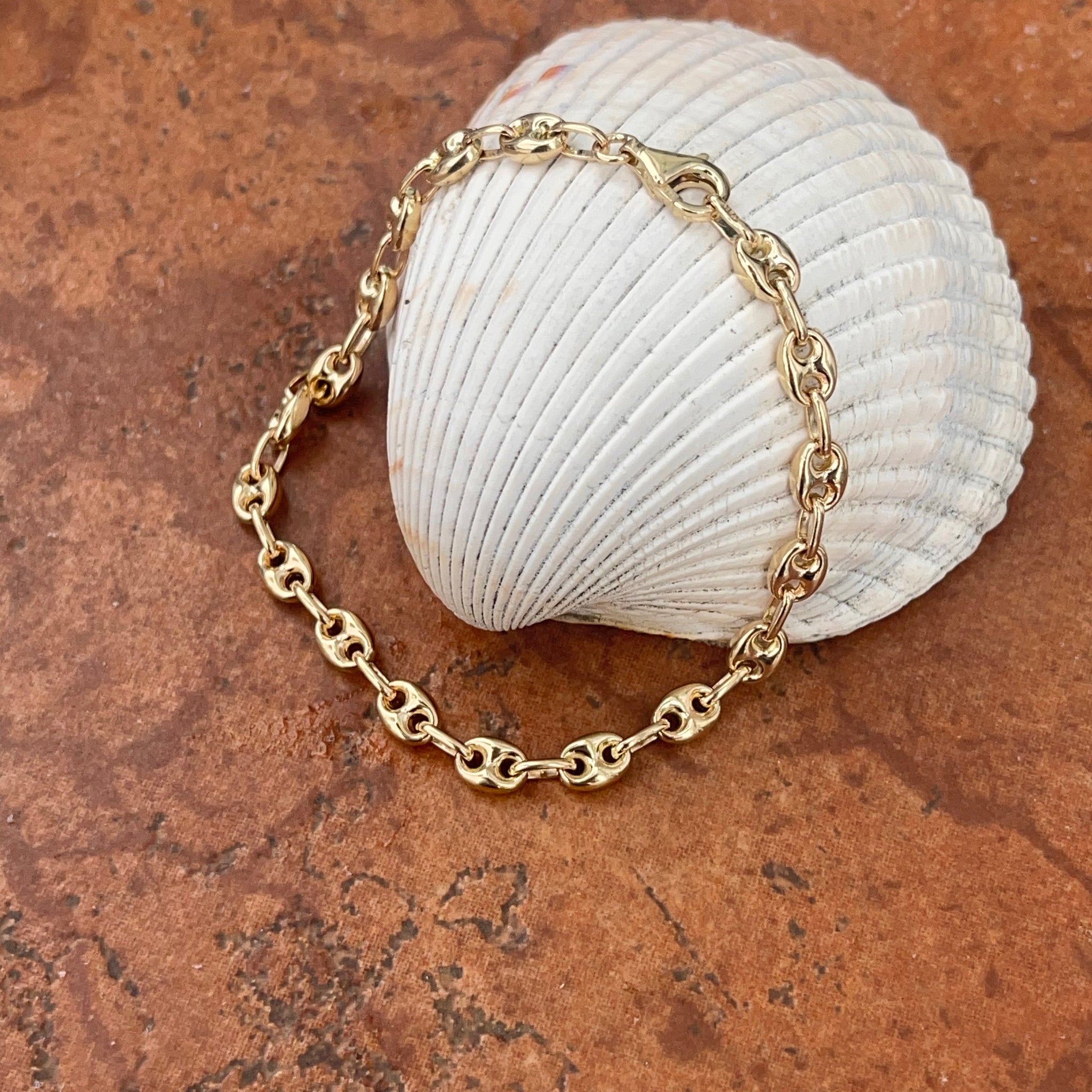 14KT Yellow Gold 5mm Puffed Anchor Mariner Chain Link Bracelet