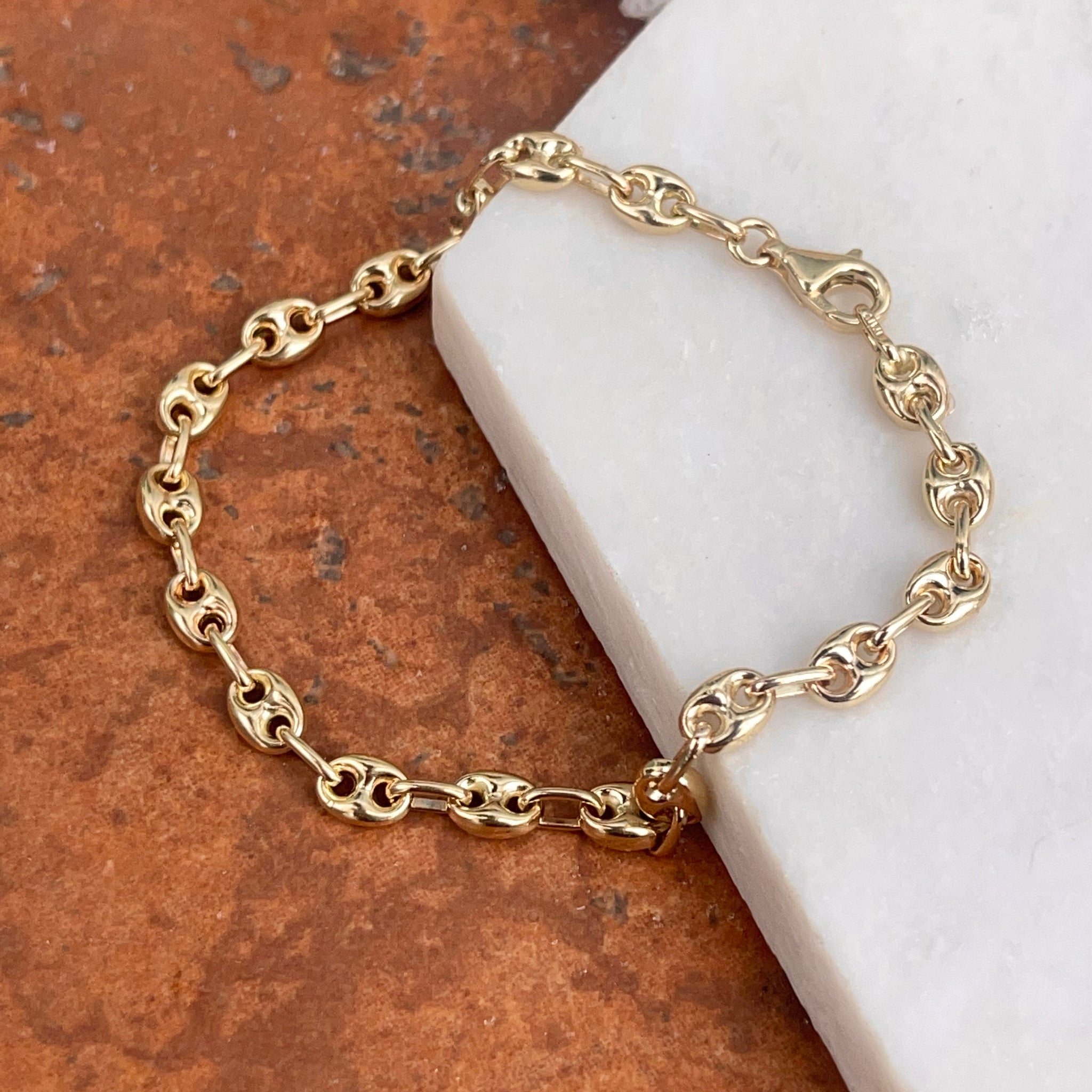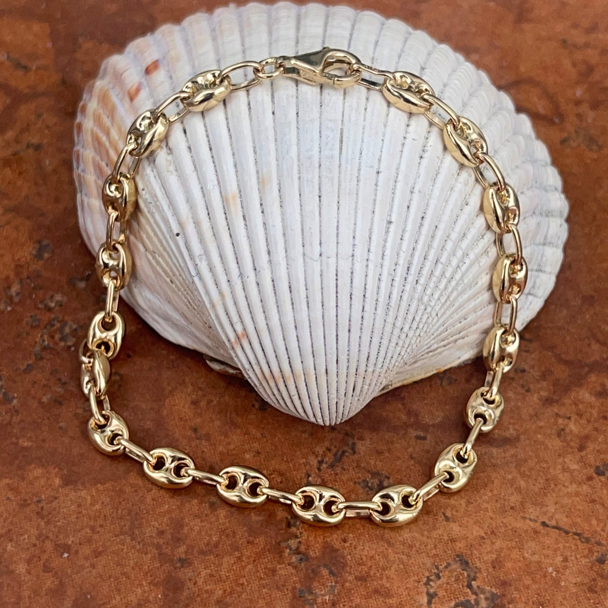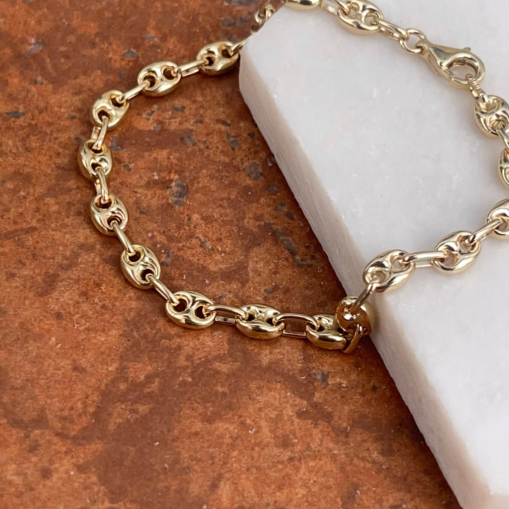 14KT Yellow Gold 5mm Puffed Anchor Mariner Chain Link Bracelet