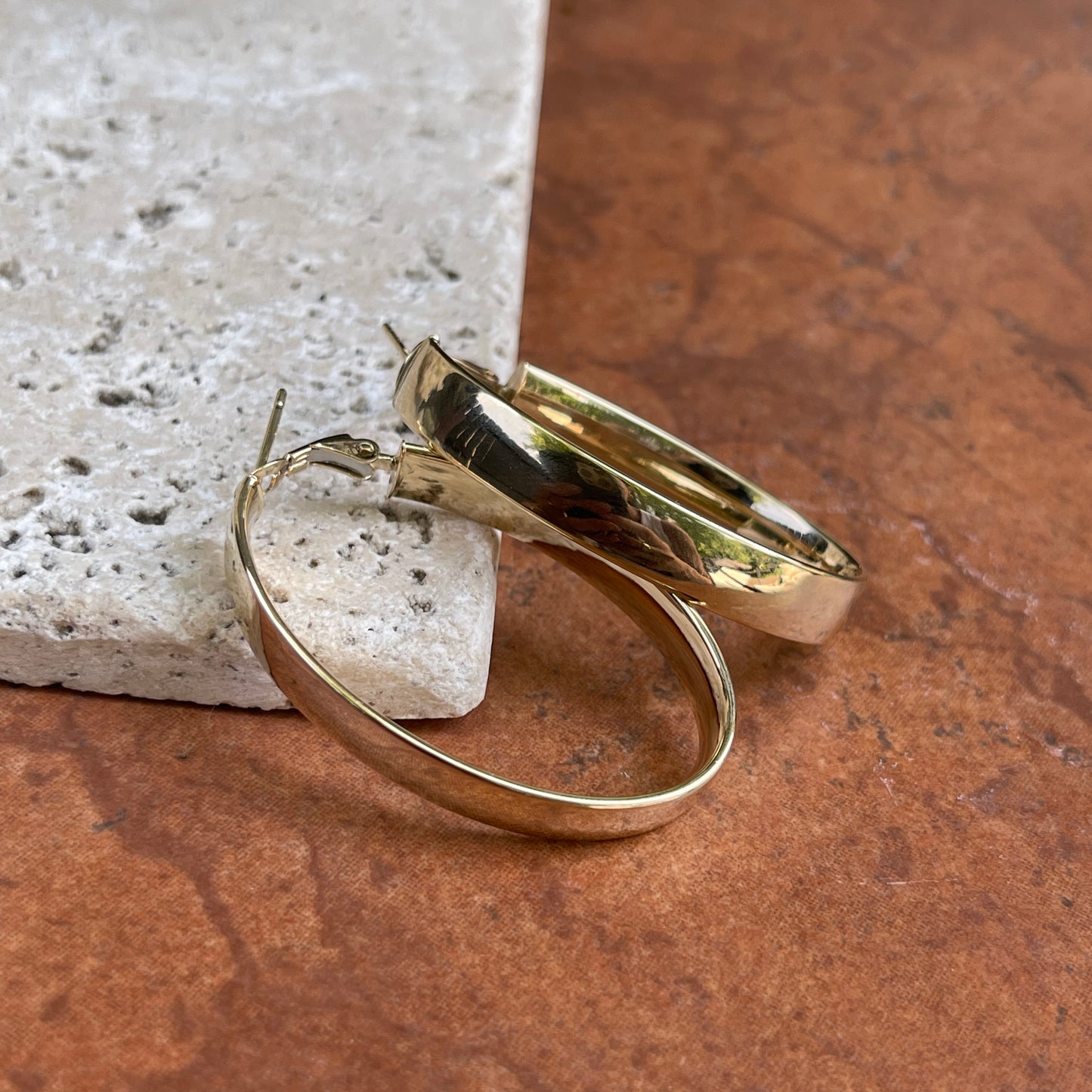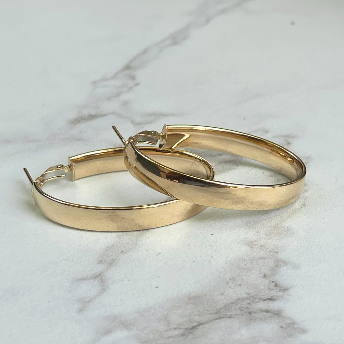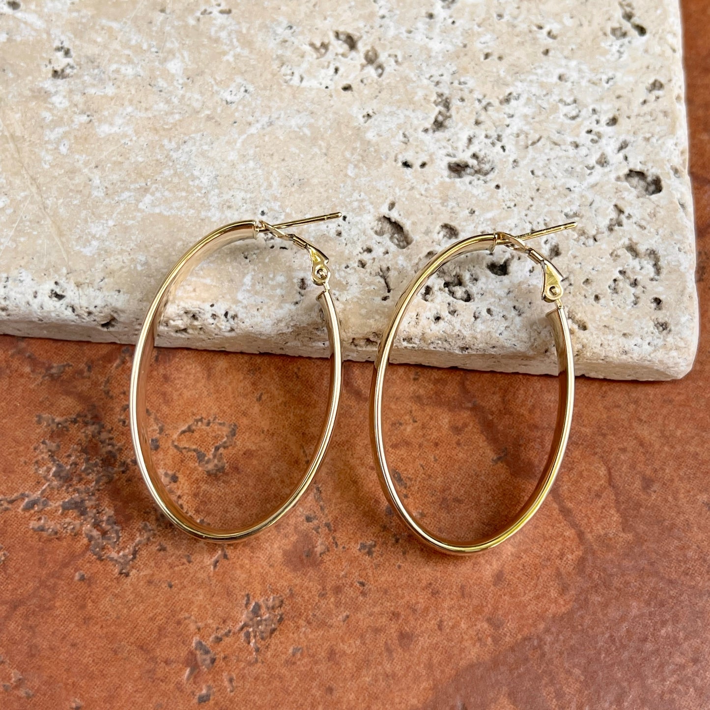 14KT Yellow Gold 7mm Oval Large Hoop Earrings 43mm