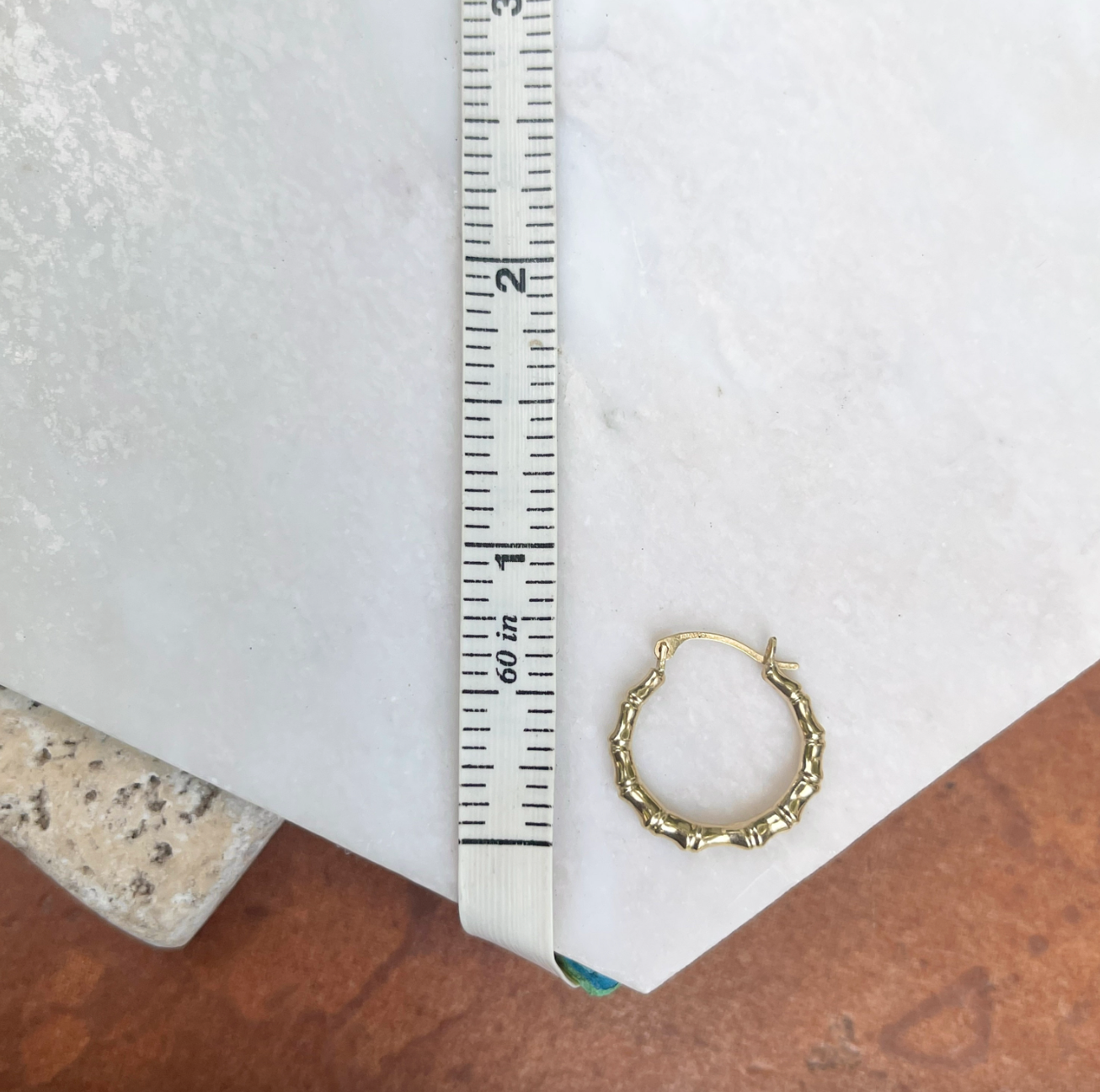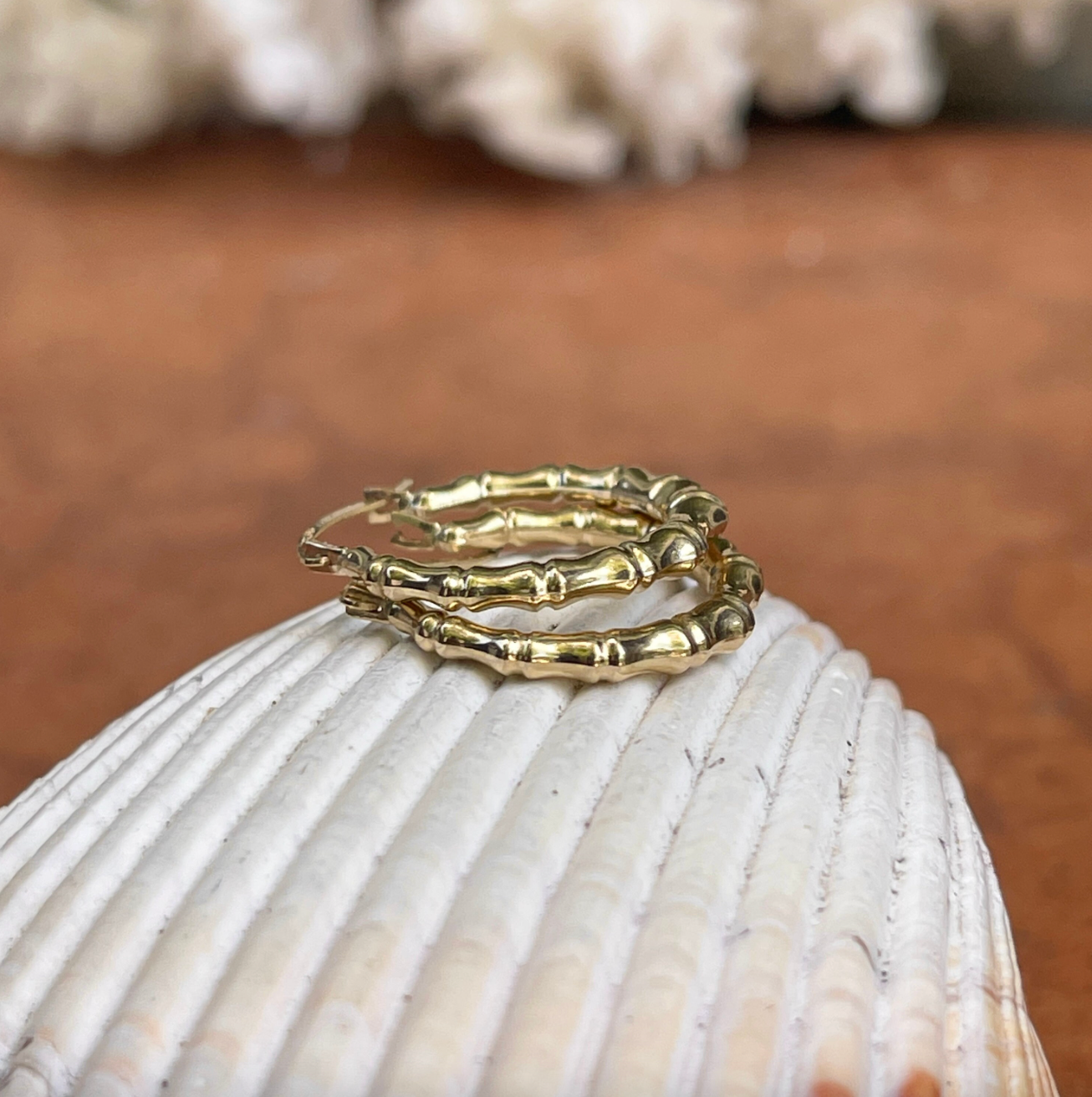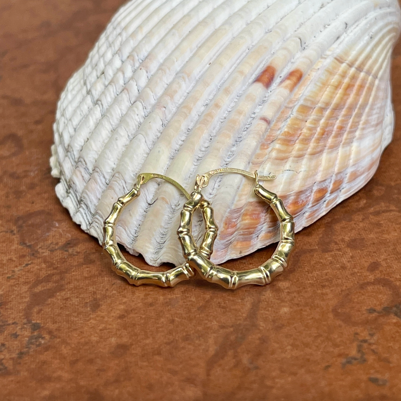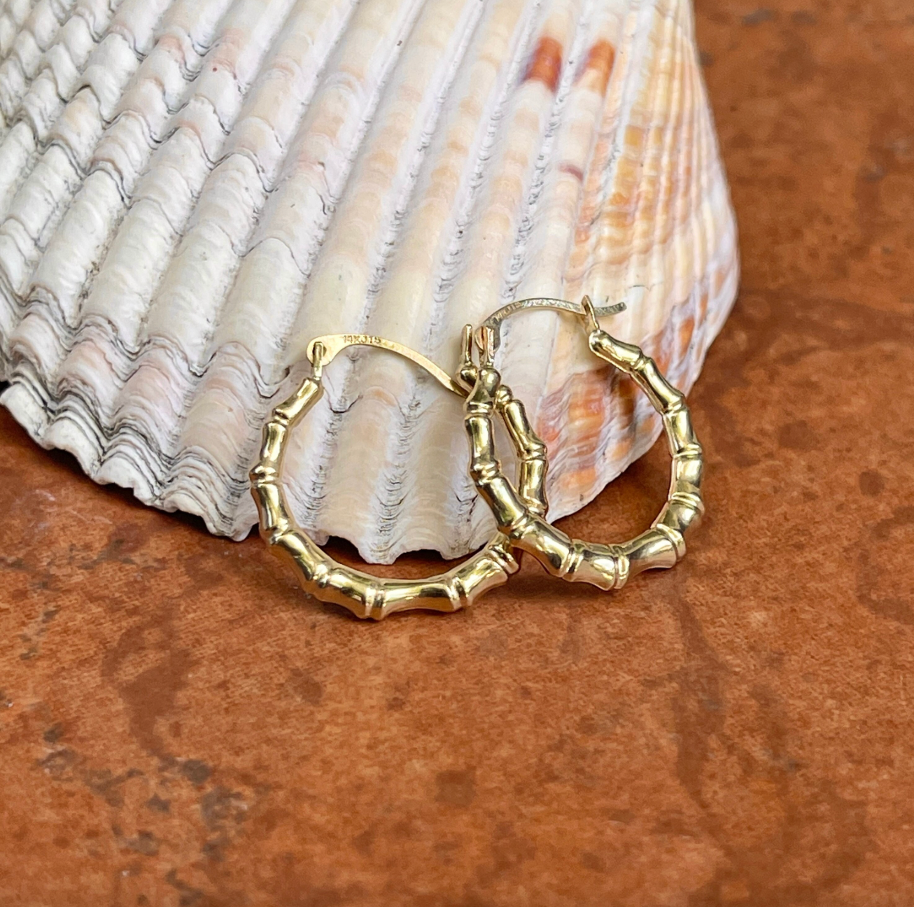 14KT Yellow Gold Bamboo Design Small Hoop Earrings