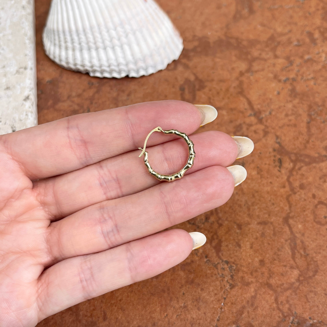 14KT Yellow Gold Bamboo Small Hoop Earrings