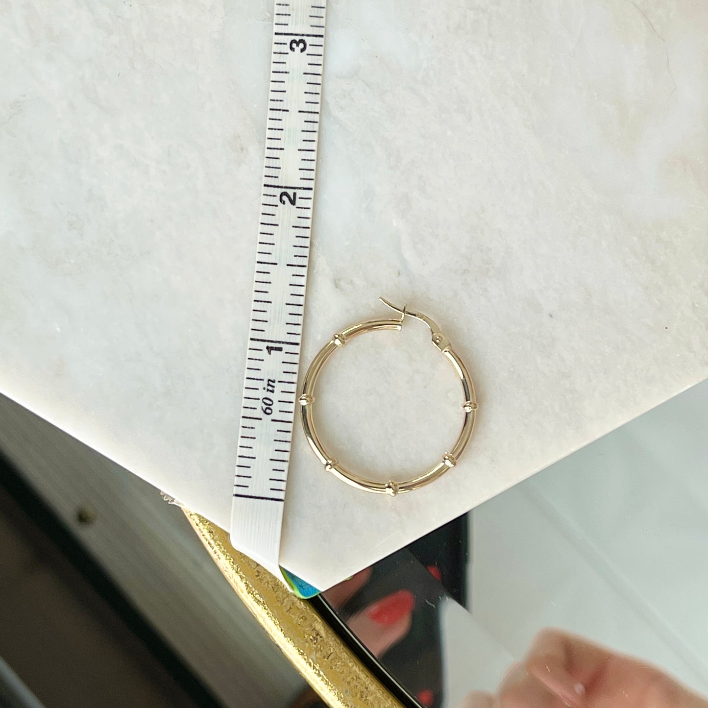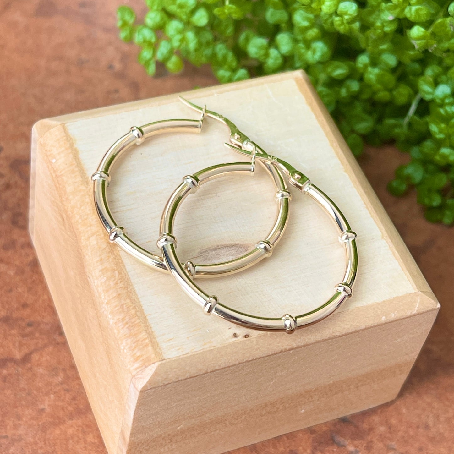 14KT Yellow Gold Bamboo Tube Hoop Earrings 28mm