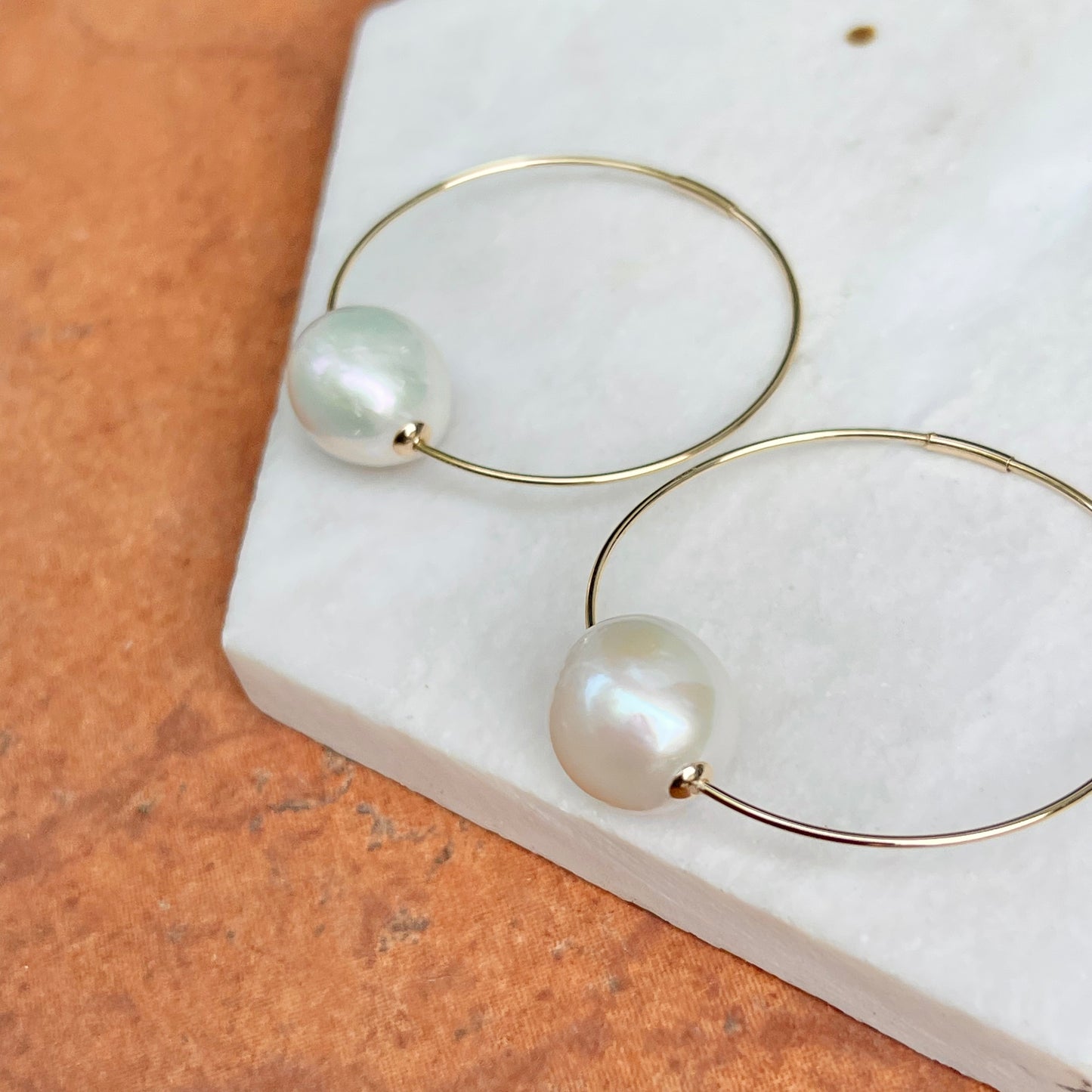 14KT Yellow Gold Baroque Pearl Endless Hoop Earrings 40mm