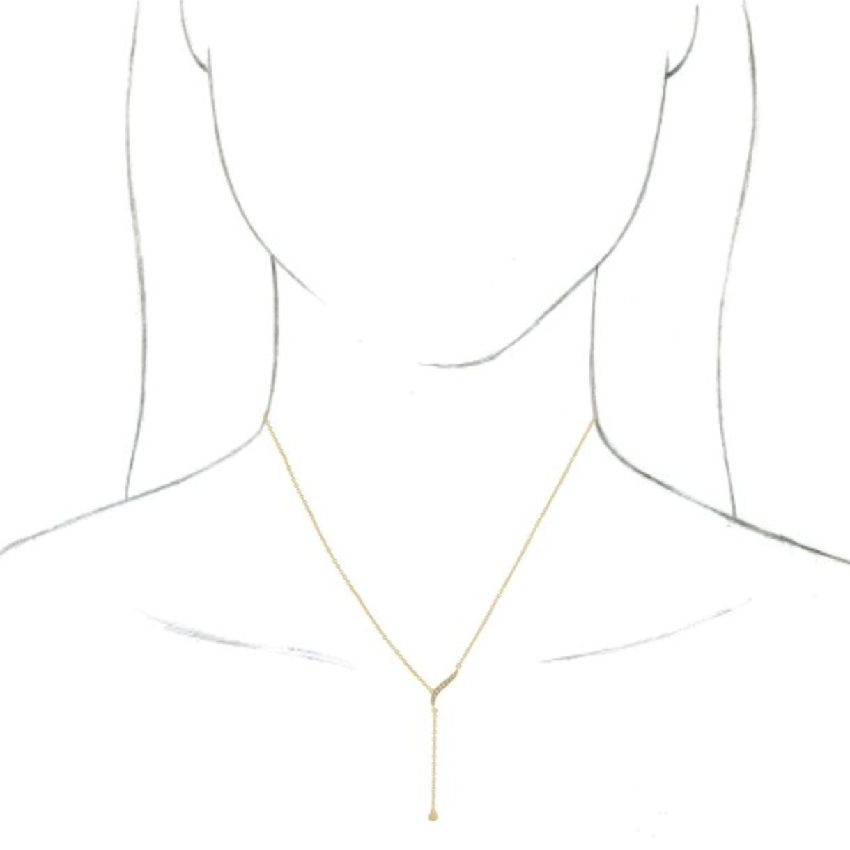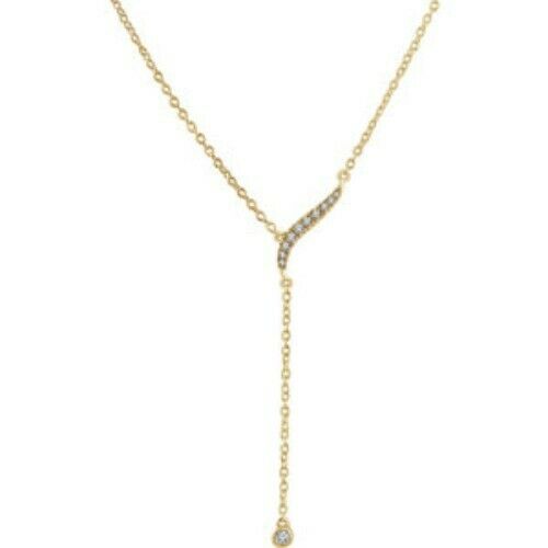 14KT Yellow Gold 1/10 CT Bezel Diamond Lariat Necklace