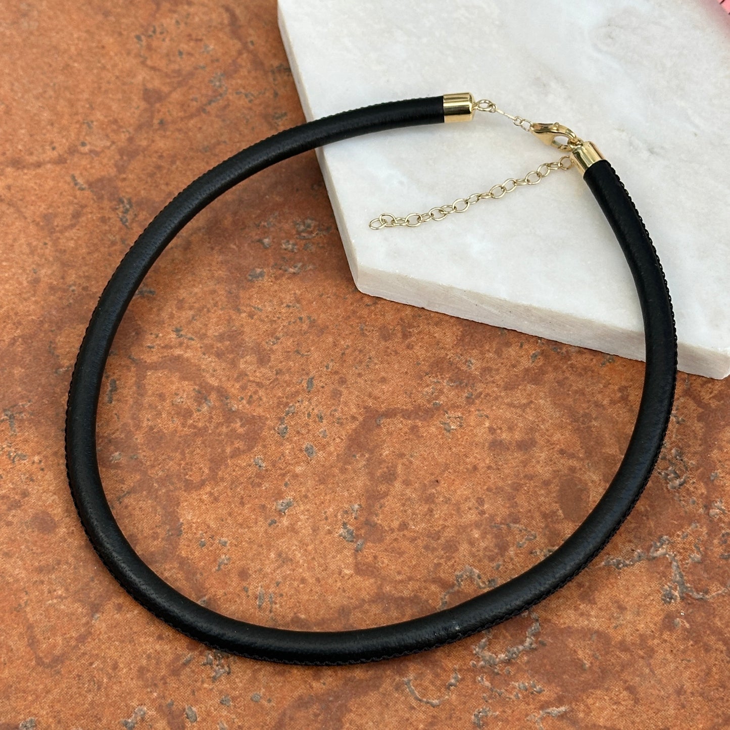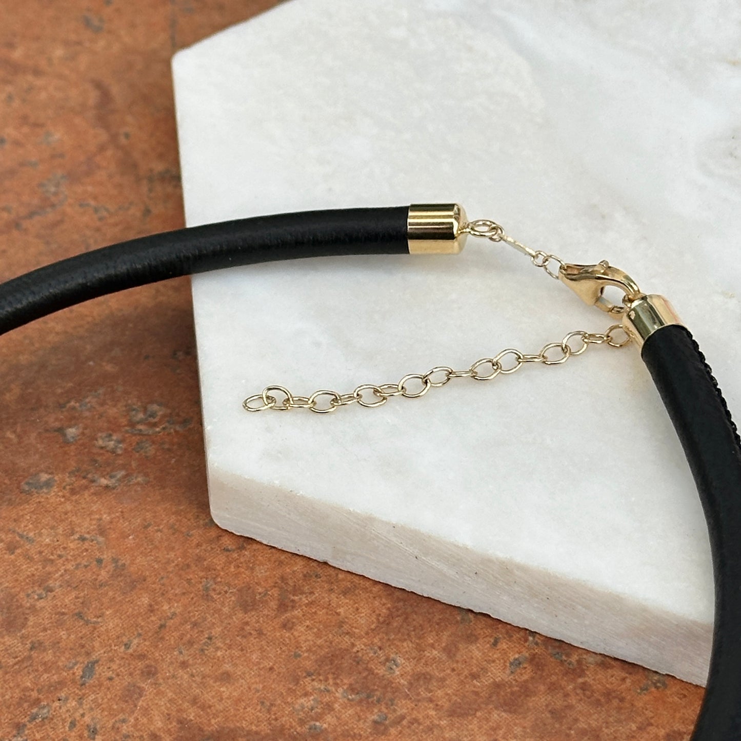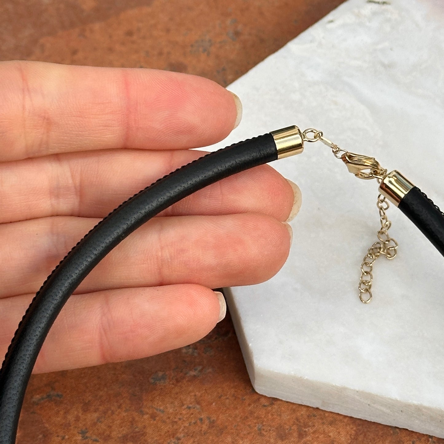14KT Yellow Gold 6mm Black Leather Cord Necklace