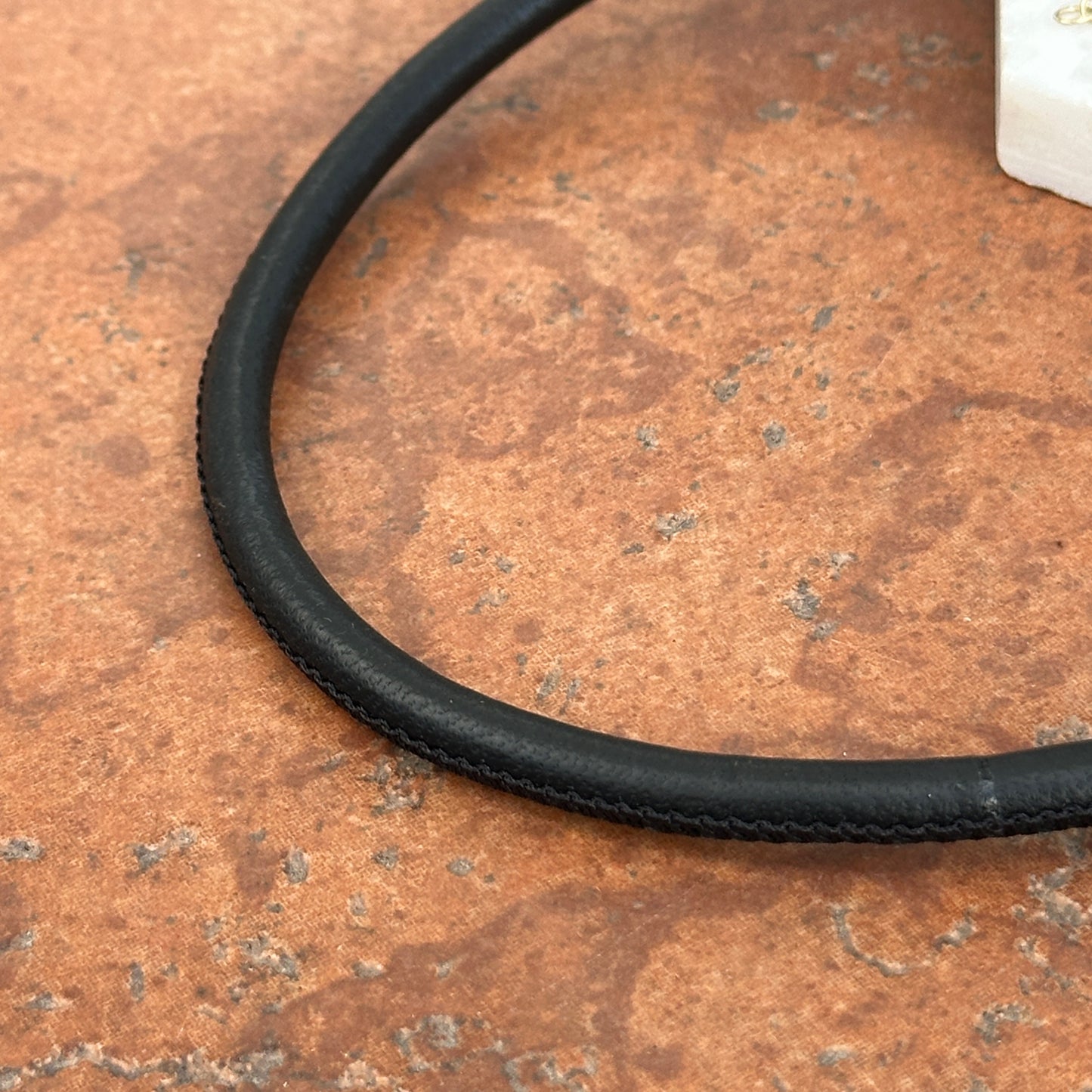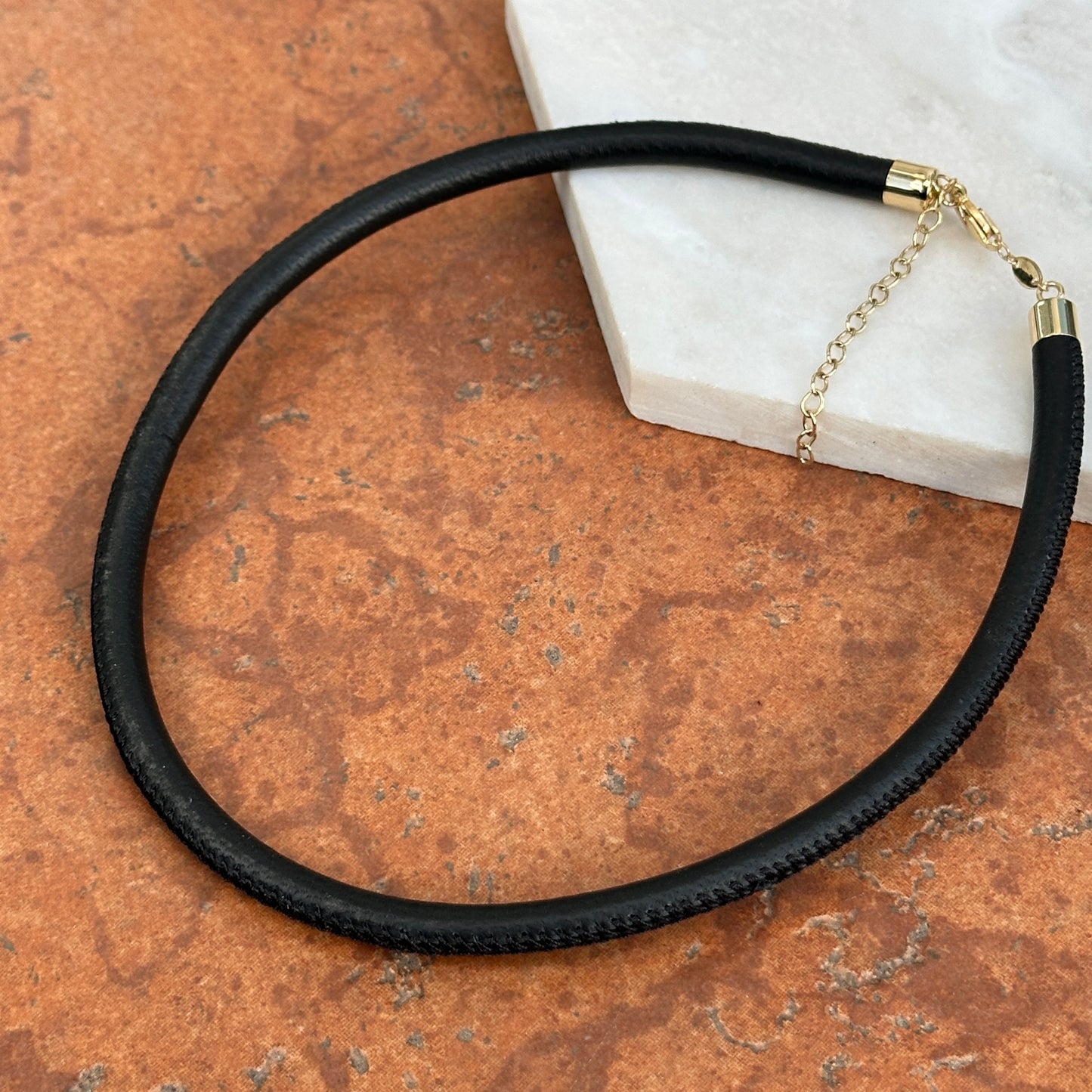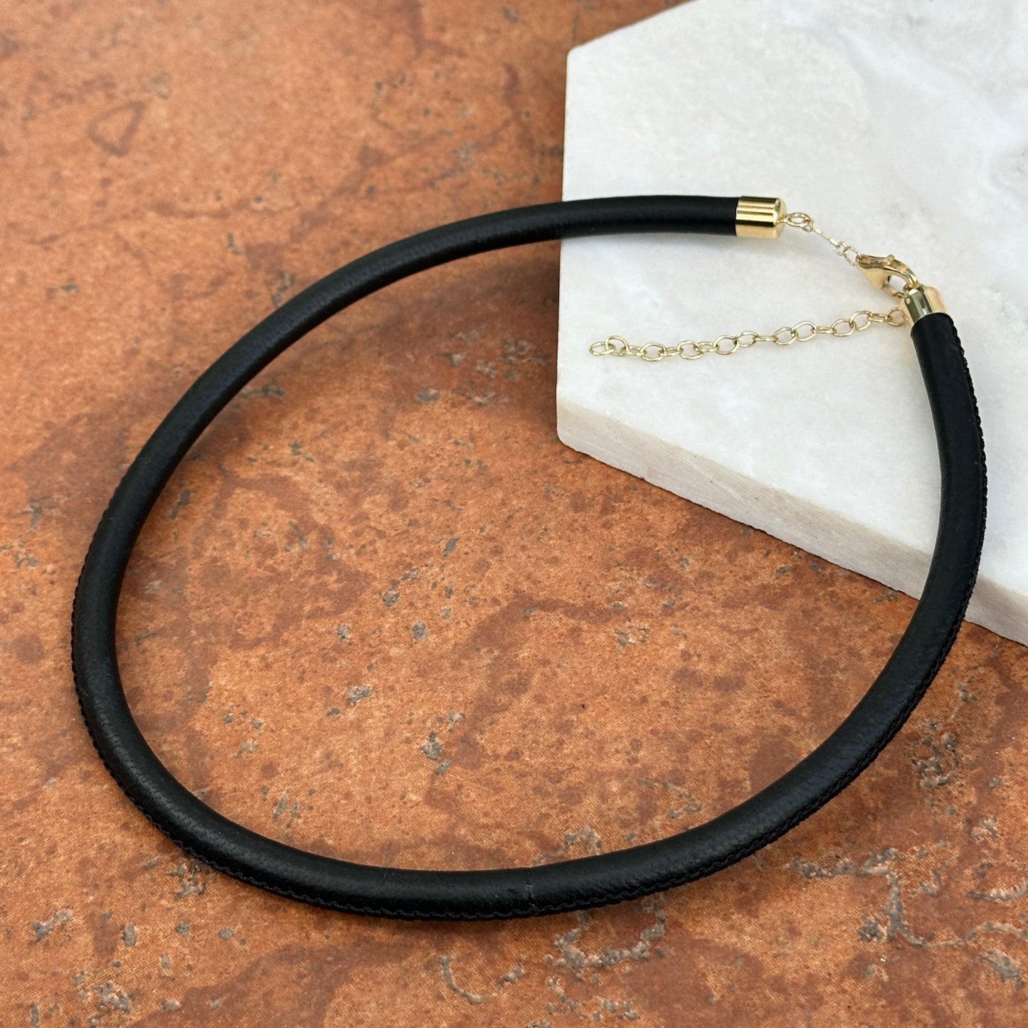 14KT Yellow Gold 6mm Black Leather Cord Necklace