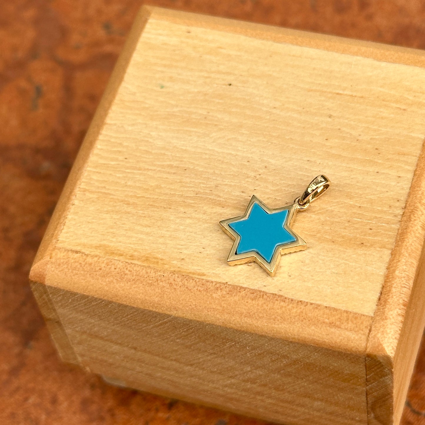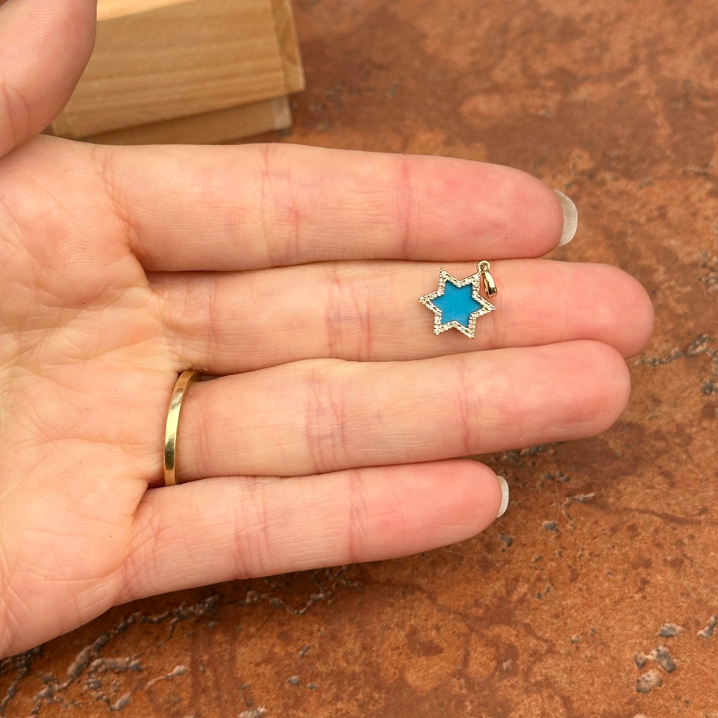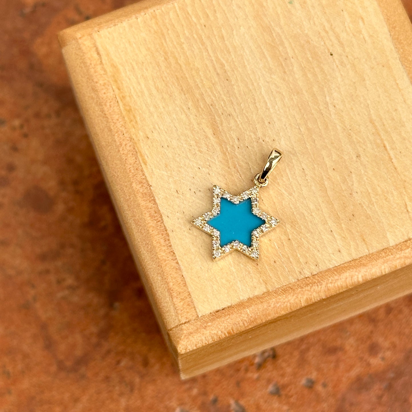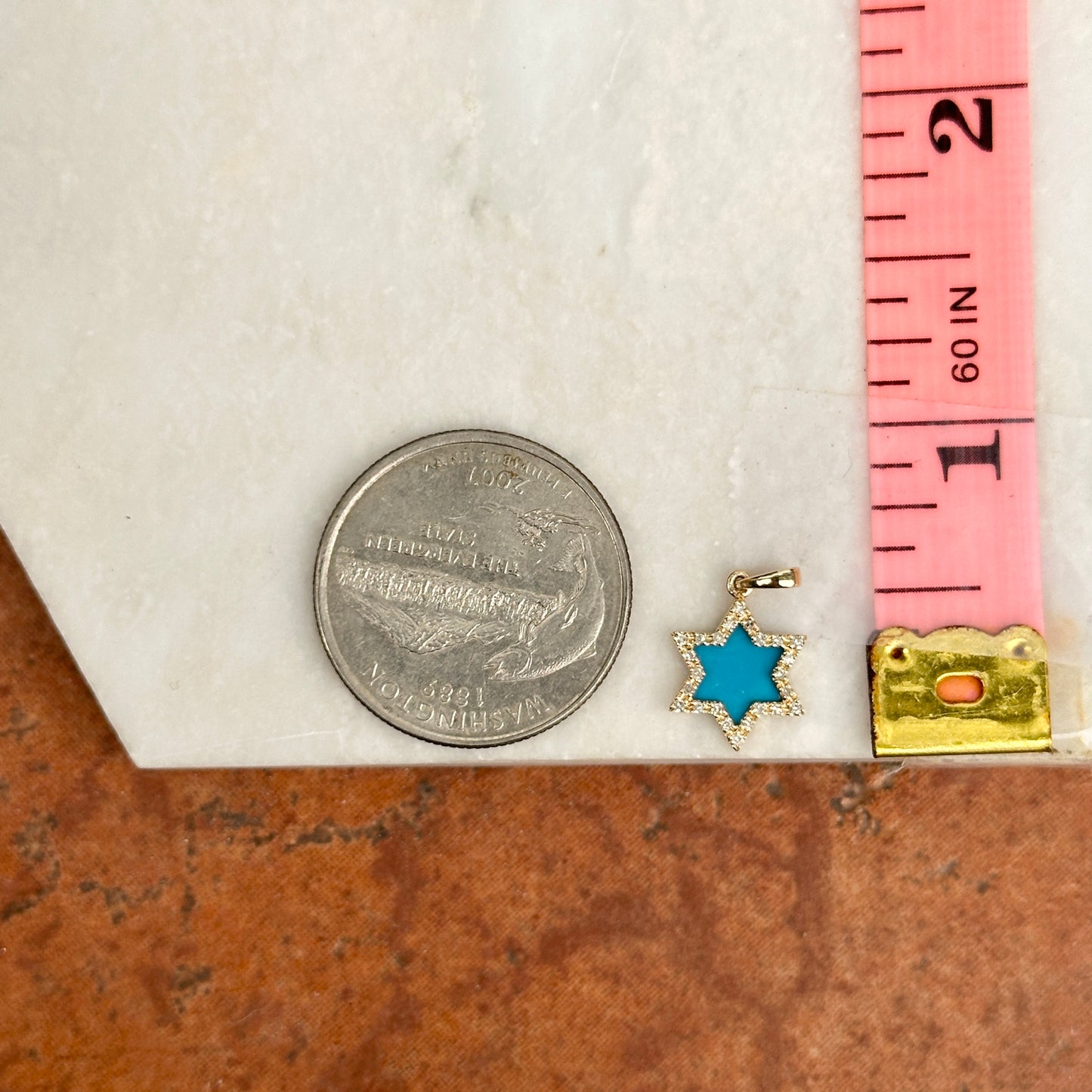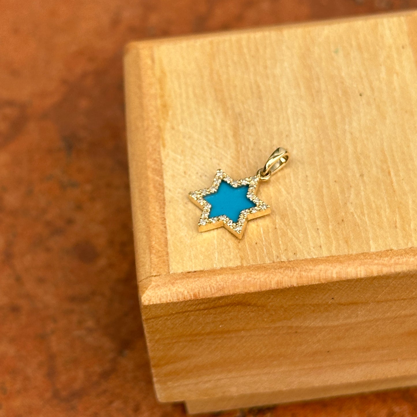 14KT Yellow Gold Blue Turquoise + Pave Diamond Star of David Pendant Charm