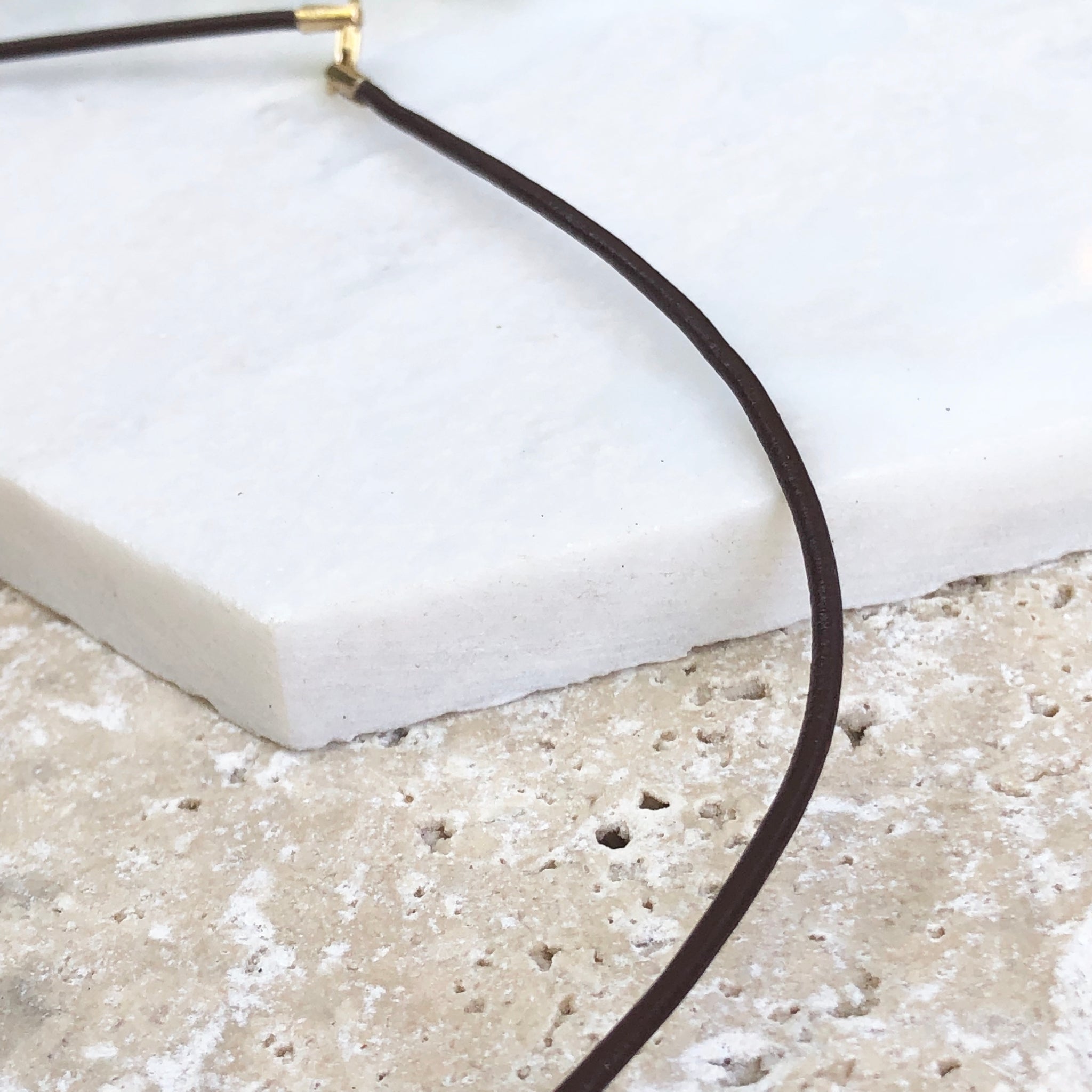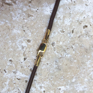 14KT Yellow Gold Brown Leather Cord Necklace 1.5mm