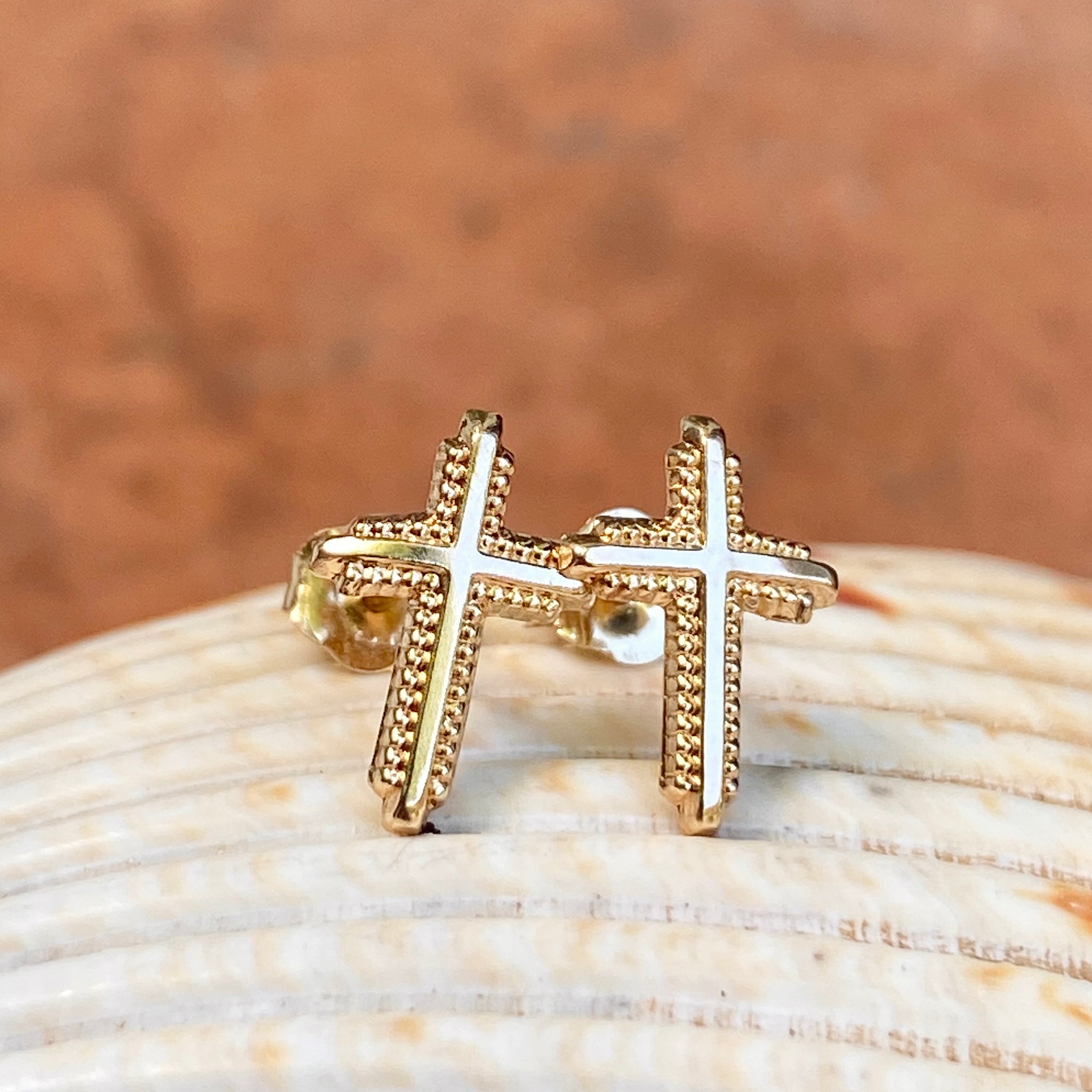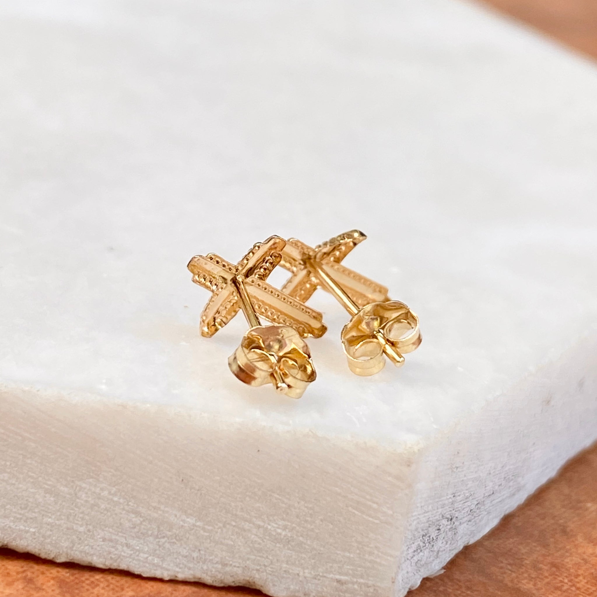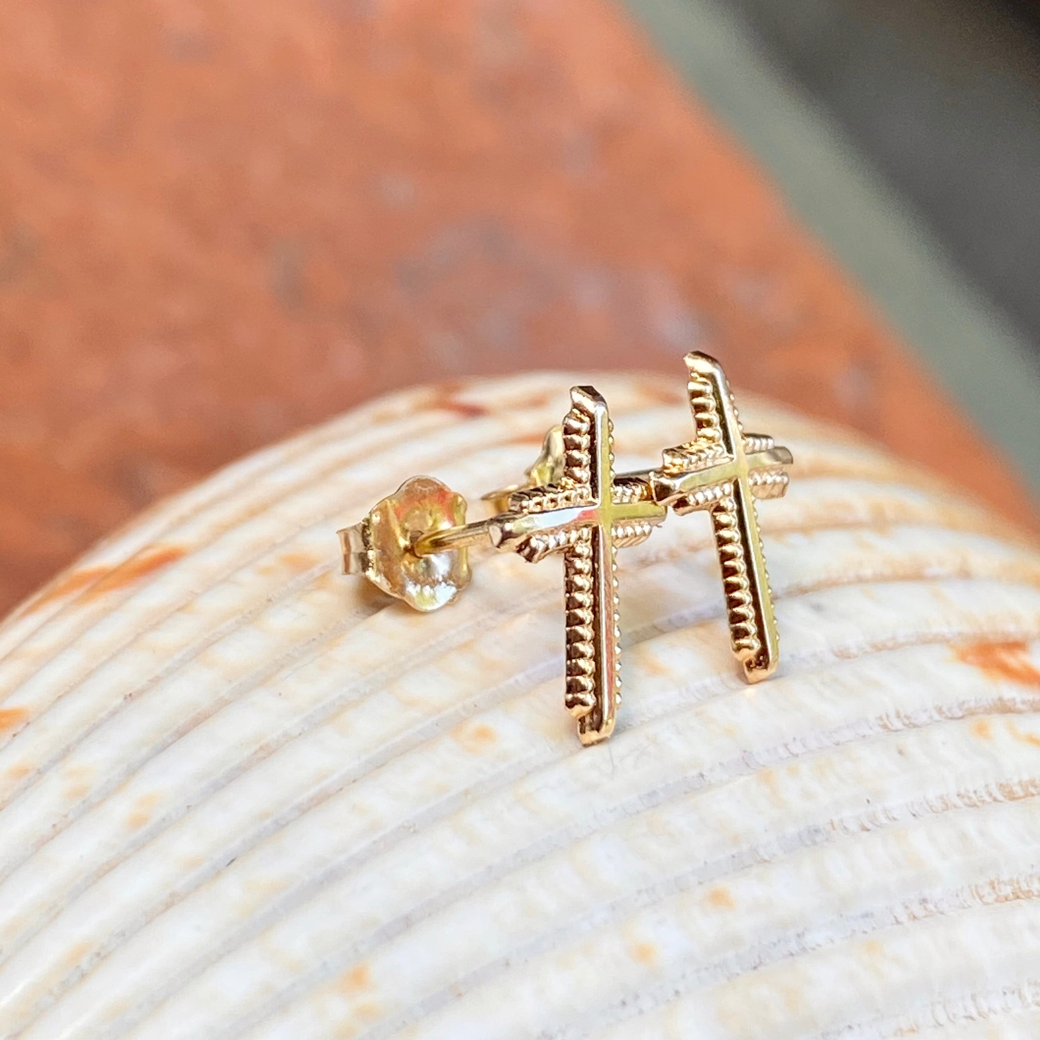 14KT Yellow Gold Bubbled Mini Cross Post Stud Earrings