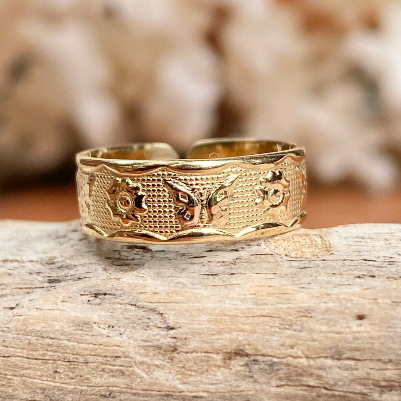 14KT Yellow Gold Butterfly + Flower Design Toe Ring