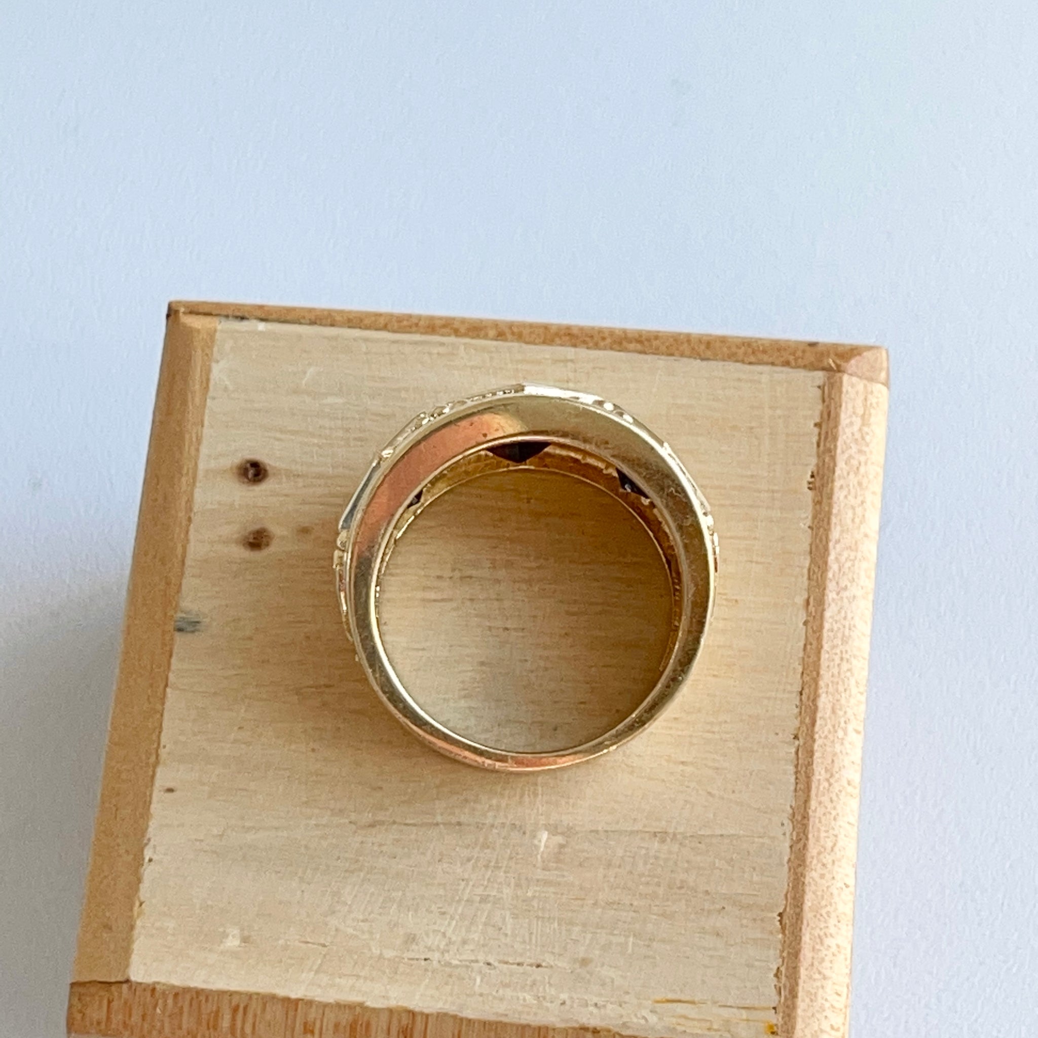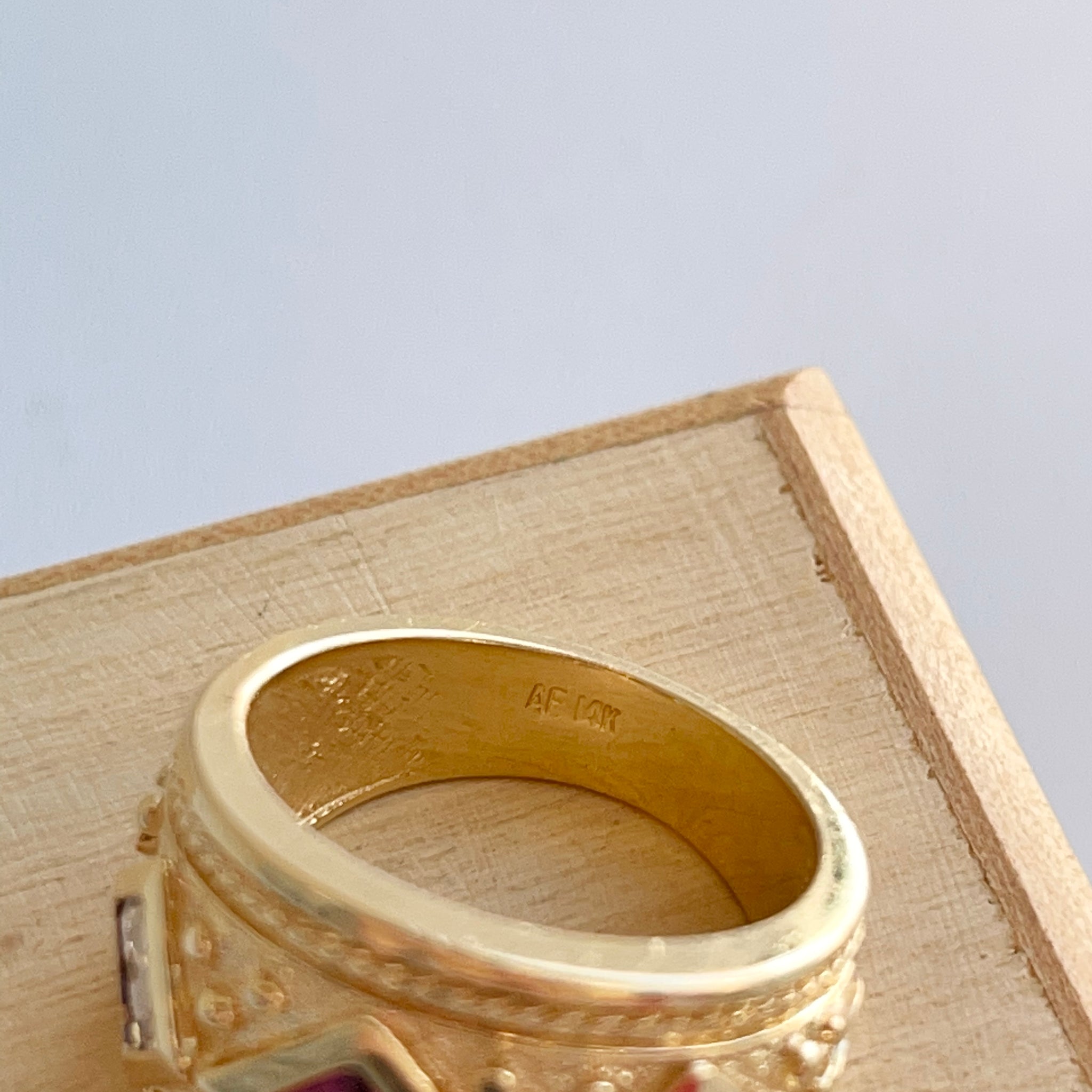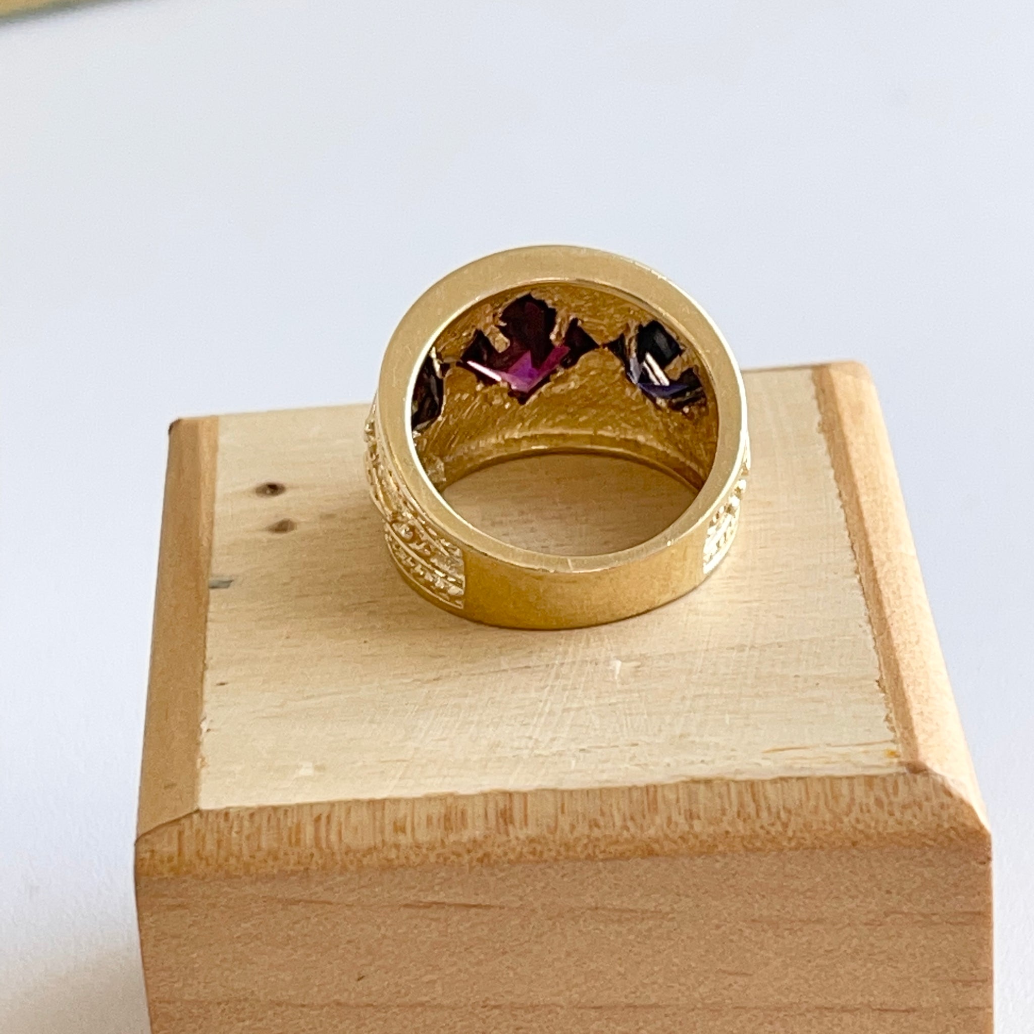 14KT Yellow Gold Byzantine Amethyst + Iolite Cigar Band Ring