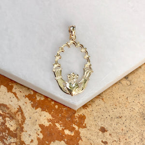 14KT Yellow Gold Celtic Claddagh Lace Trim Oval Pendant