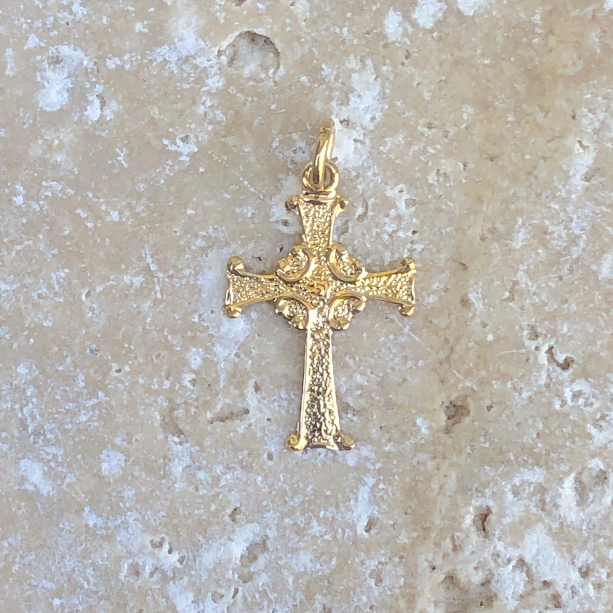 14KT Yellow Gold Textured Celtic Cross Pendant Charm