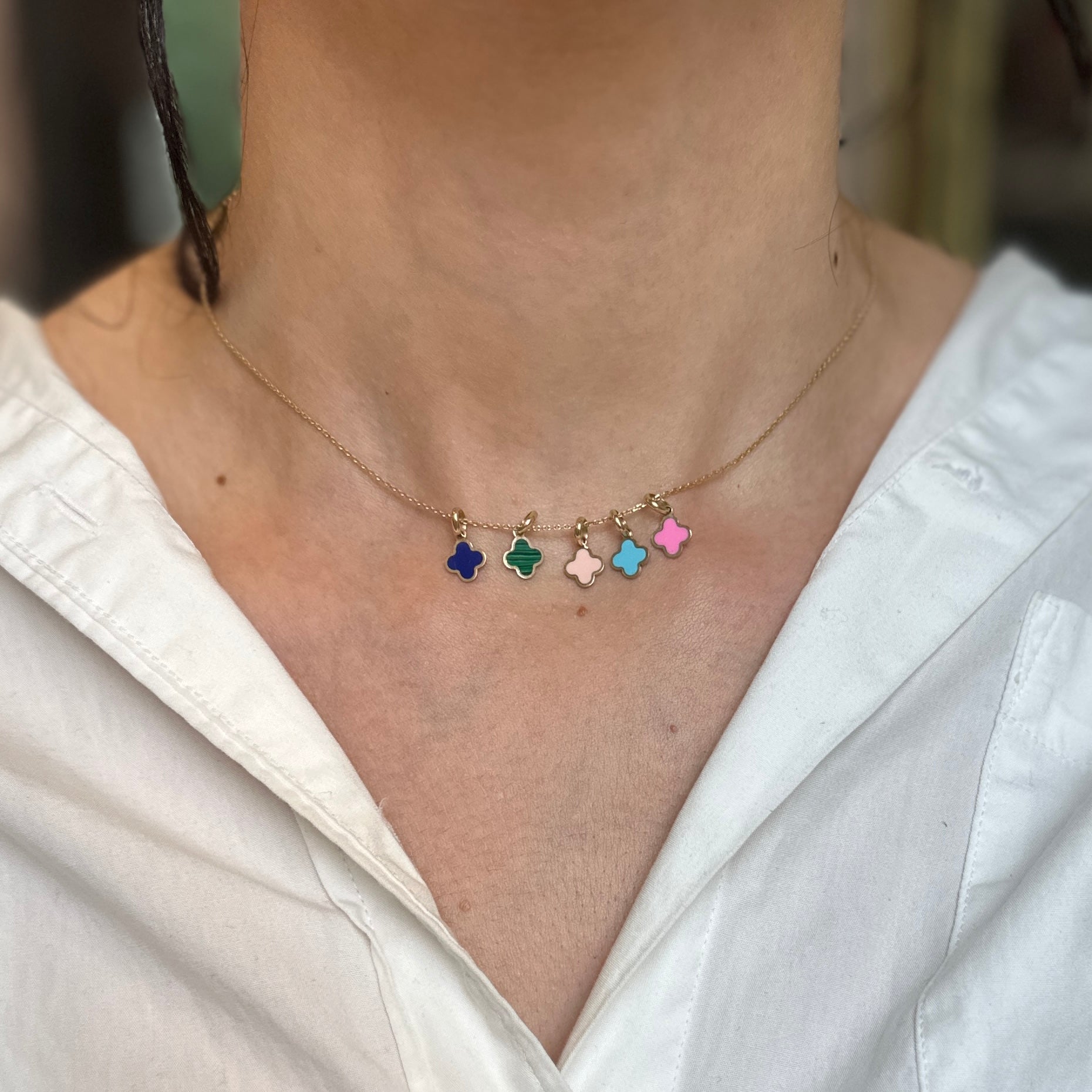 14KT Yellow Gold Clover Dark Pink Enamel Pendant Charm 7mm