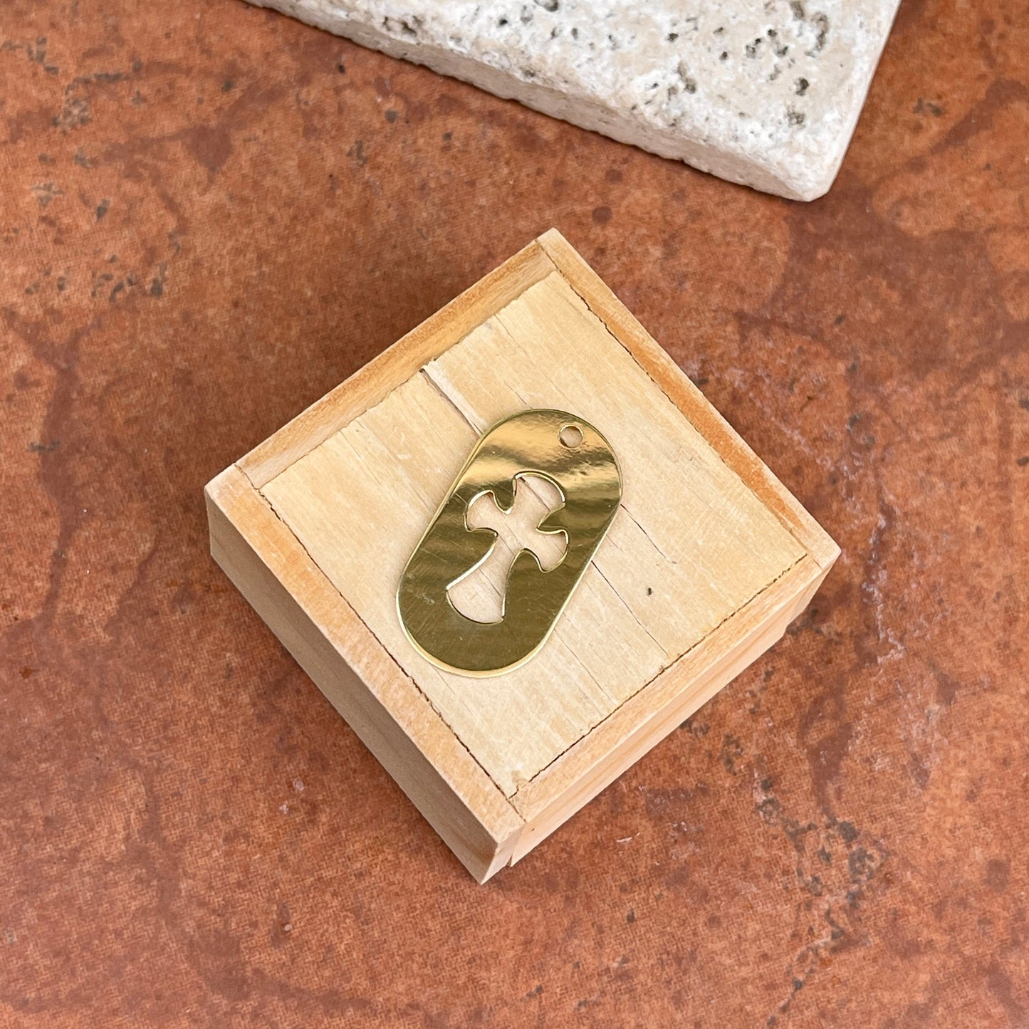 14KT Yellow Gold Dog Tag with Cross Cut-Out Pendant