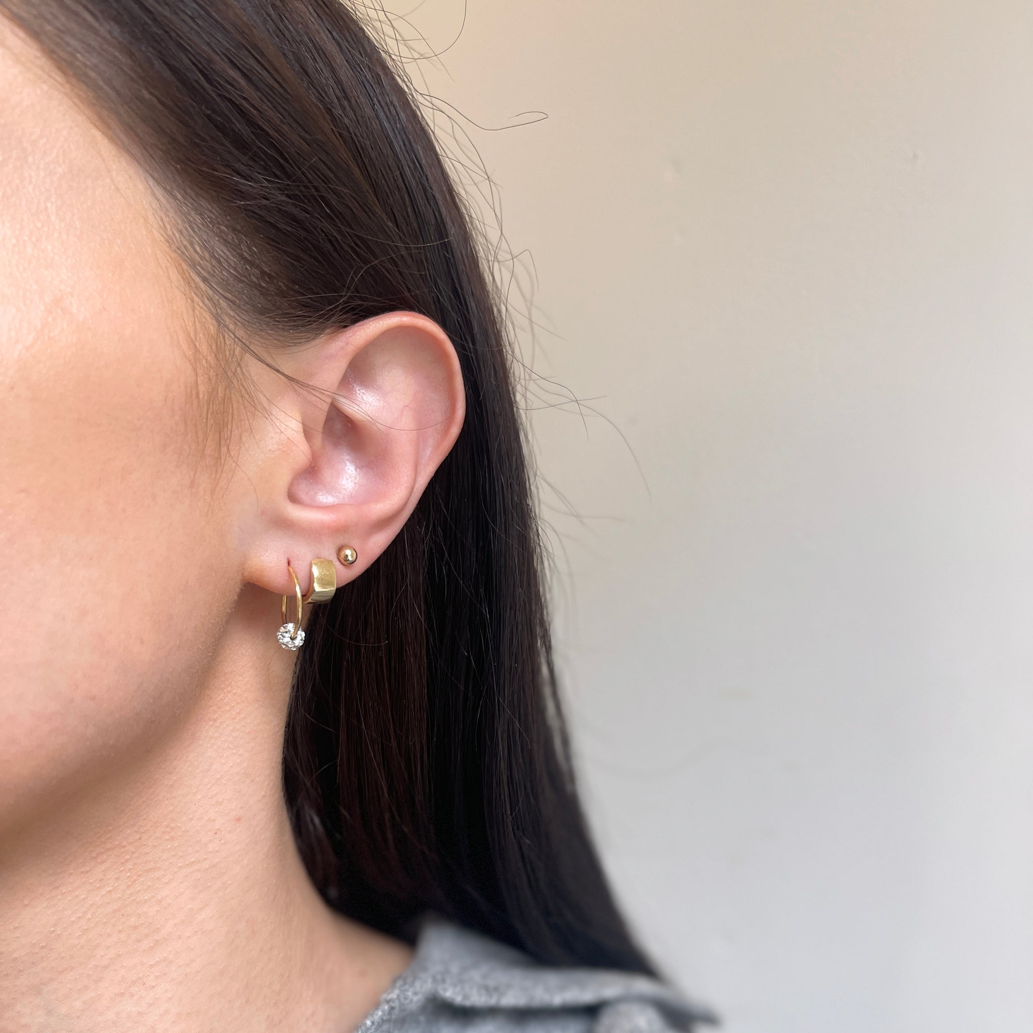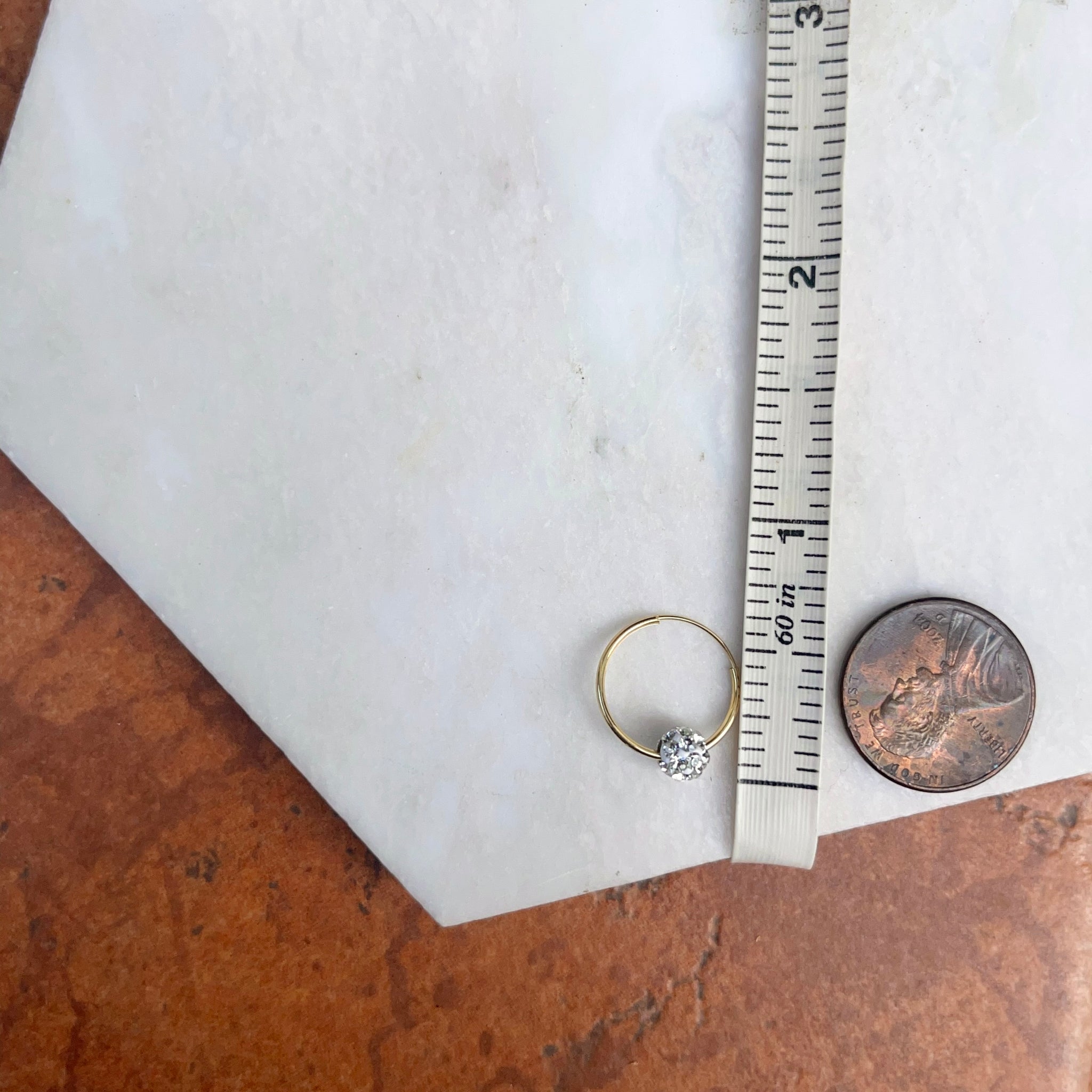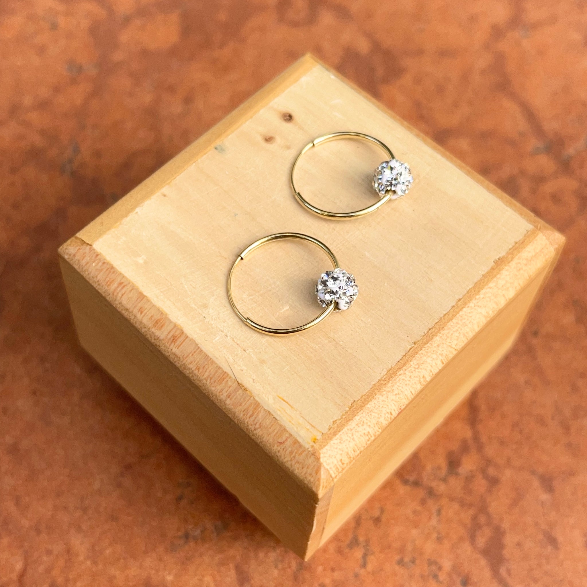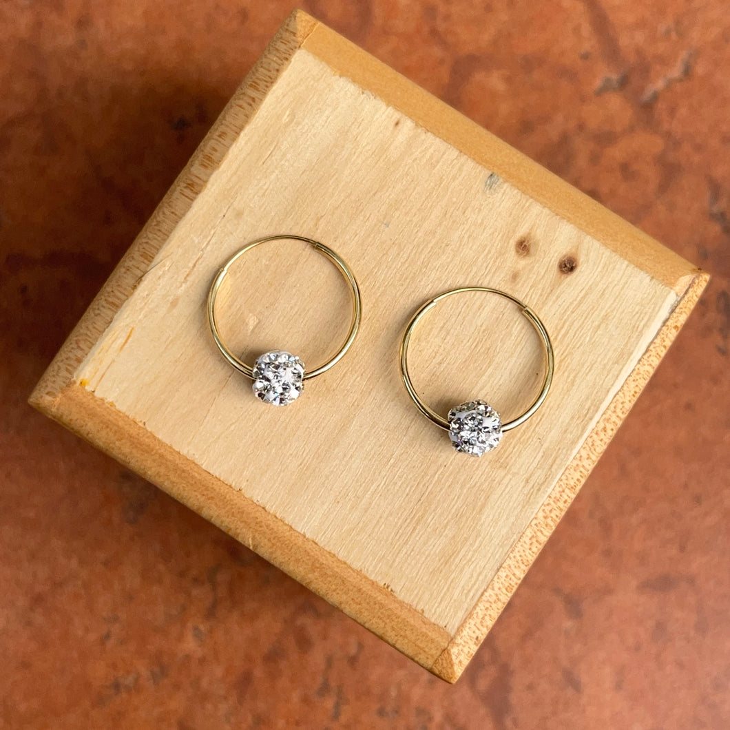 14KT yellow gold crystal ball round endless hoop earrings. Small, little hoops with a little sparkle!