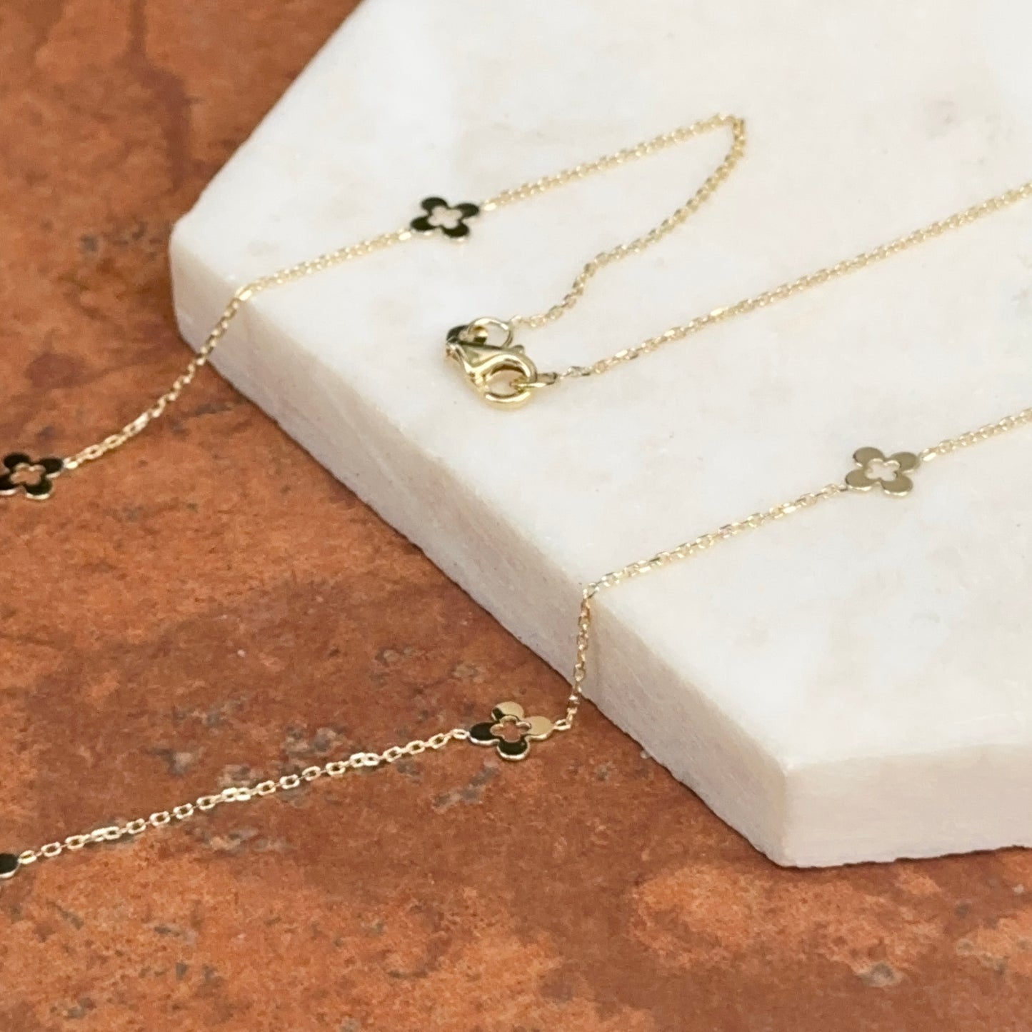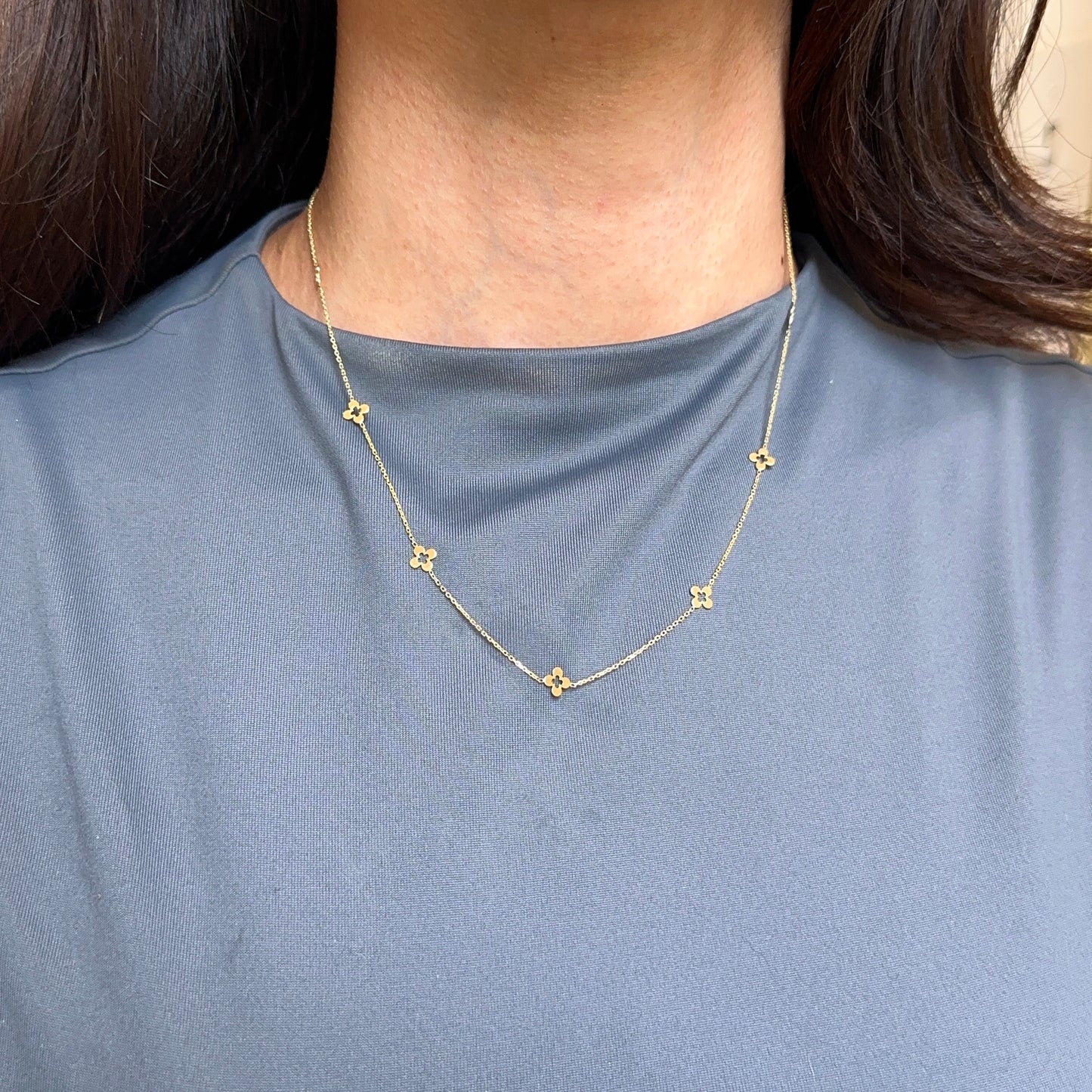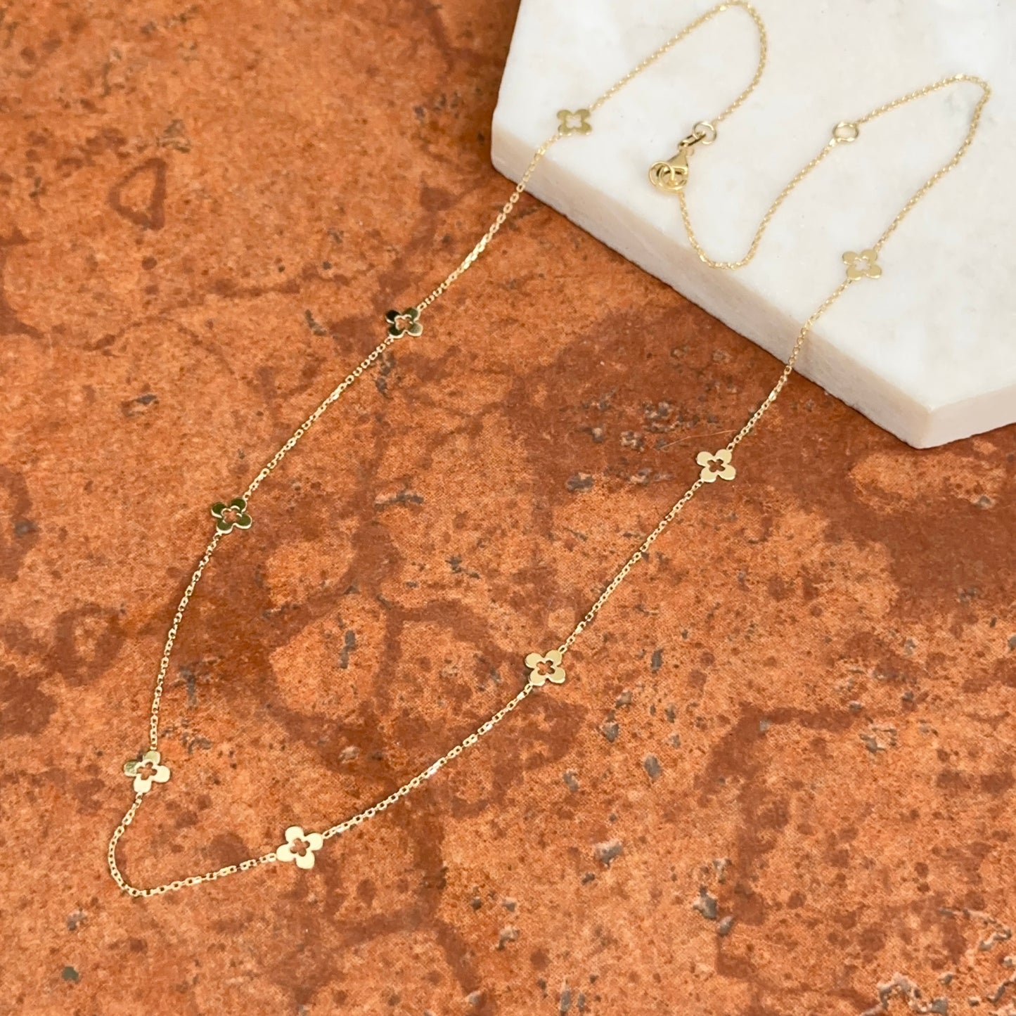 14KT Yellow Gold Cut-Out Clover Station Chain Necklace