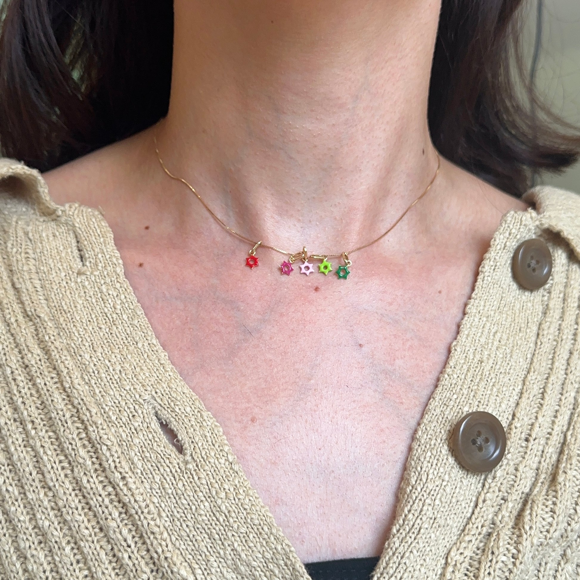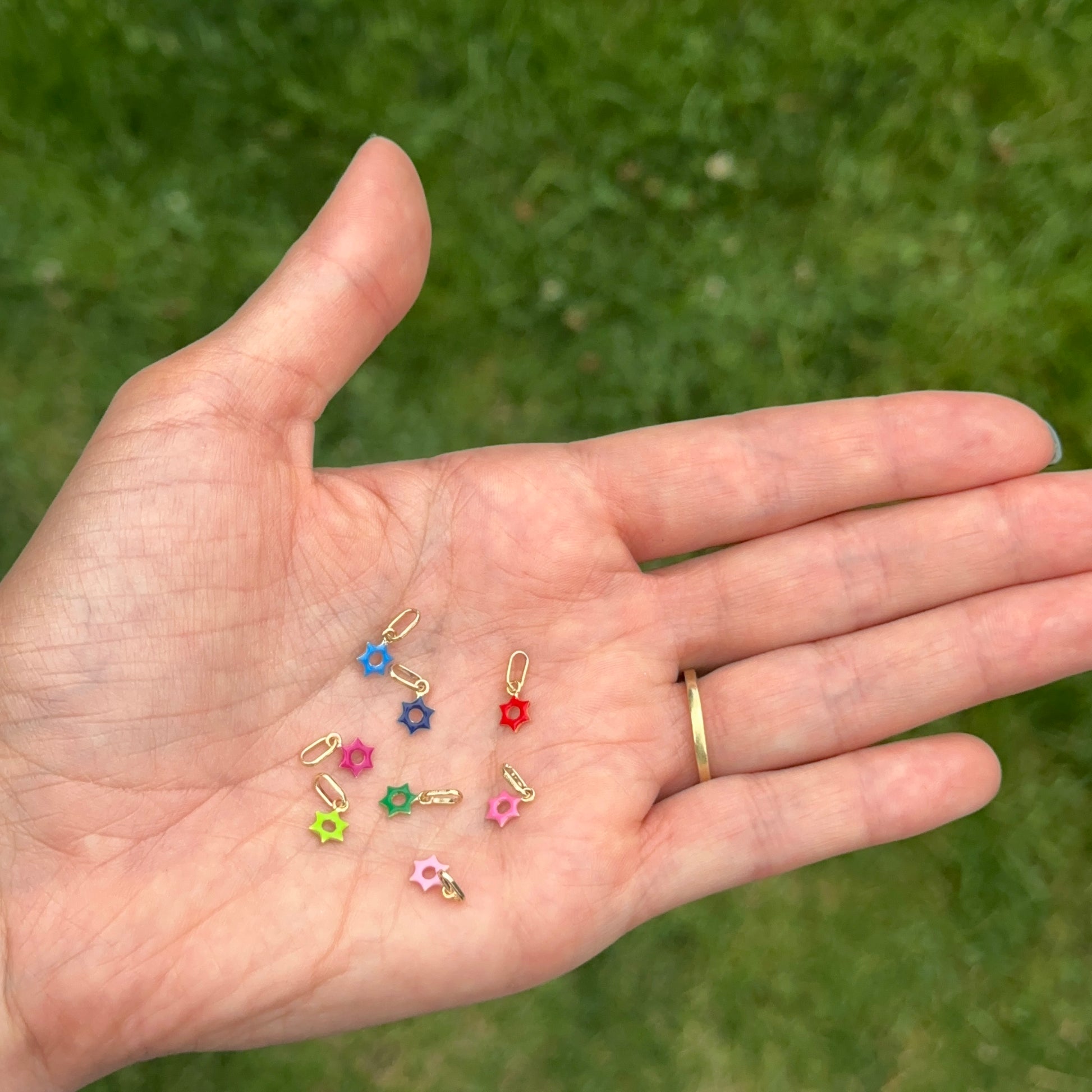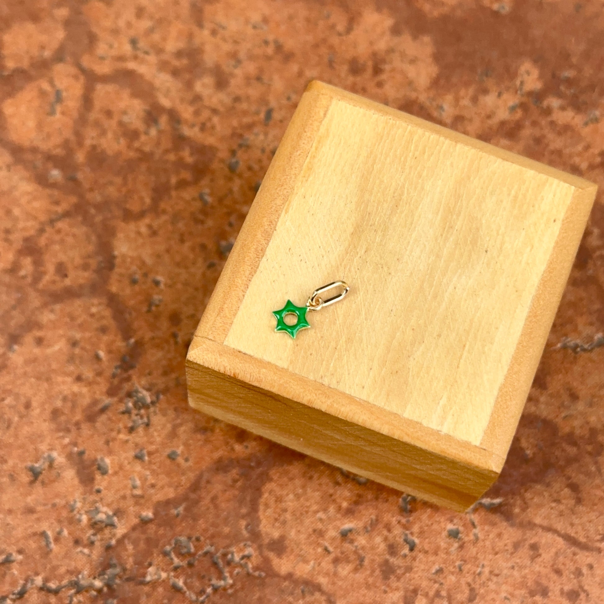 14KT Yellow Gold Mini Size Dark Green Enamel Star of David Pendant Charm
