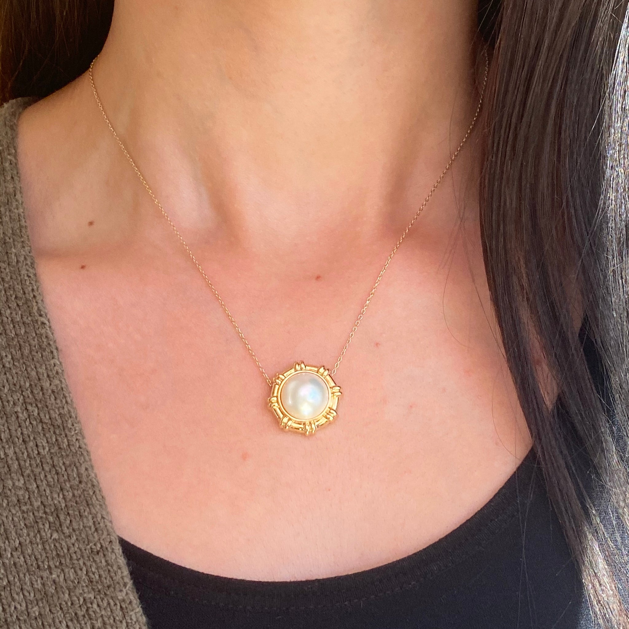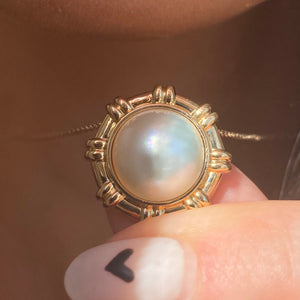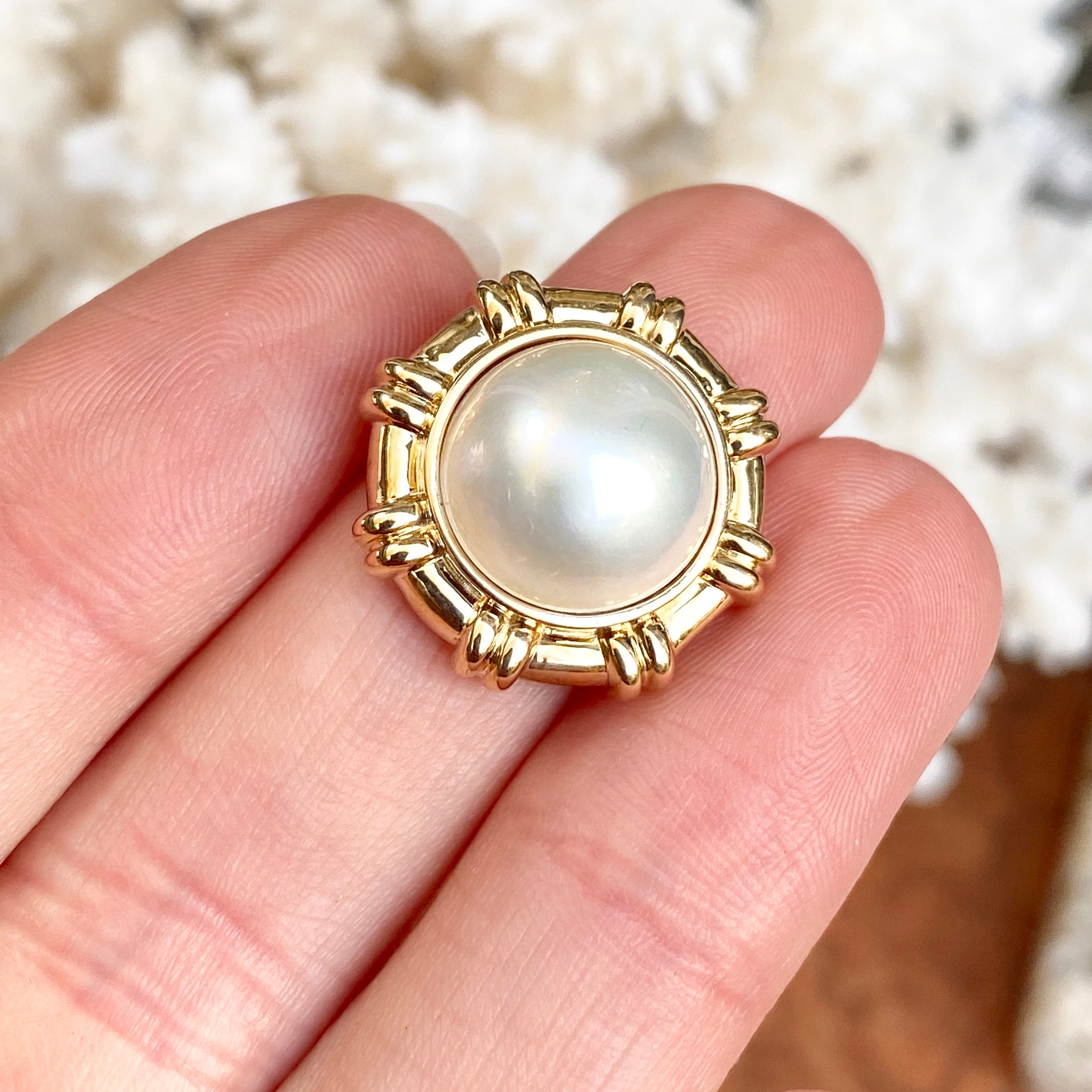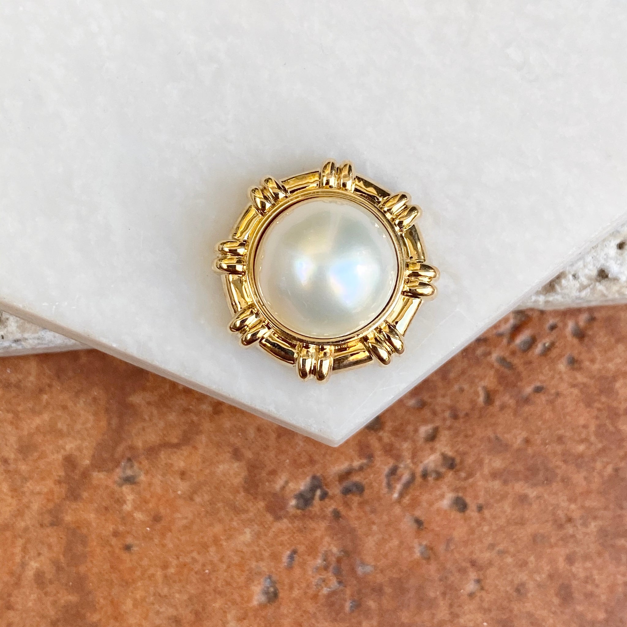 14KT Yellow Gold Detailed Round White Mabe Pearl Pendant Slide