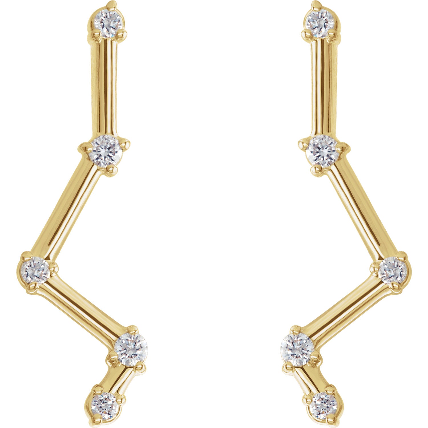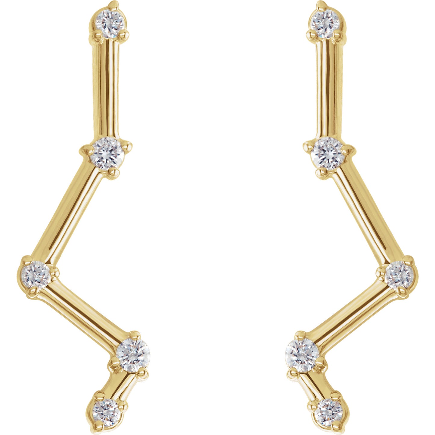 14KT polished yellow gold constellation design diamond post earring climbers.