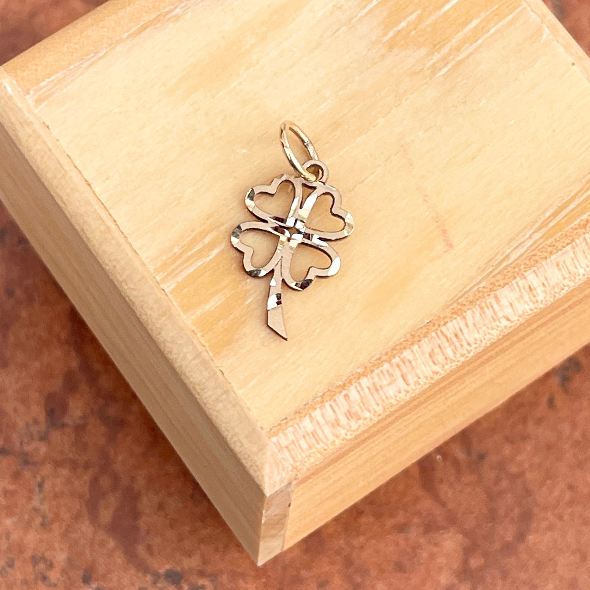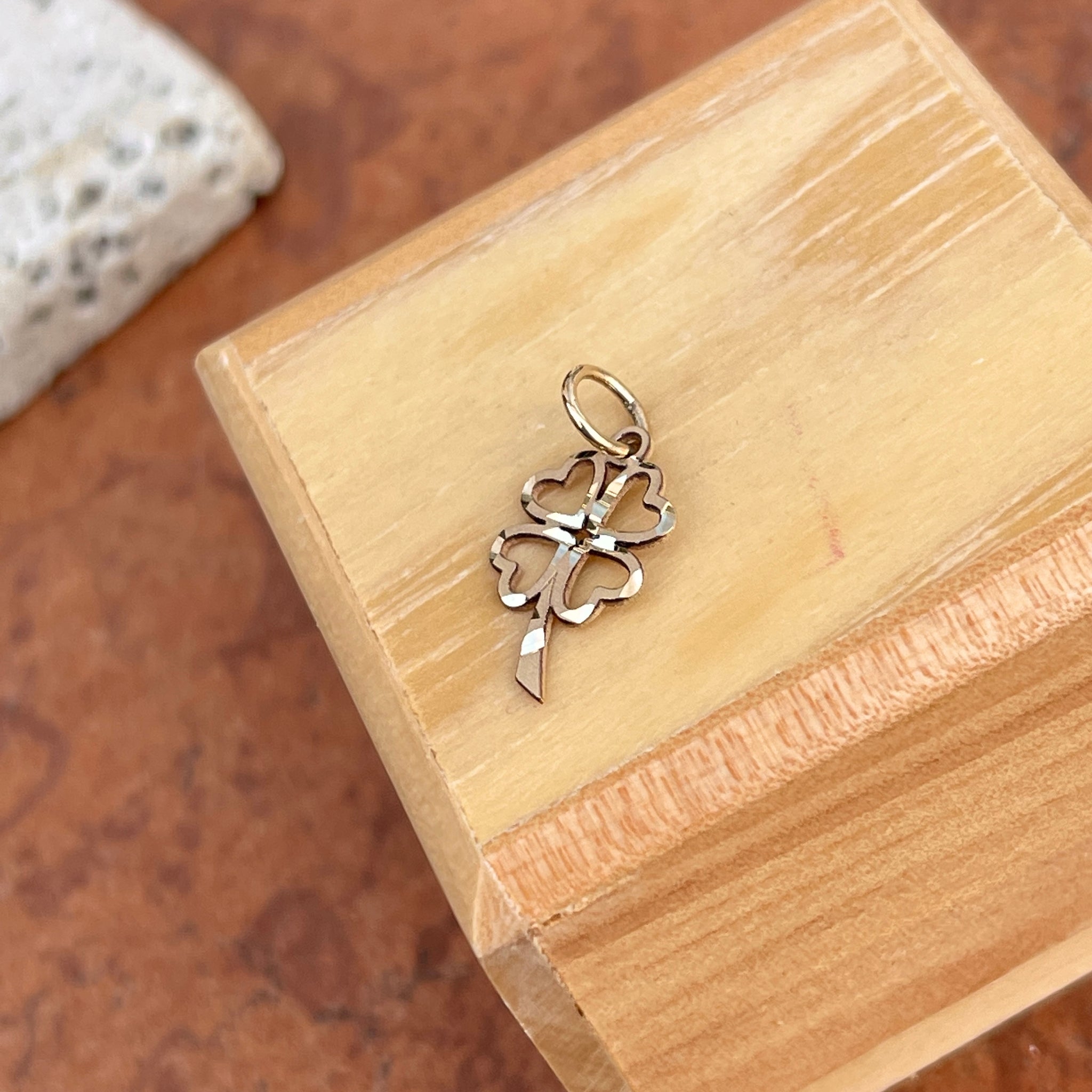 10KT Yellow Gold Diamond-Cut 4-Leaf Clover Pendant Charm