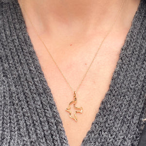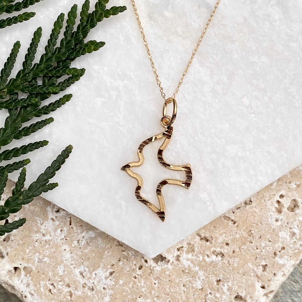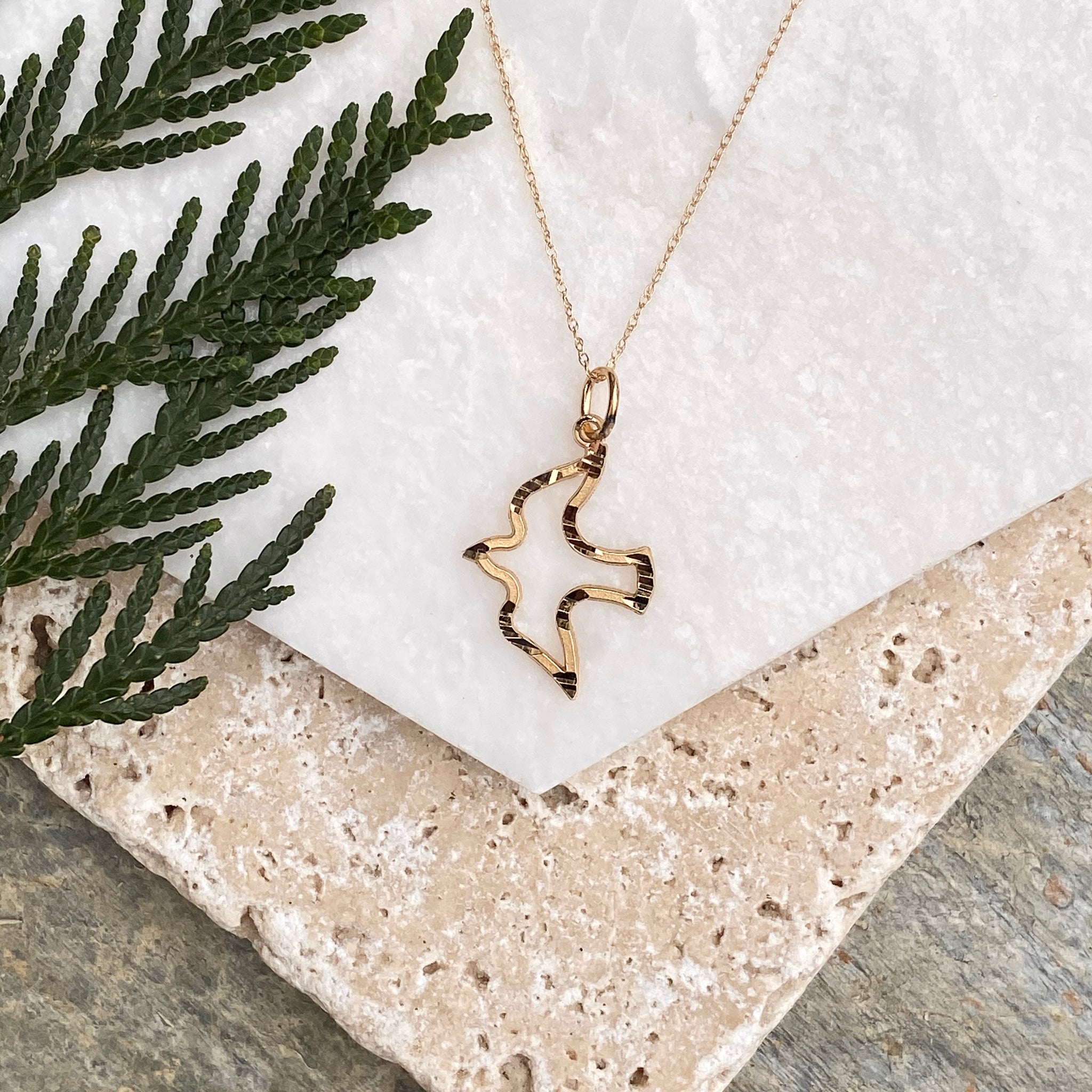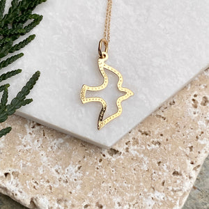 14KT Yellow Gold Diamond-Cut Dove Pendant Necklace