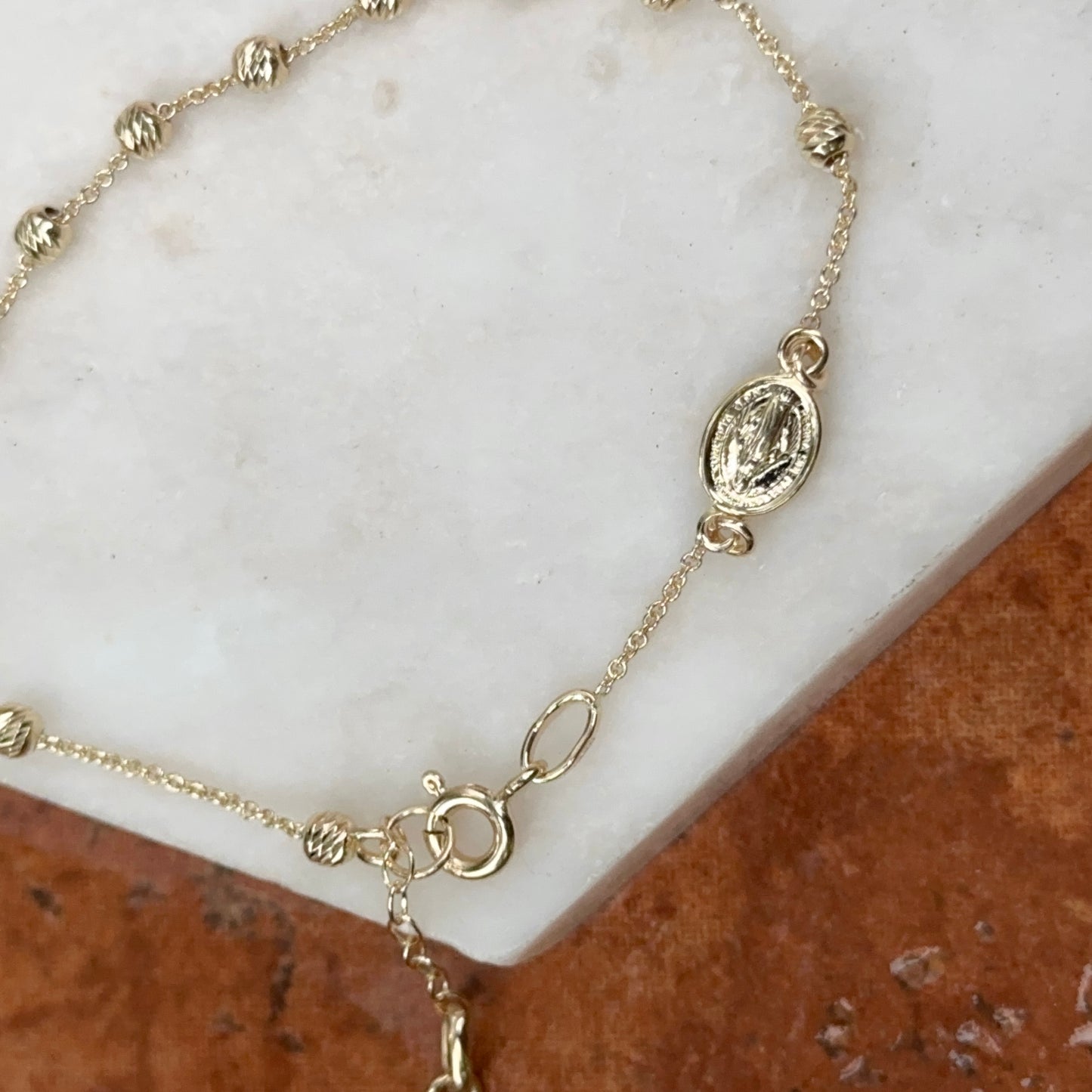 14KT Yellow Gold Diamond-Cut Miraculous Medal Bracelet