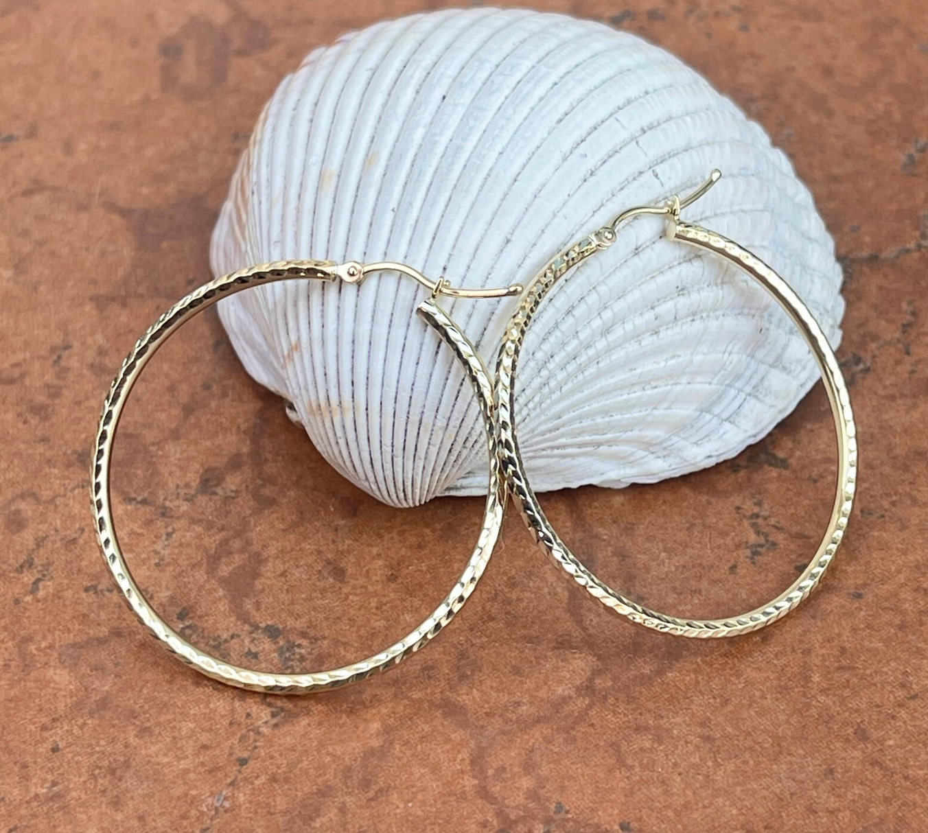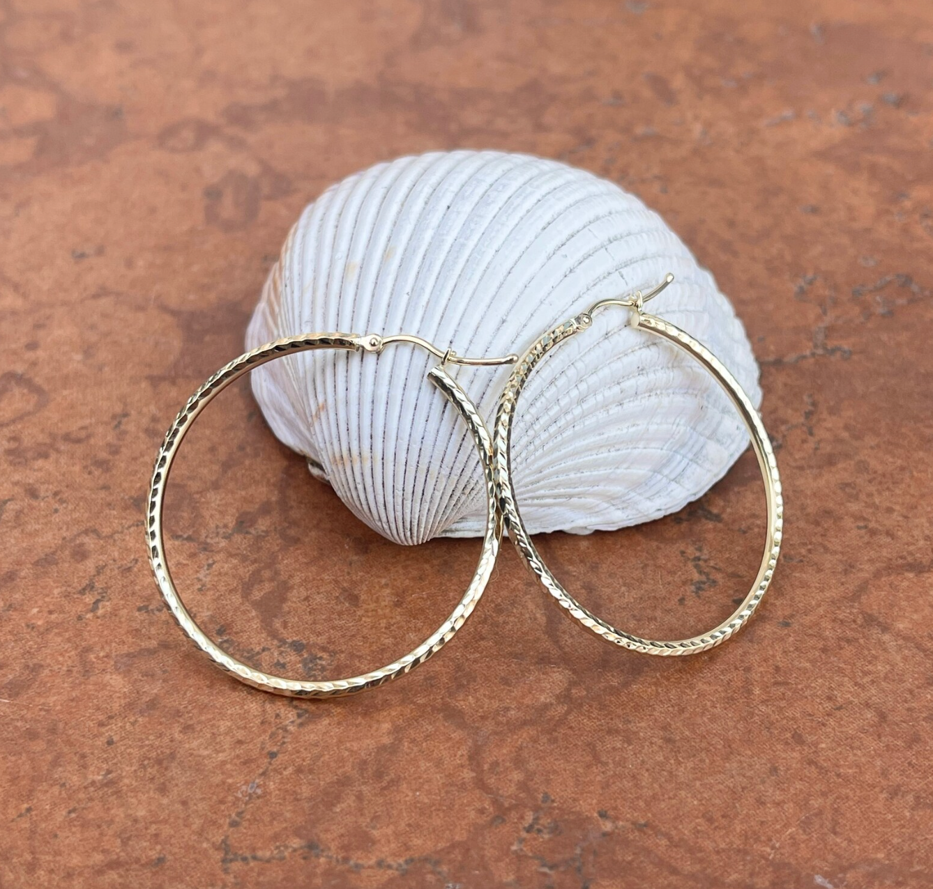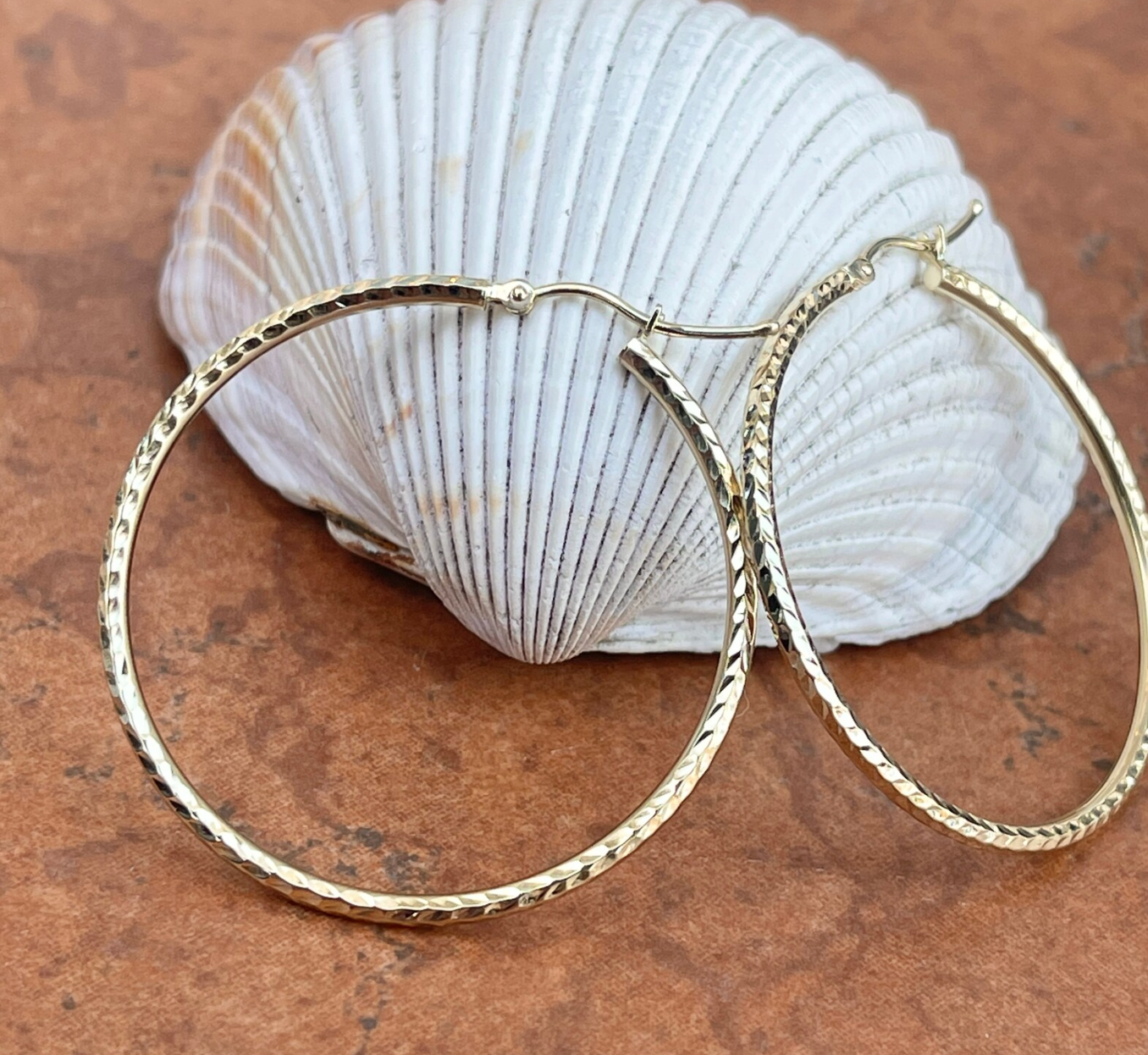 14KT Yellow Gold Diamond-Cut Round Hoop Earrings 40mm