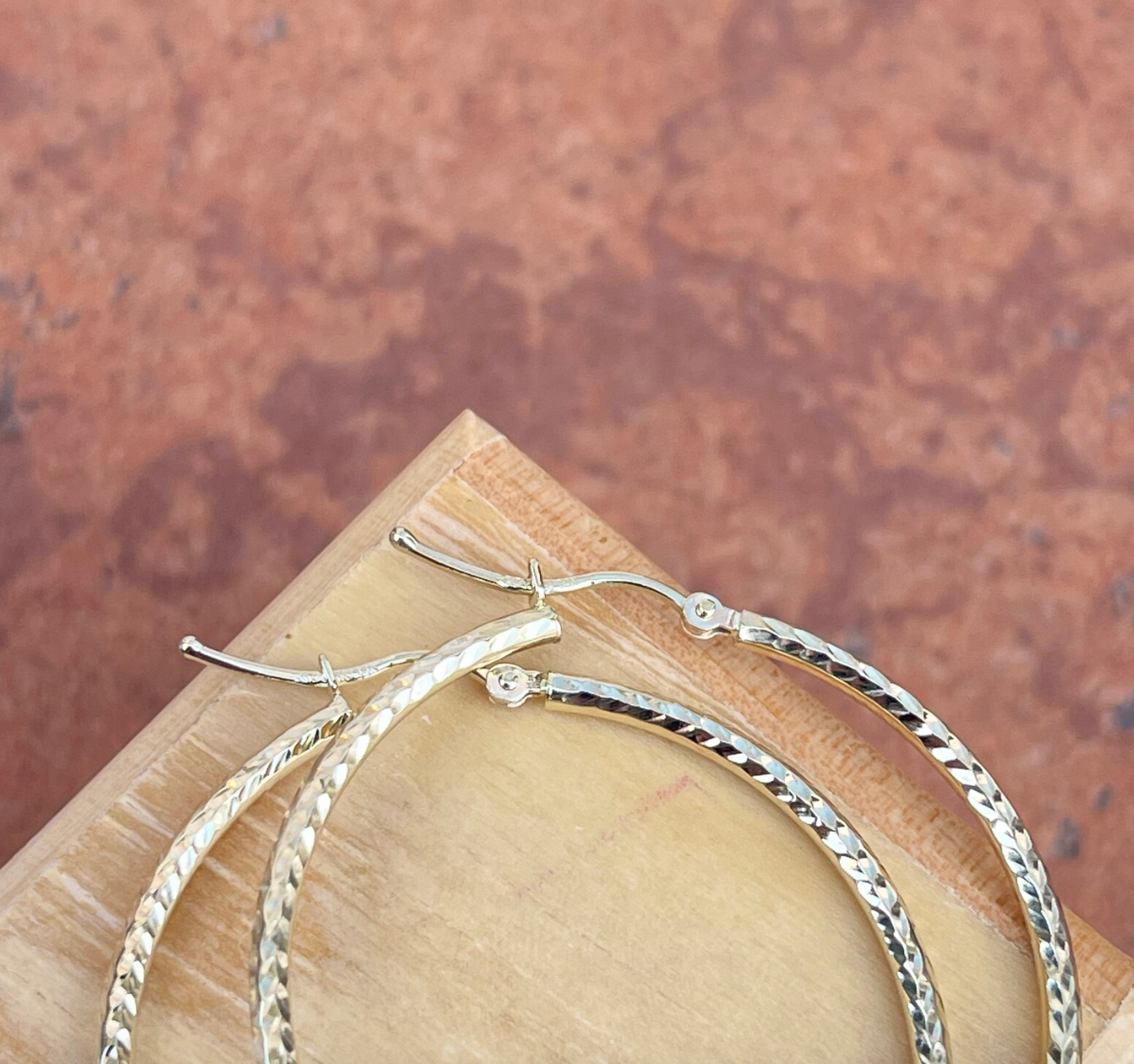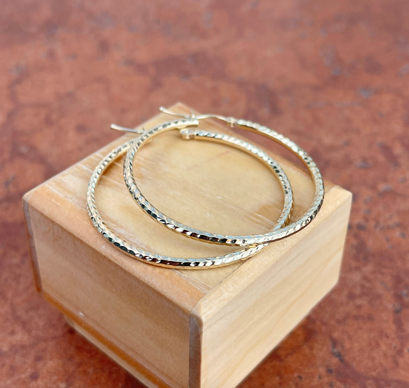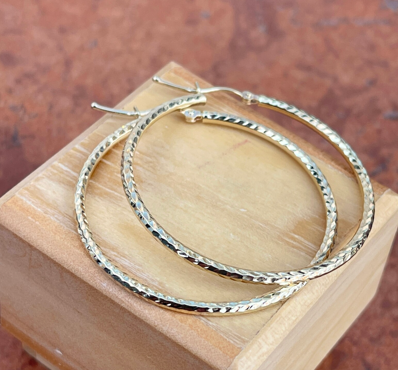 14K yellow gold diamond-cut finished tubes round hoop earrings. Beautifully simple hoops that sparkle a little in the sunlight!