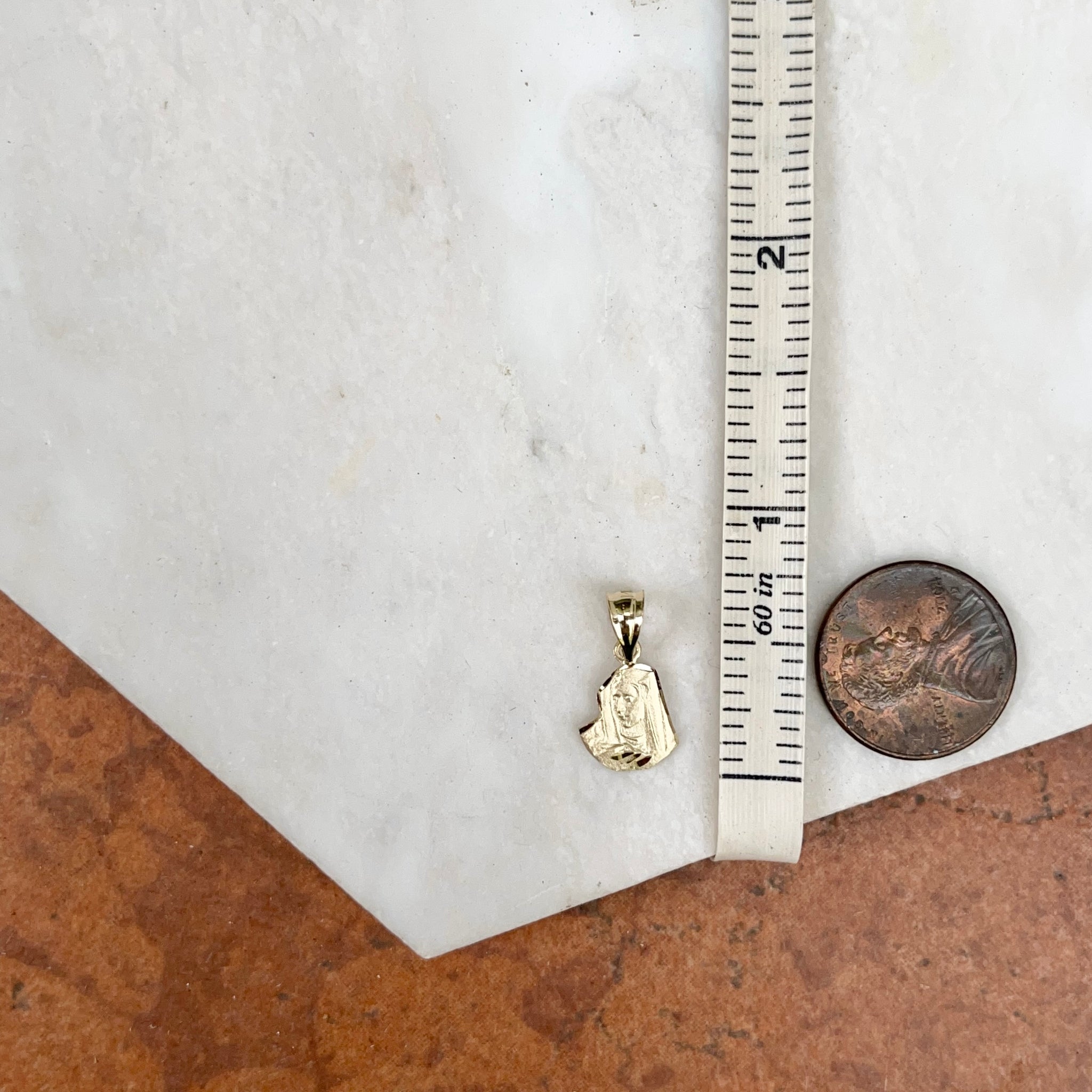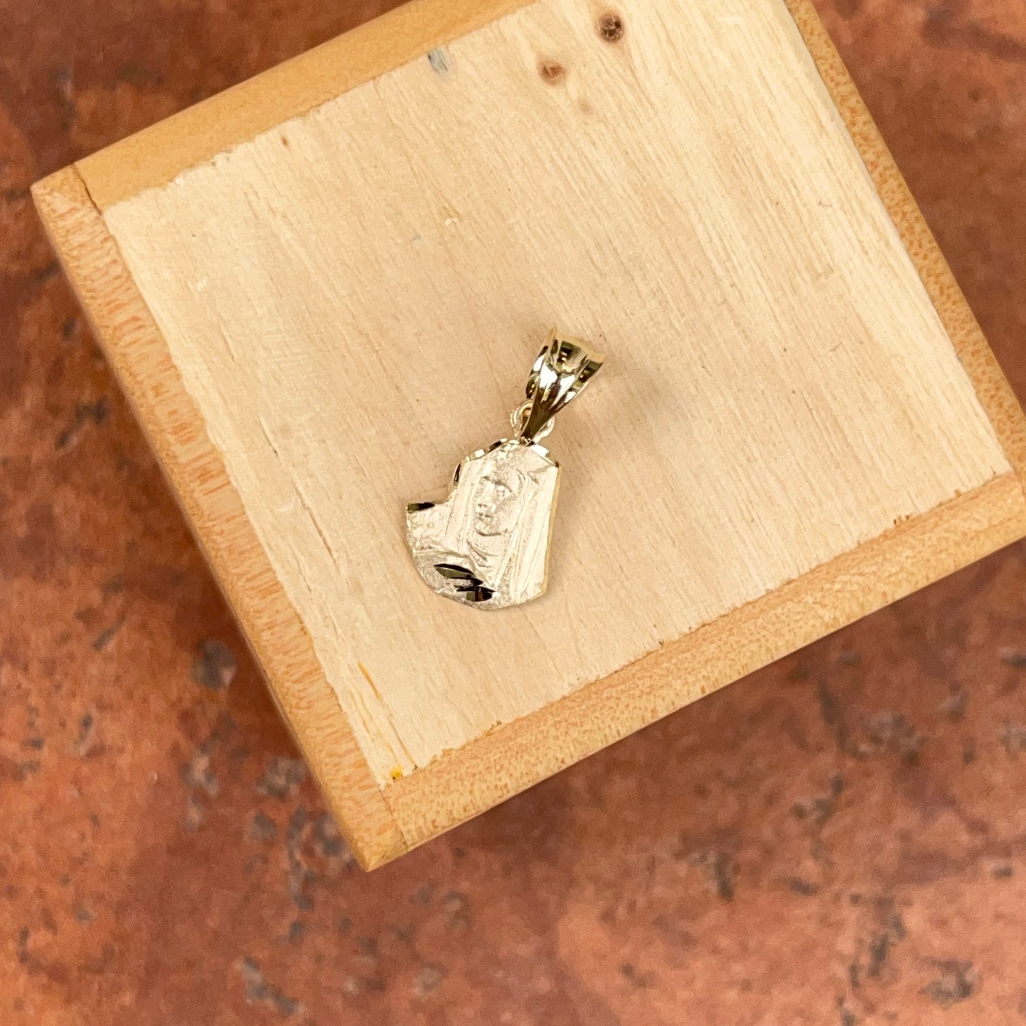 14KT Yellow Gold Diamond-Cut Satin Mother Mary Head Pendant Charm