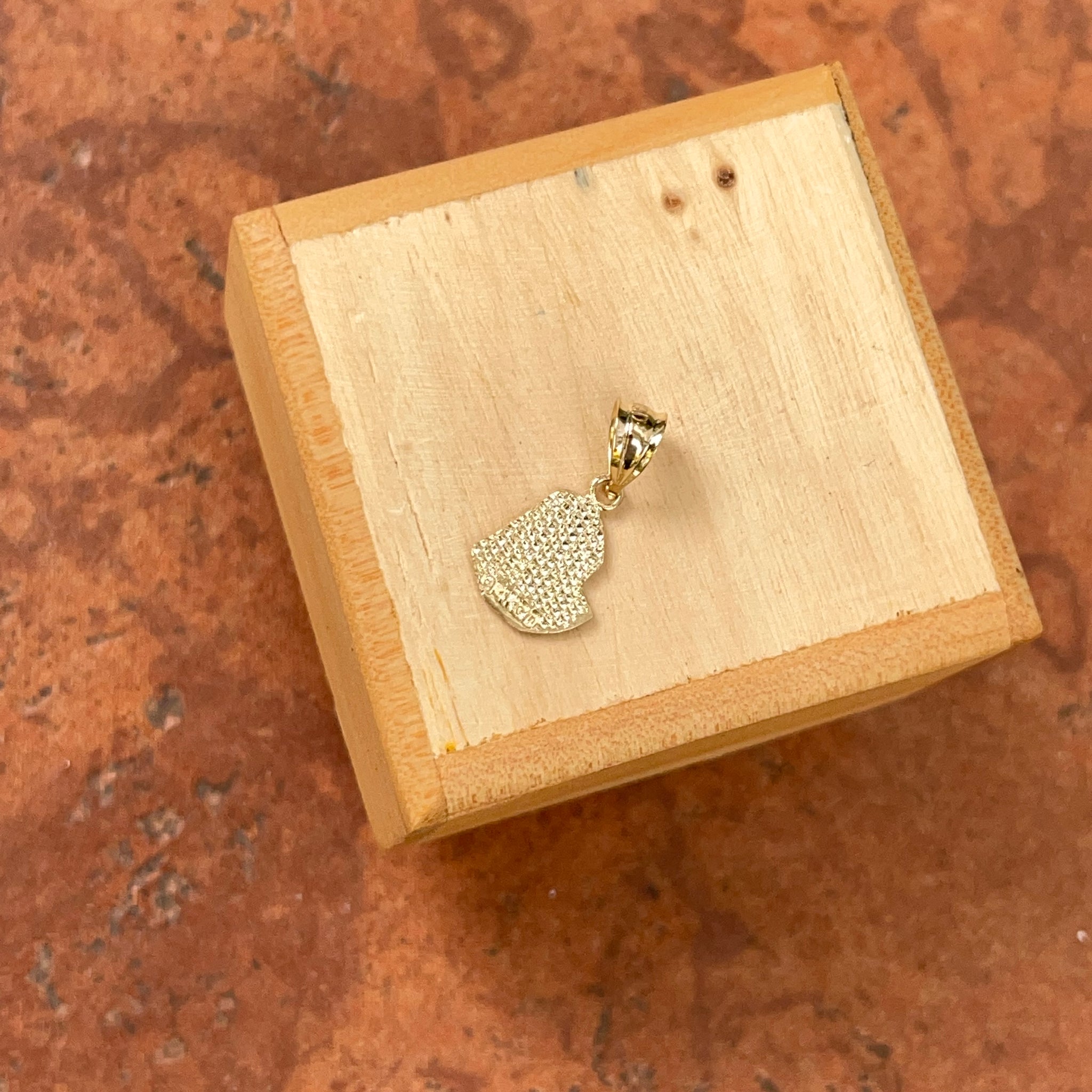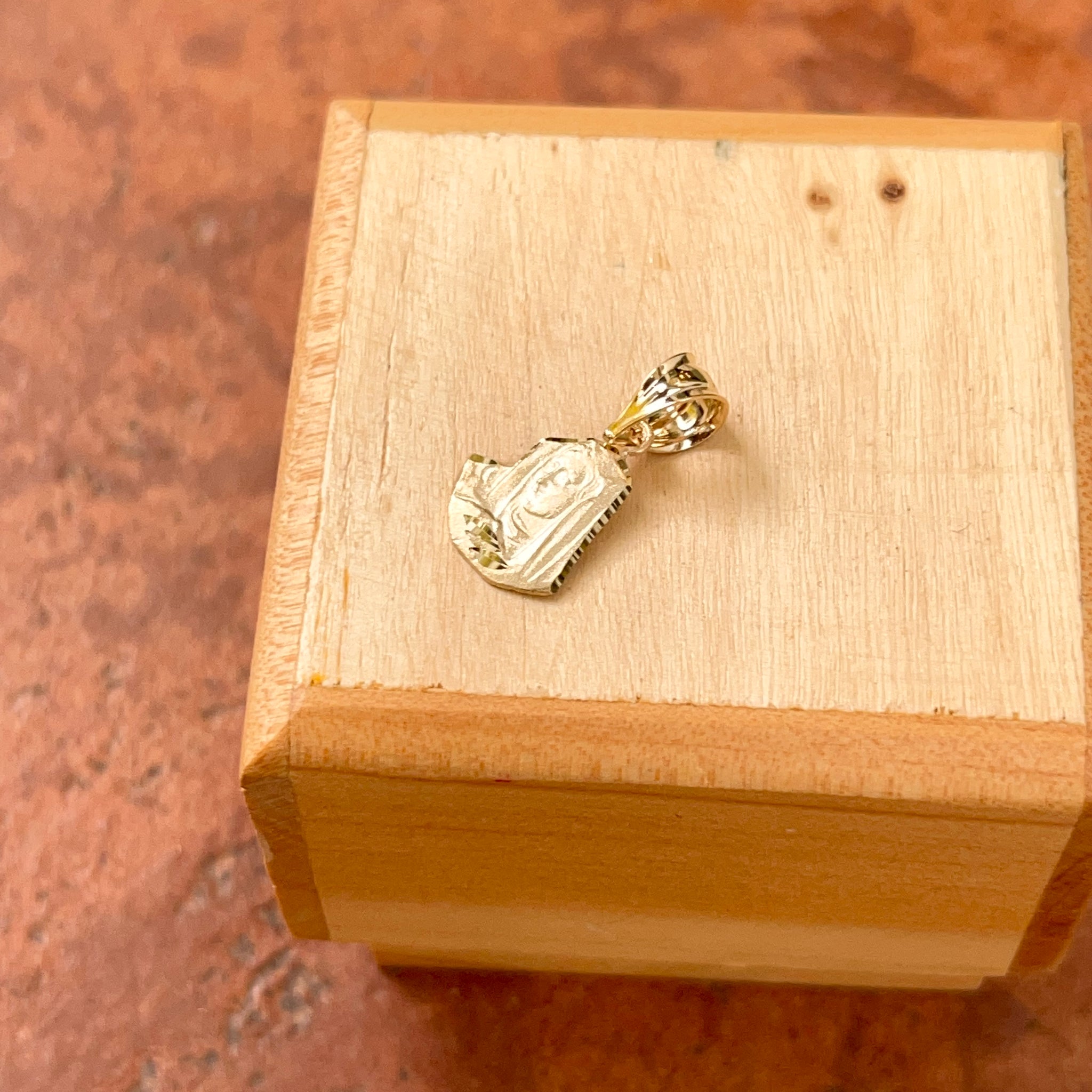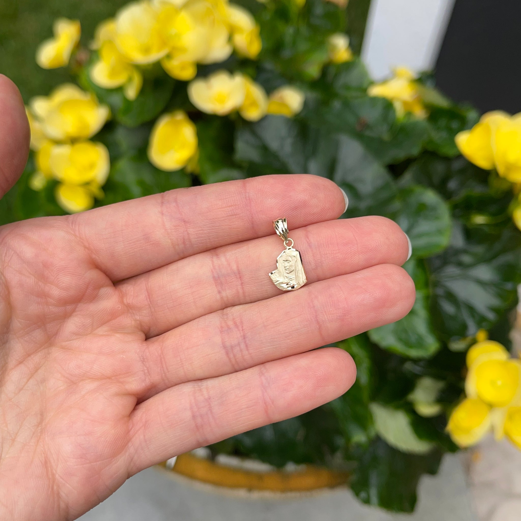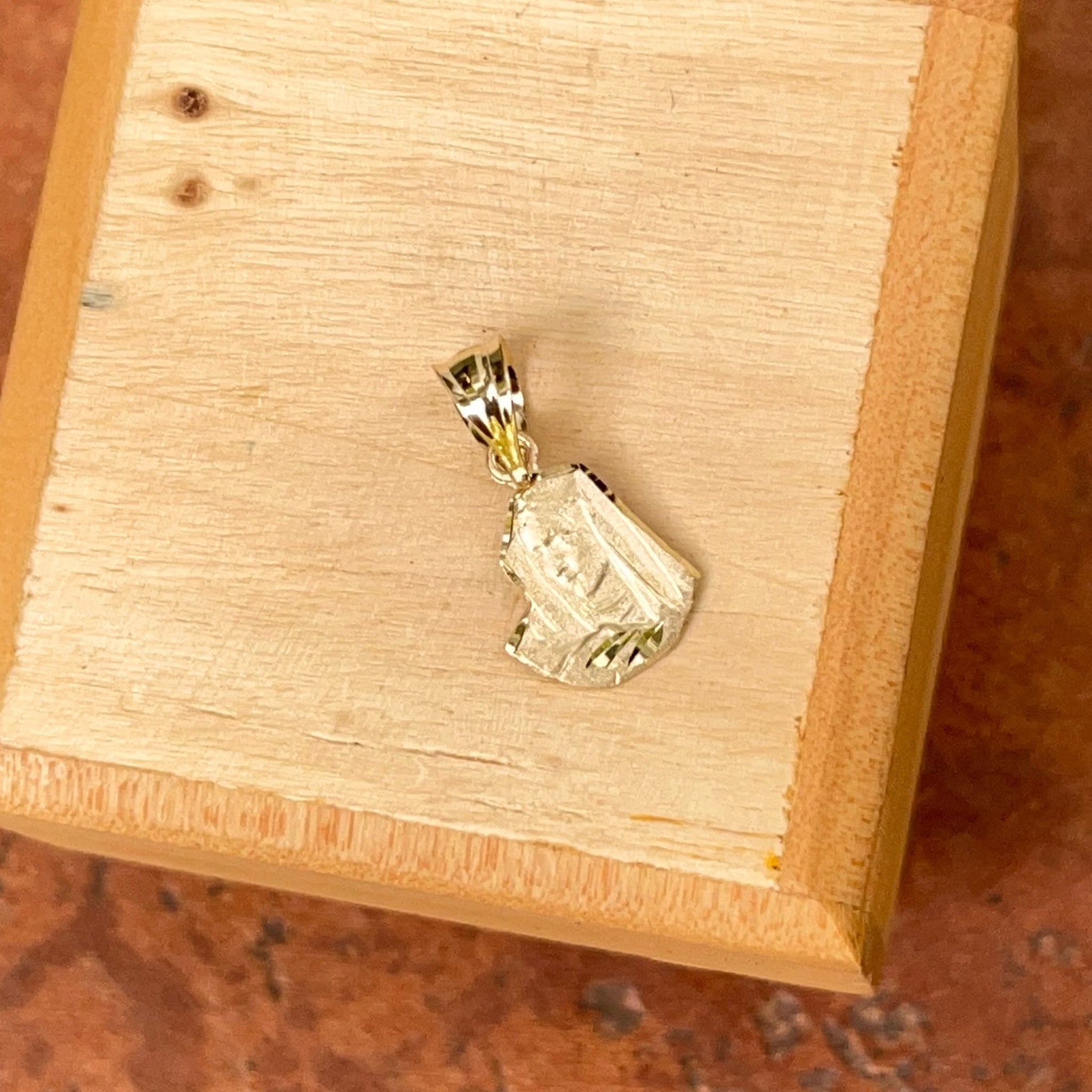 14KT yellow gold polished + satin Mother Mary head with diamond-cut details pendant charm.