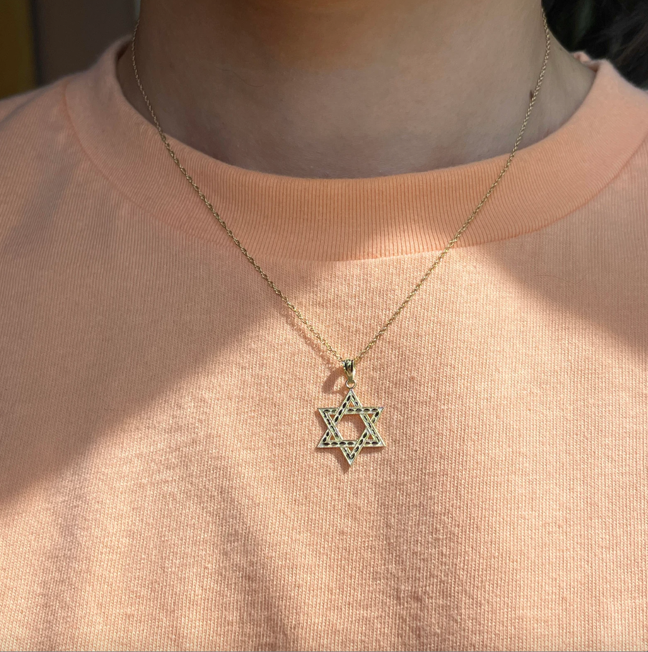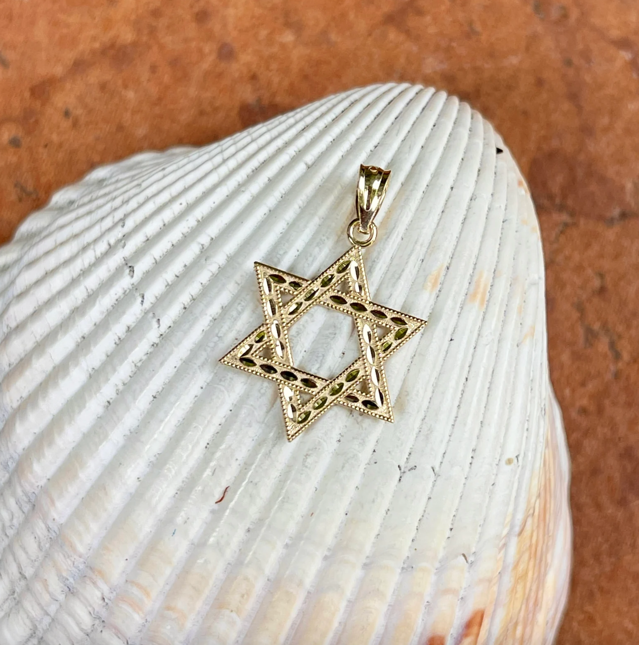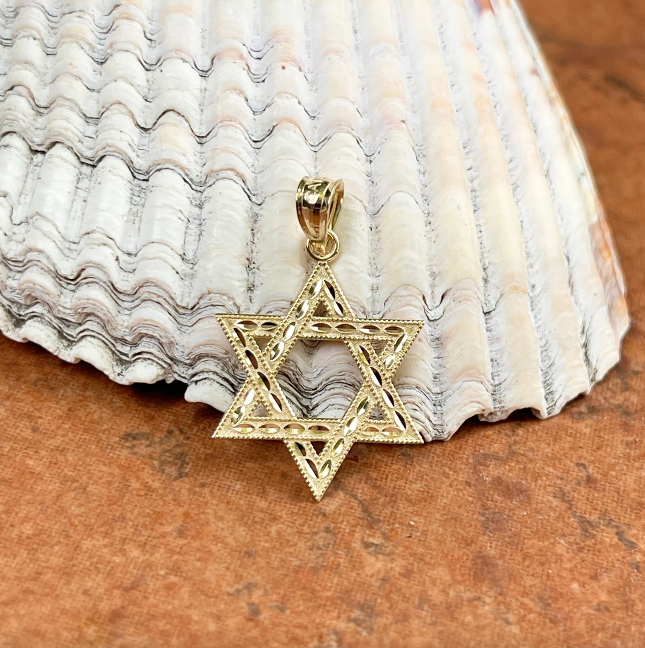 14KT yellow gold diamond-cut finished design Star of David pendant.