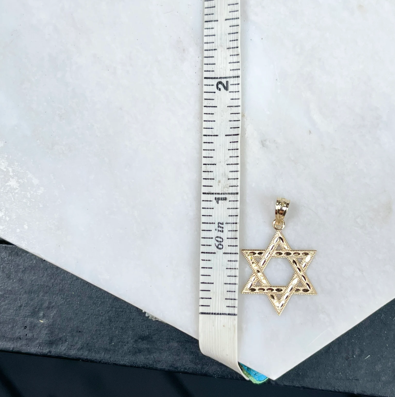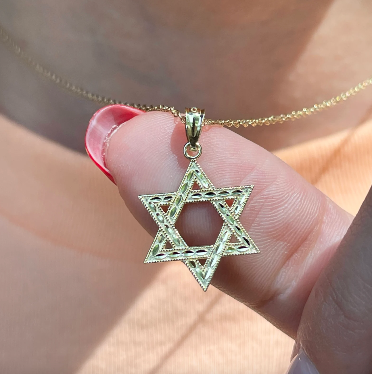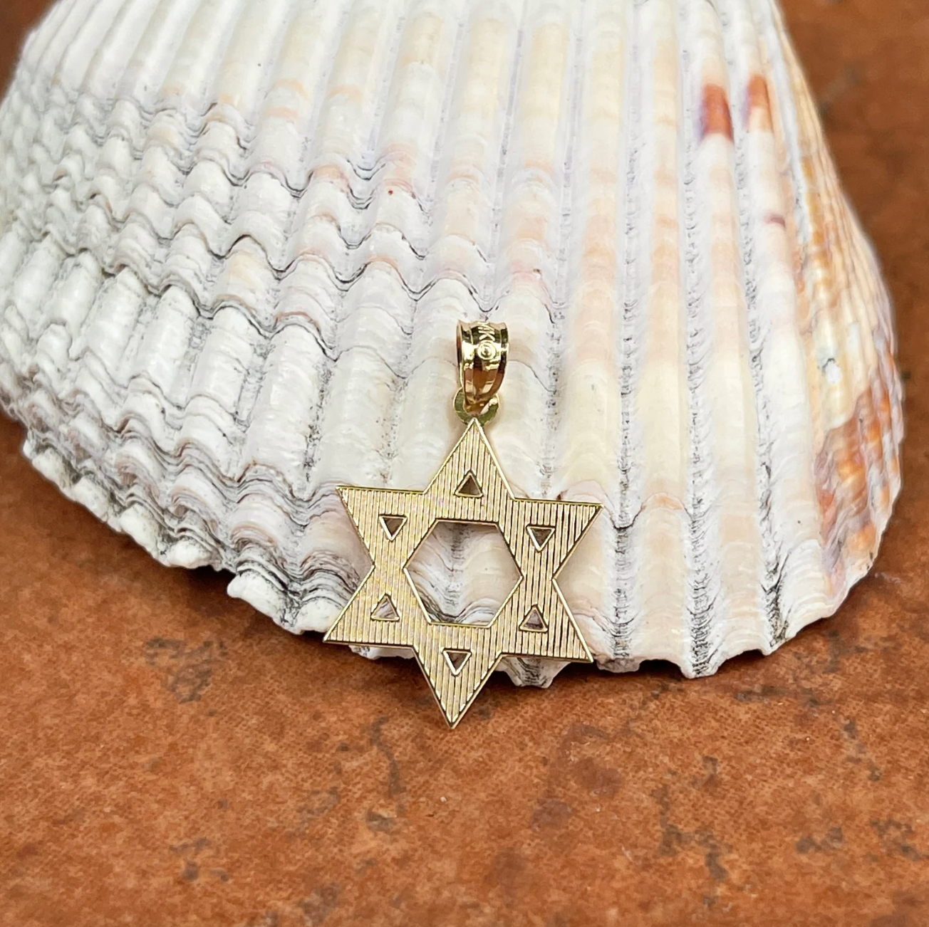 14KT yellow gold diamond-cut finished design Star of David pendant.