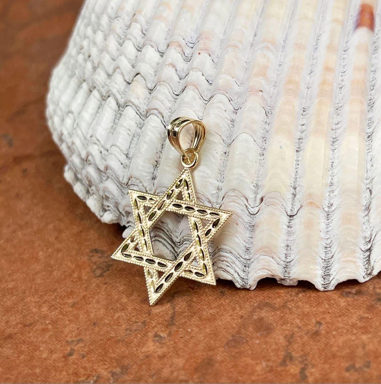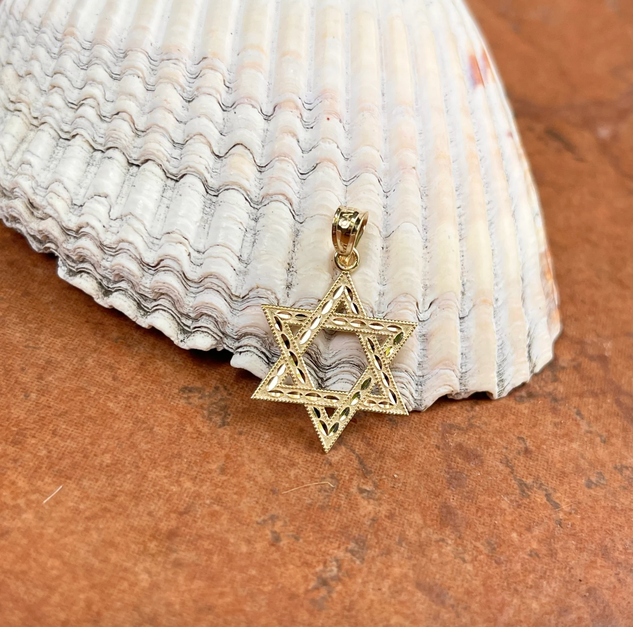 14KT Yellow Gold Diamond-Cut Star of David Pendant Charm