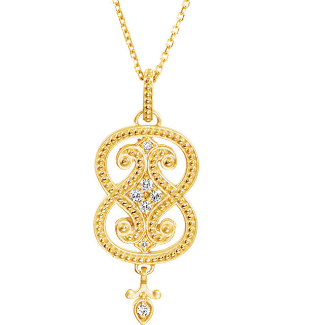 14KT Yellow Gold .08 CT Diamond Granulated Fancy Necklace