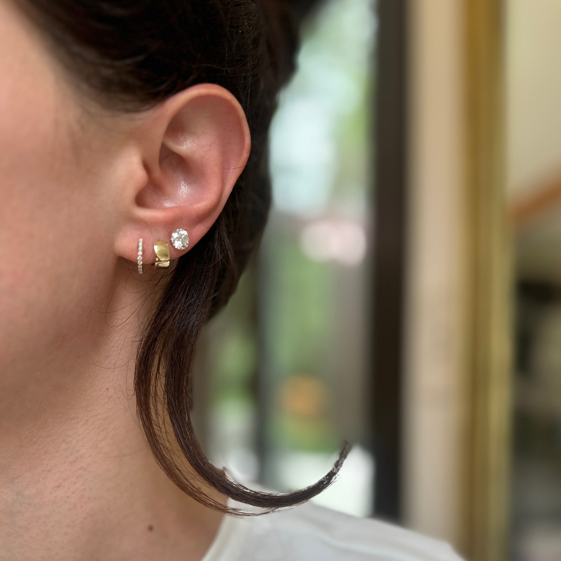 14KT Yellow Gold Diamond Round Huggie Hoop Earrings Small