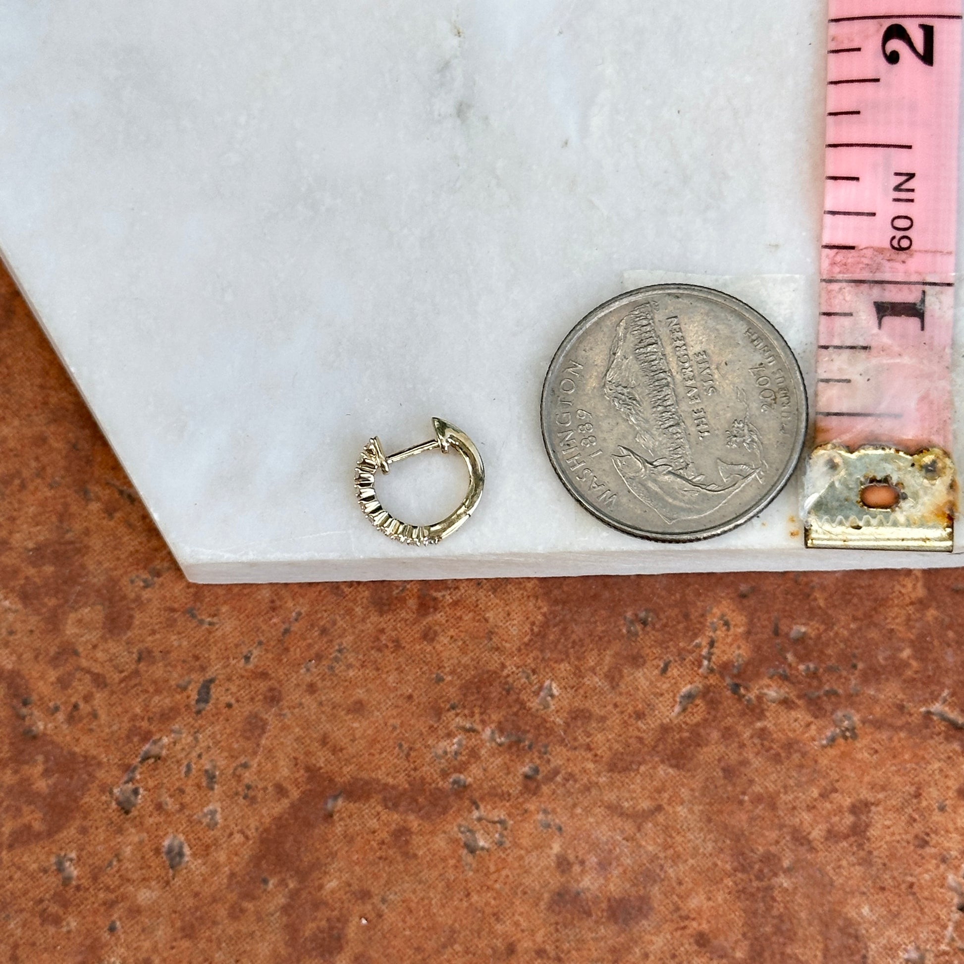 14KT Yellow Gold .16CT Diamond Round Huggie Hoop Earrings Small
