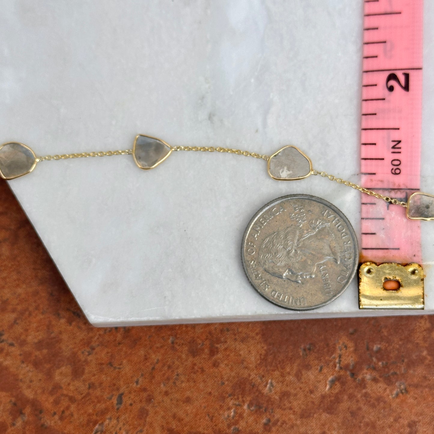 - 1mm wide chain with oblong irregular disc shapes of real diamonds