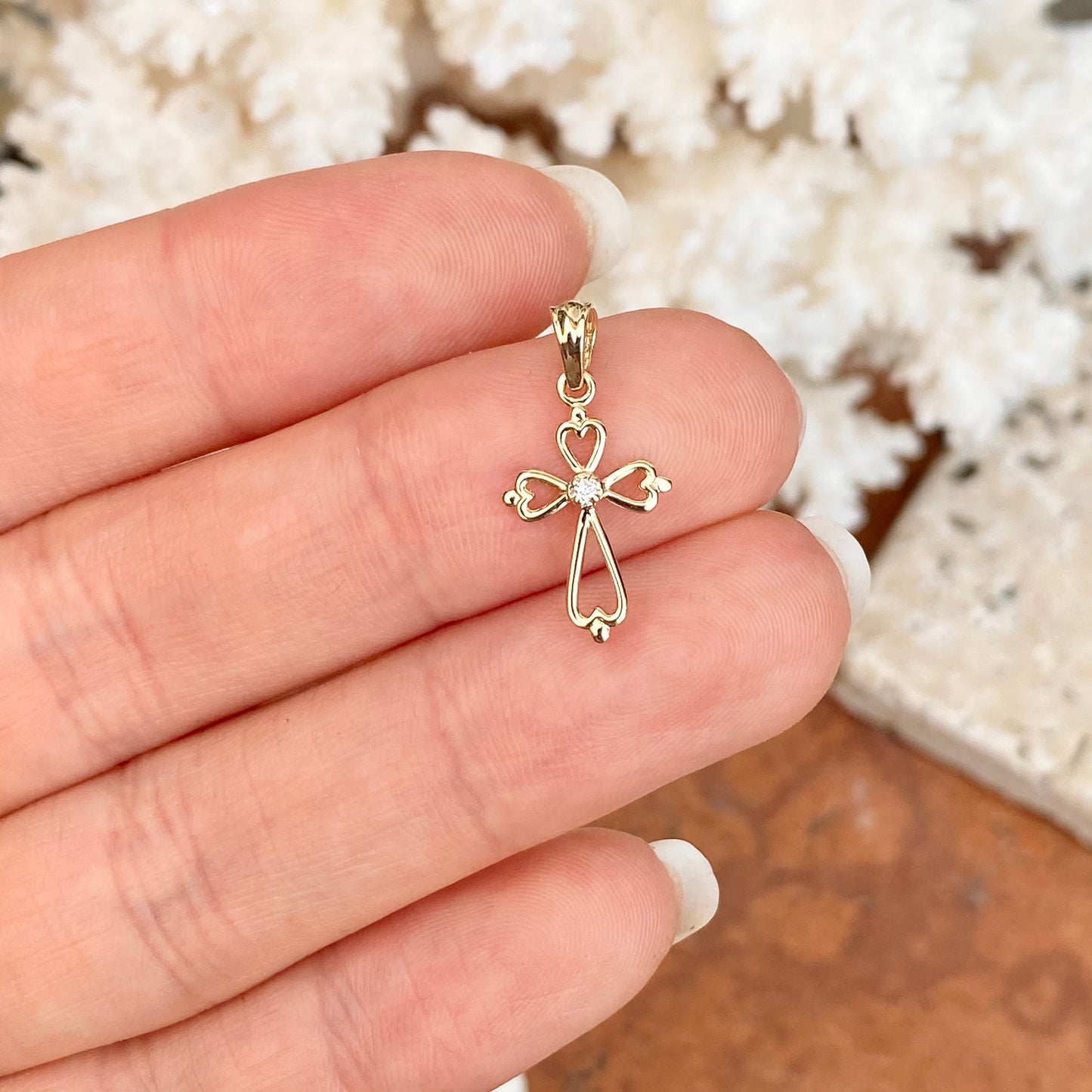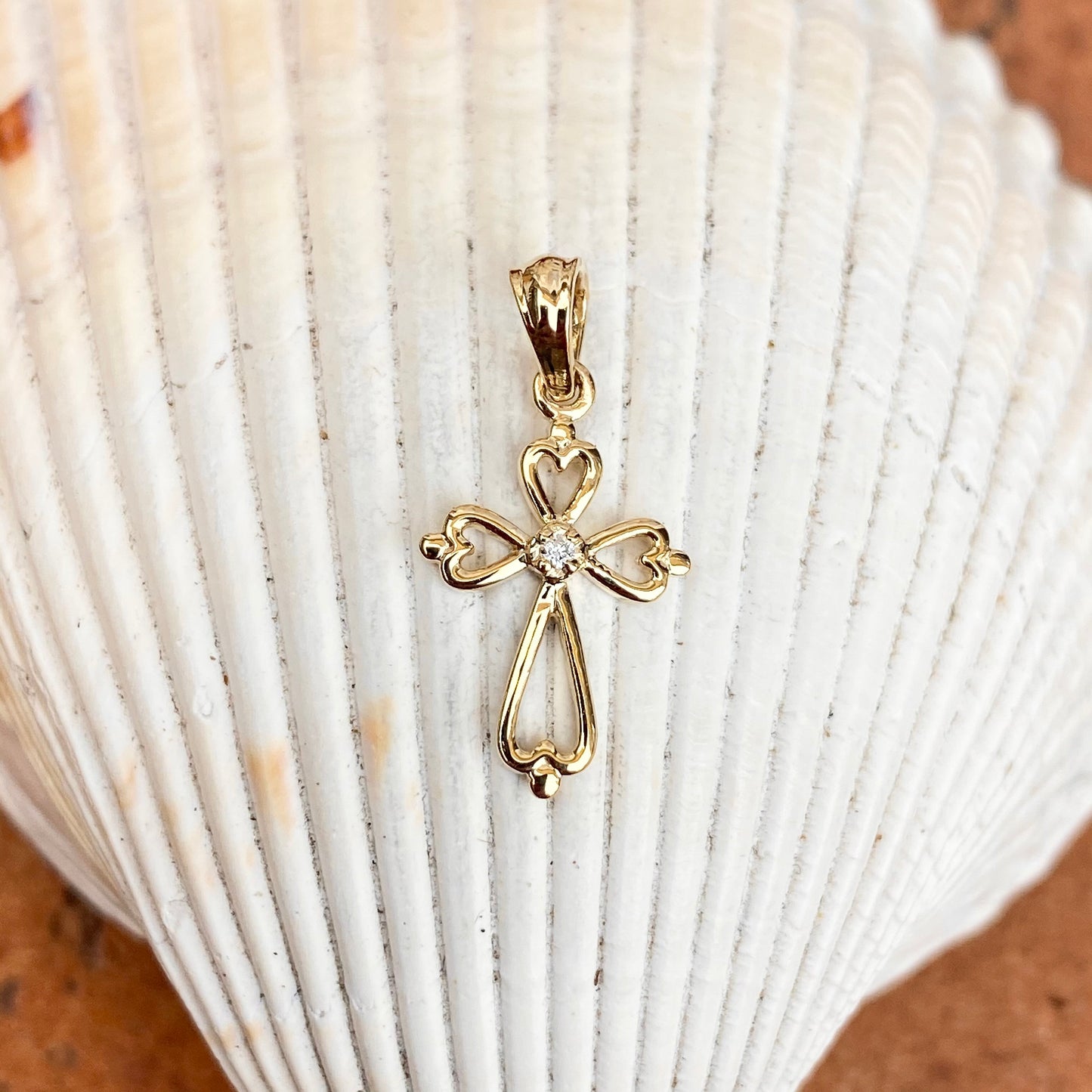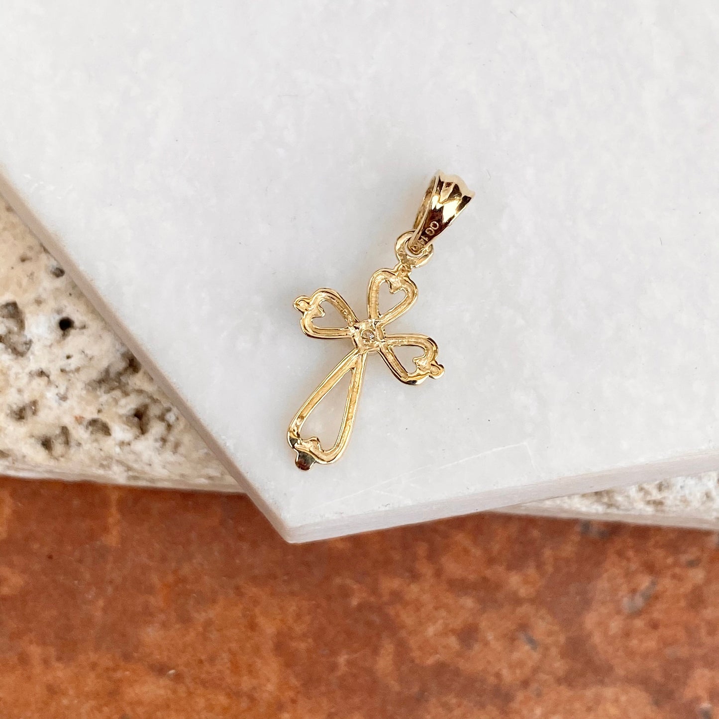 14KT Yellow Gold Open Design Cross with Diamond Pendant Charm
