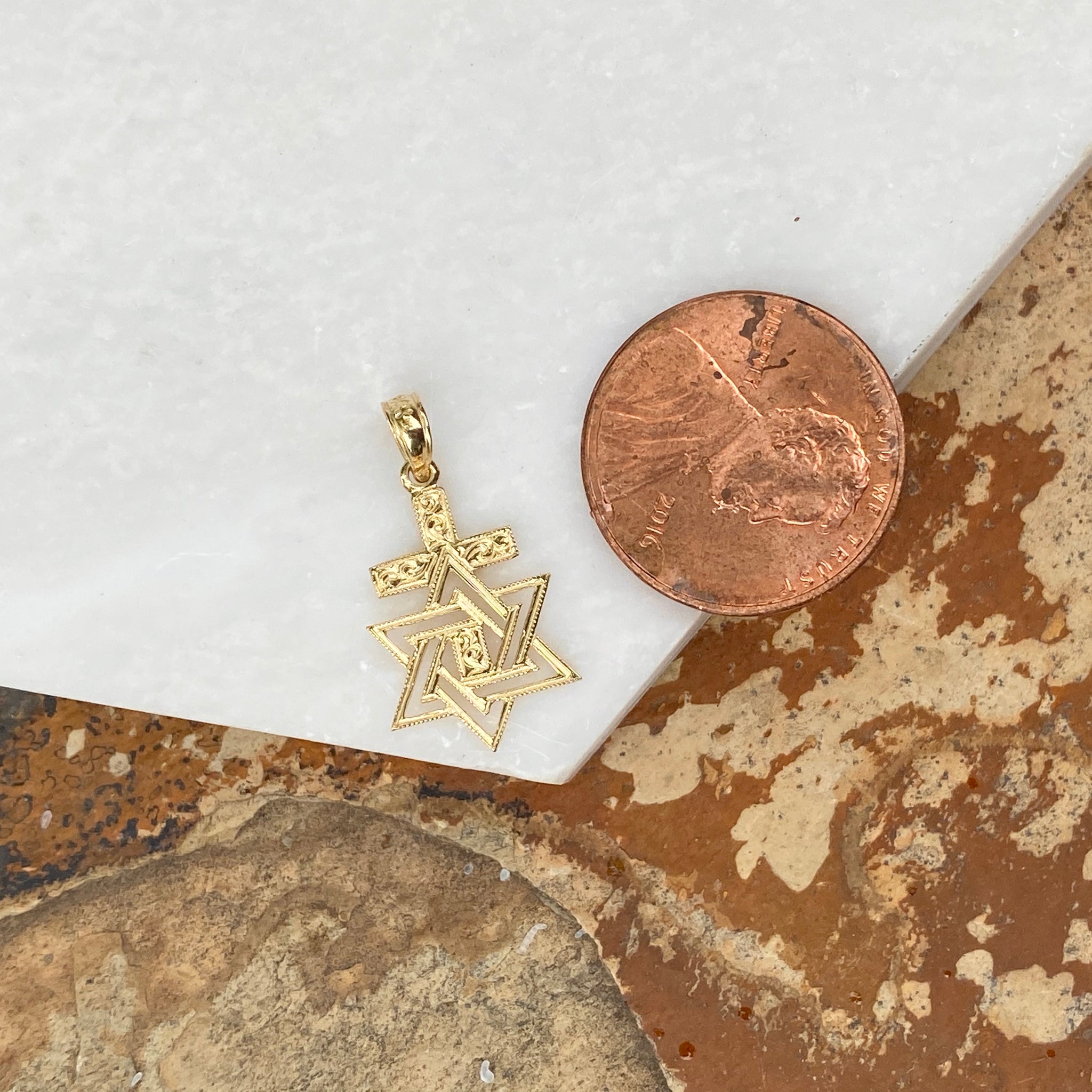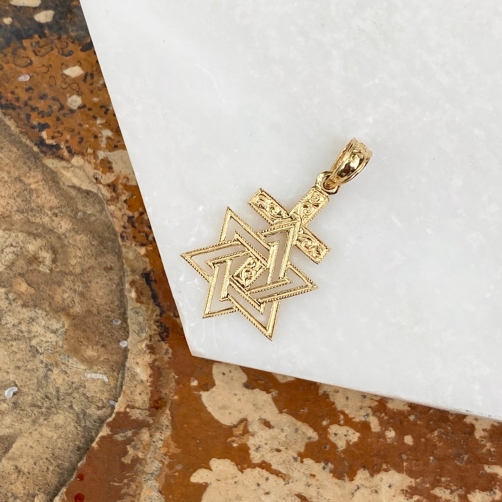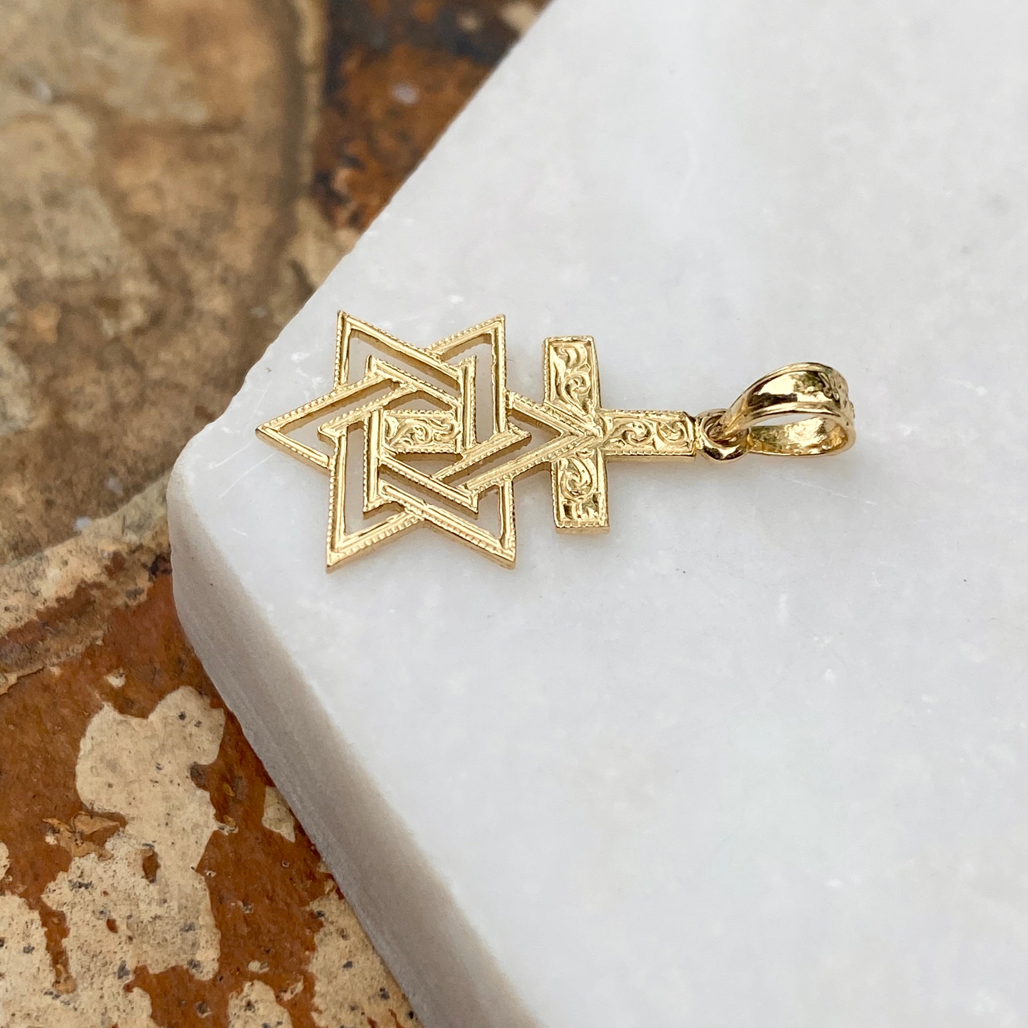 14KT Yellow Gold Engraved Star of David Cross Pendant Charm