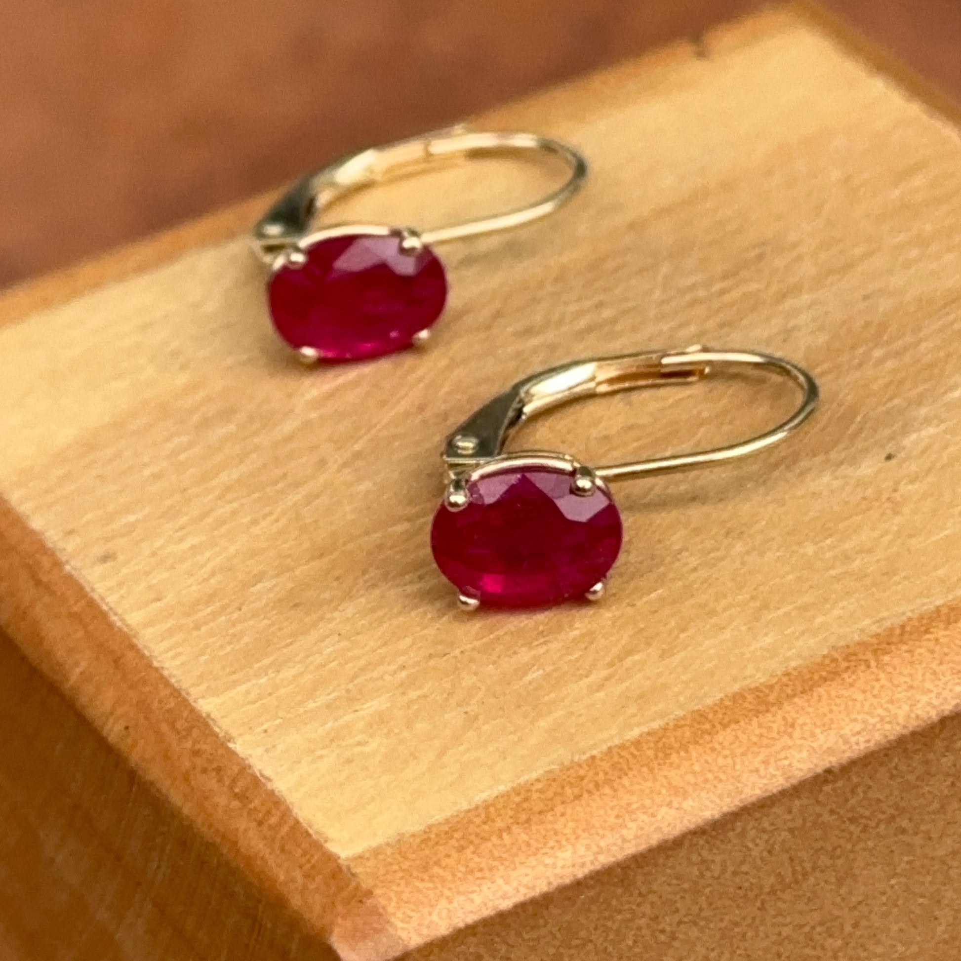 14KT Yellow Gold Faceted Oval Ruby Leverback Earrings